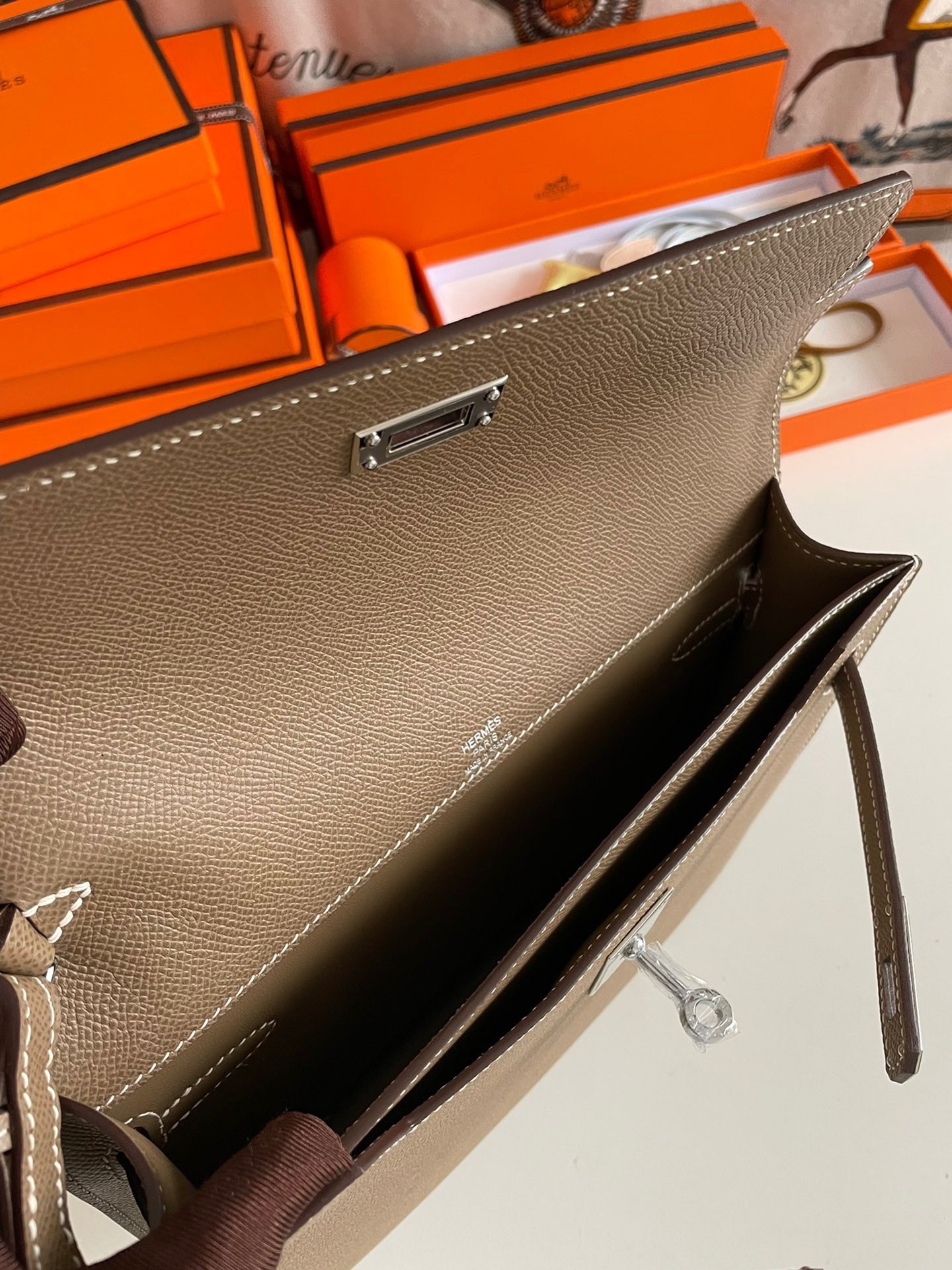 Hermes Kelly Depeches 25 Pouch in Taupe Epsom Calfskin