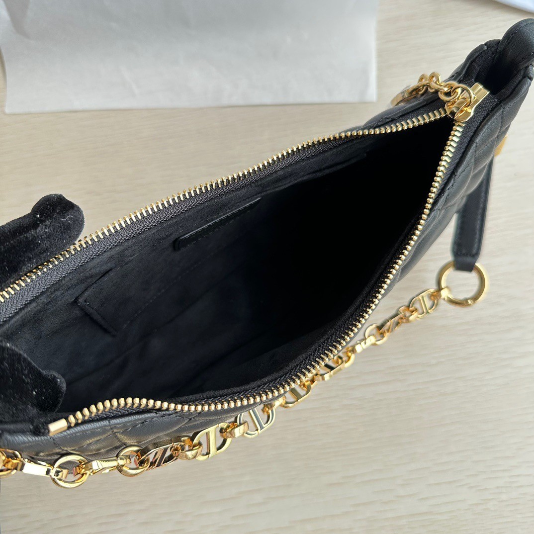 New for the Summer 2023 season, the CD Lounge bag presents a modern aesthetic while displaying Dior's couture spirit. Crafted in lambskin, the style is enhanced by Macrocannage topstitching. Alternating between gold-finish metal and tonal enamel links that match the leather, the signature chain allows the bag to be worn over the shoulder or carried by hand thanks to its foldable design.
