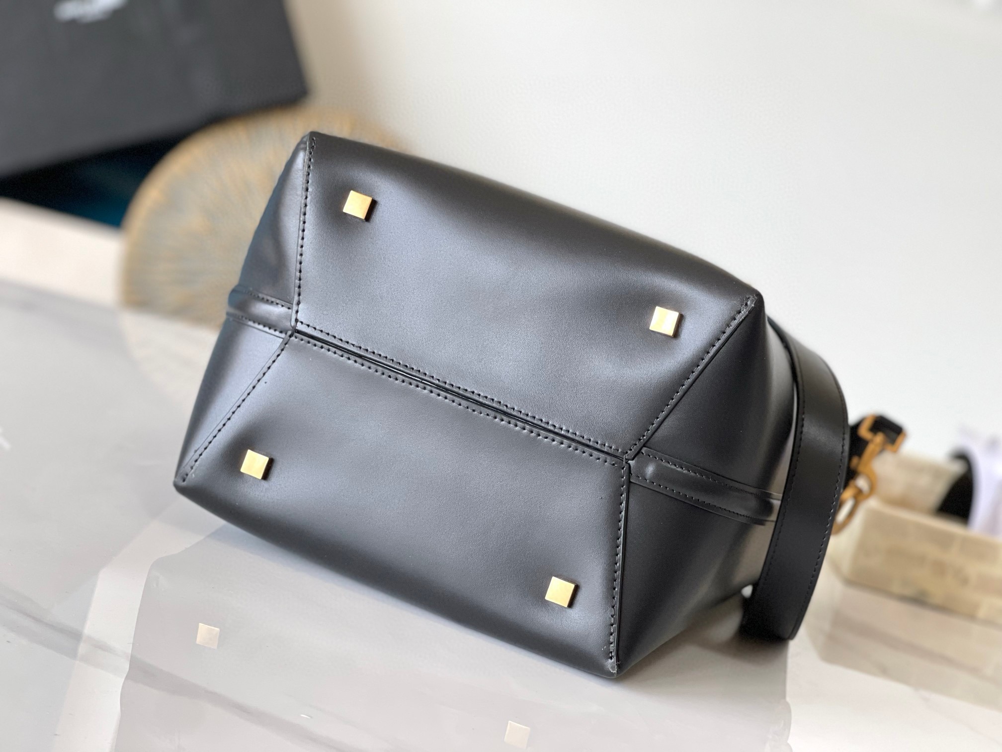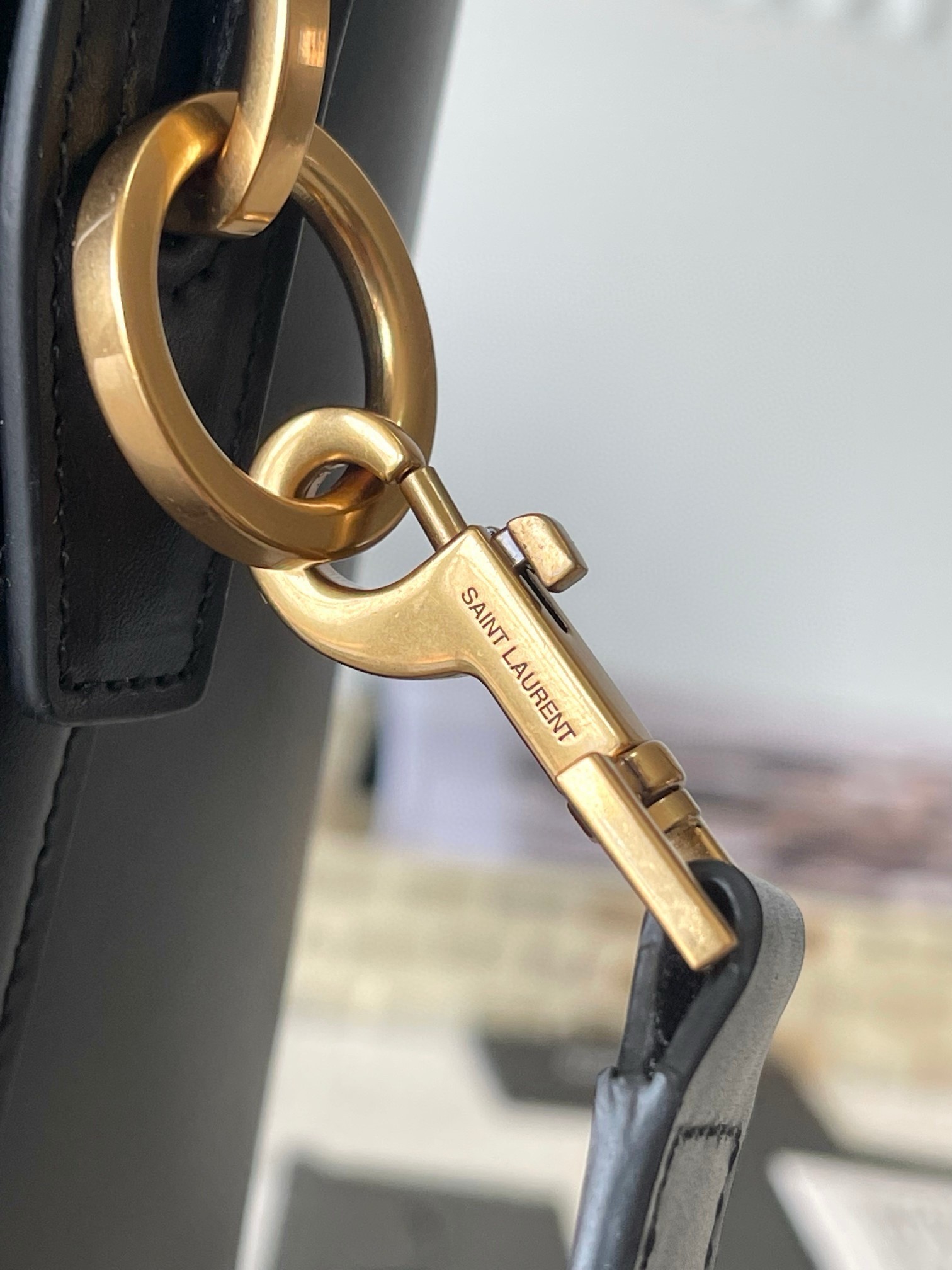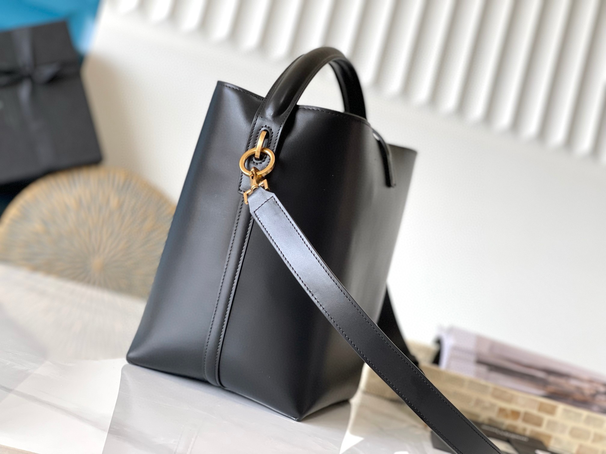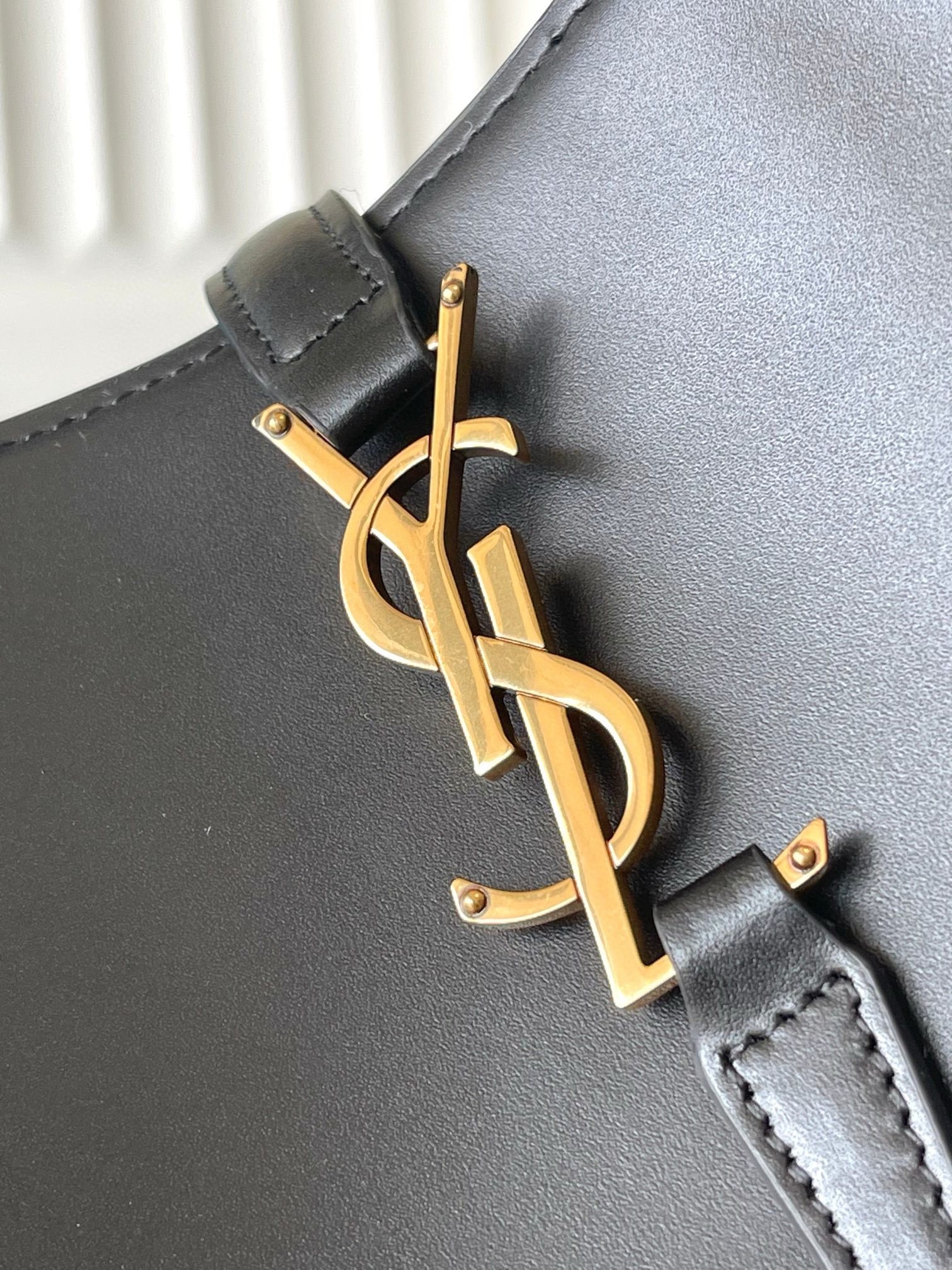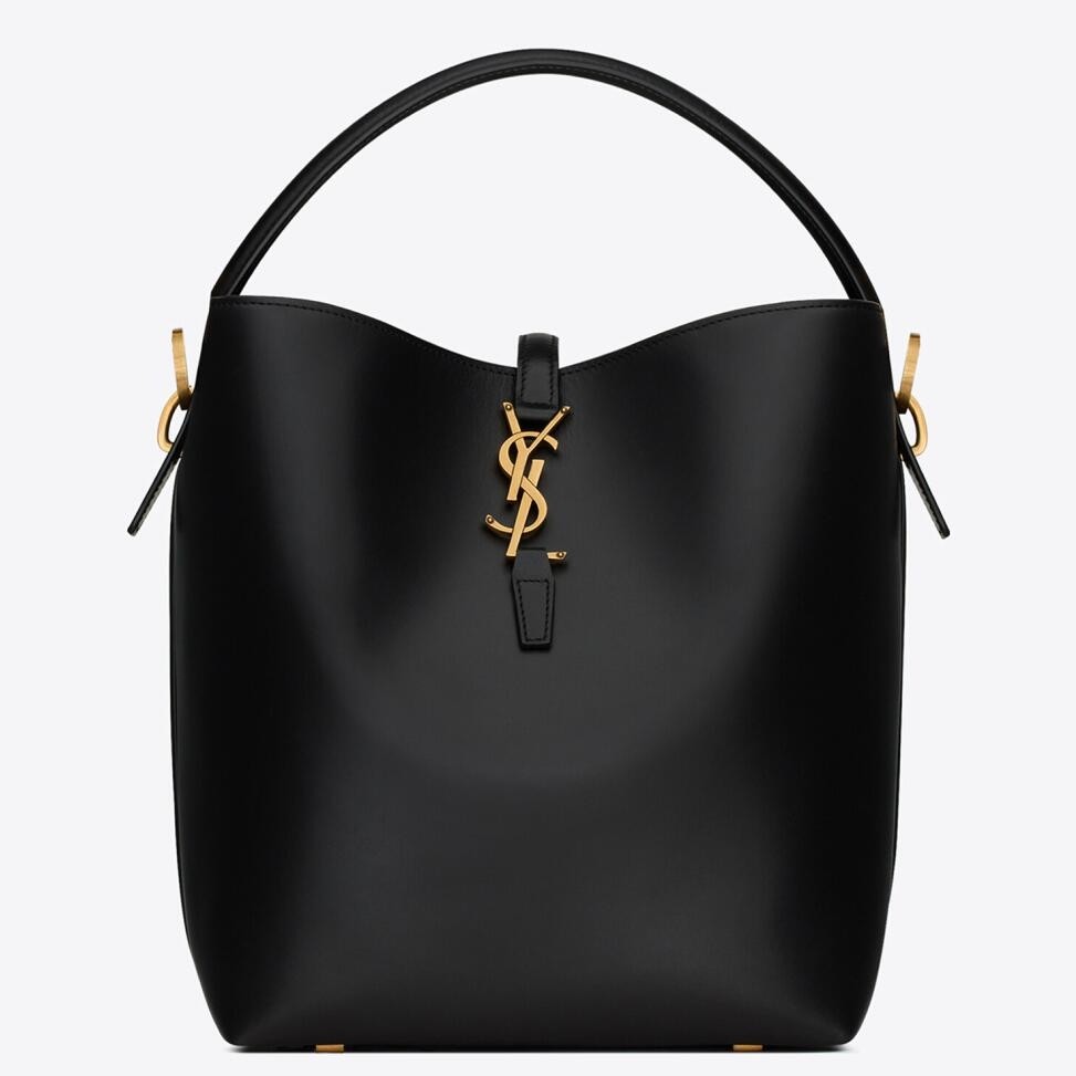 Saint Laurent's iconic 'YSL' hardware can even double as a clasp. A feature on this bucket bag, the gold-tone metal stands out beautifully against the smooth leather base, while the coordinating feet deter wear and tear. Stash all your daily essentials and sling it over your shoulder or wear it crossbody.