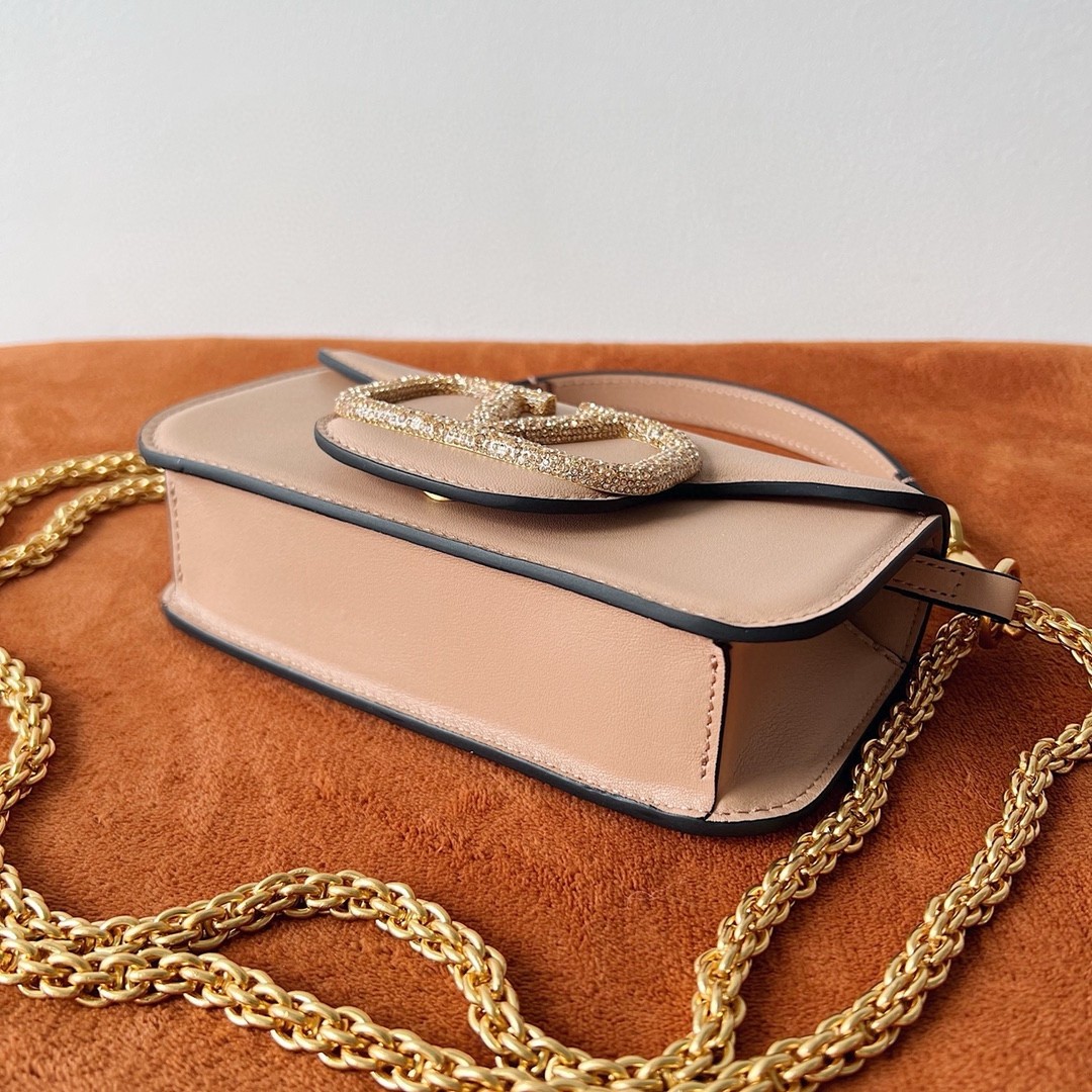Valentino Small Loco Shoulder Poudre Bag with Crystals Logo