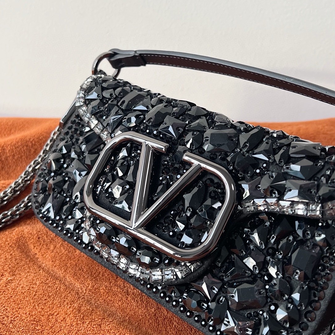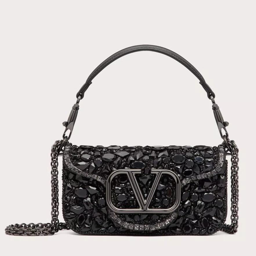 Valentino Small Loco Shoulder Bag with Black Crystals