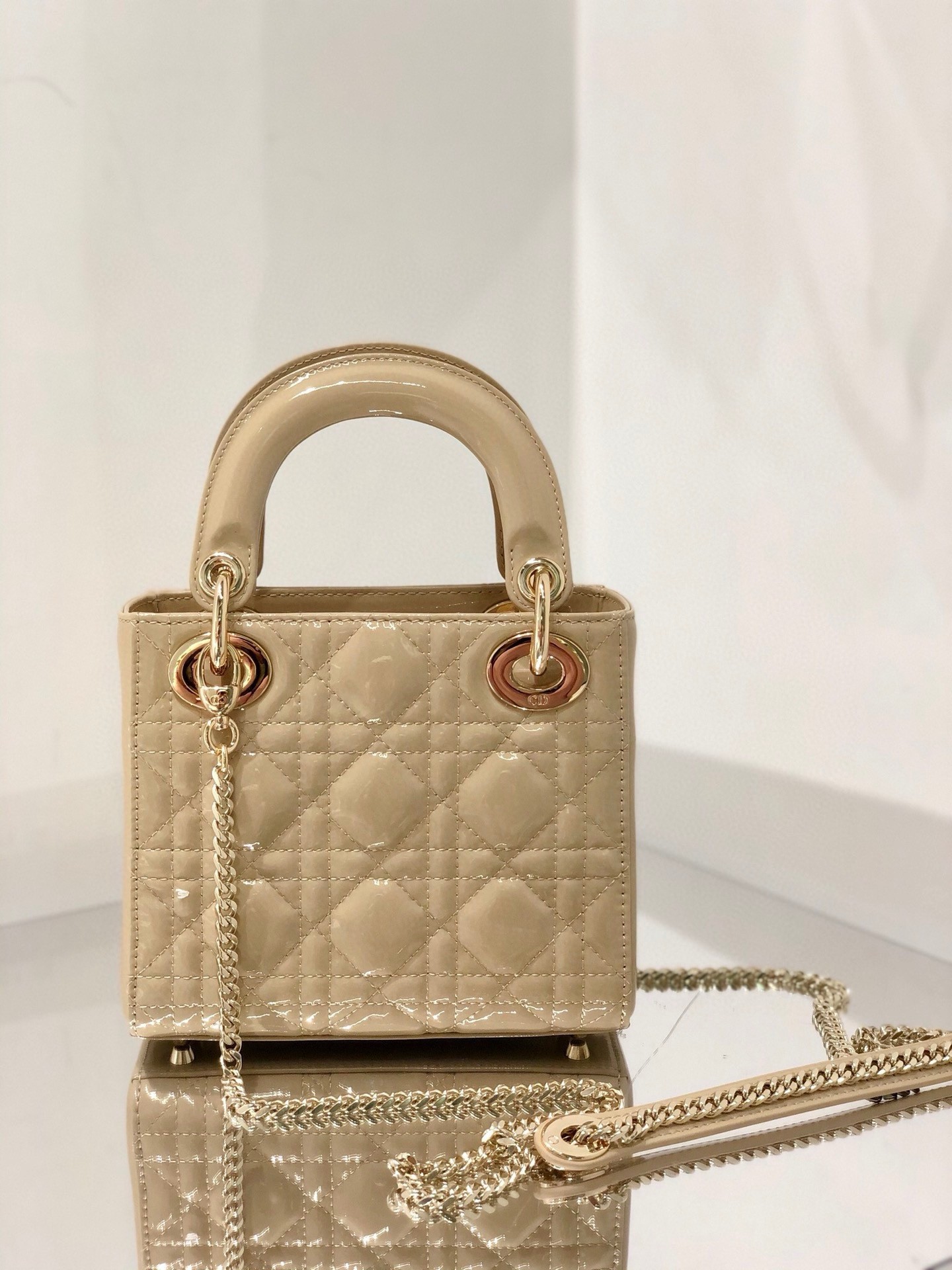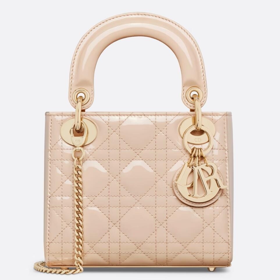 Dior Lady Dior Mini Chain Bag with Chain in Aesthetic Beige Patent Calfskin