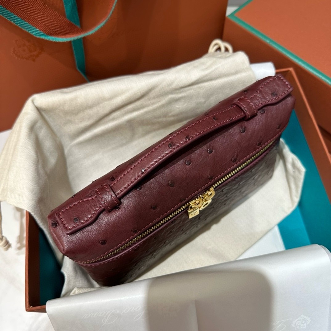 Loro Piana Extra Pocket Pouch L19 in Burgundy Ostrich-embossed Leather