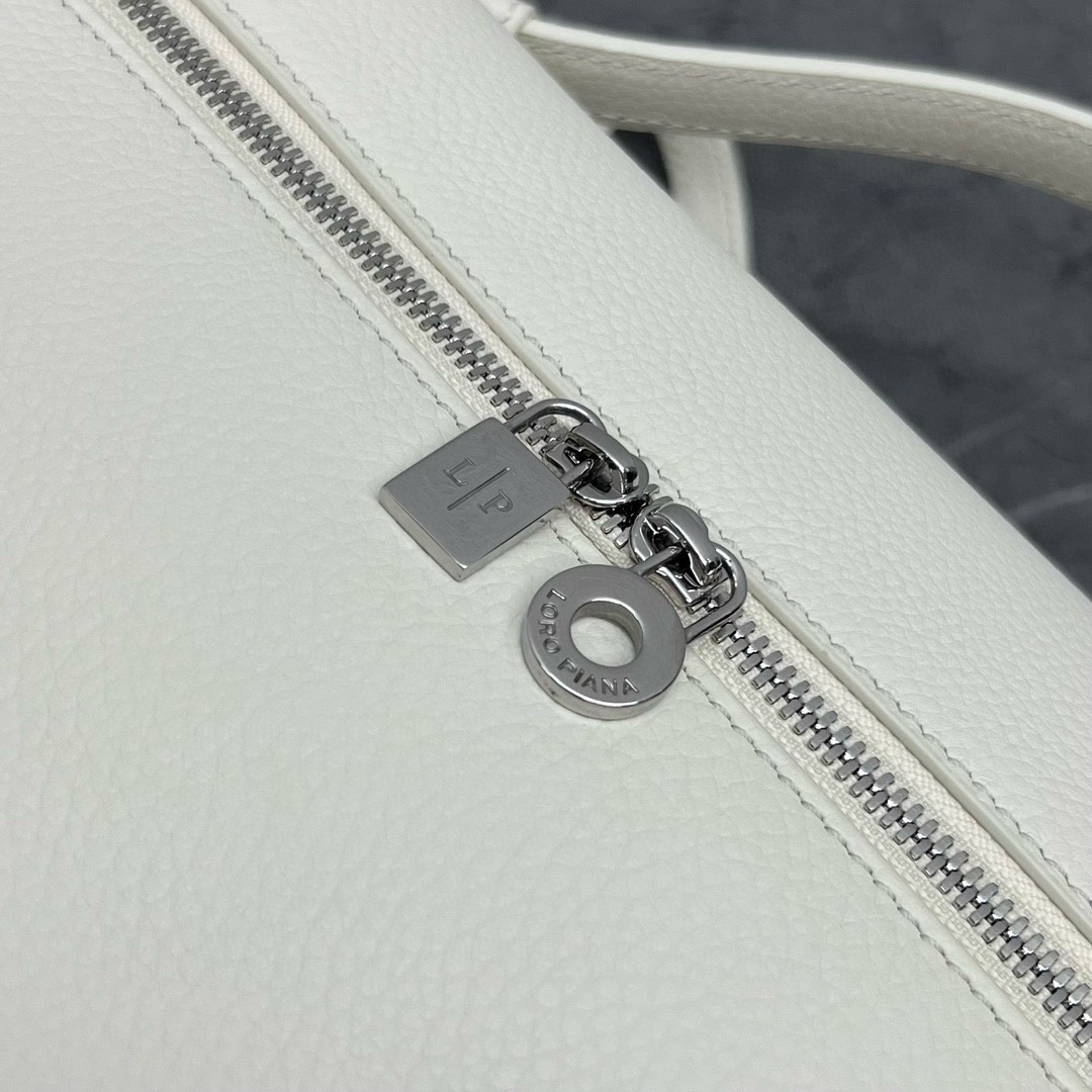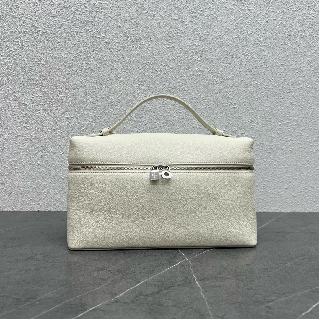 Loro Piana Extra Pocket Pouch L27 in White Grained Leather
