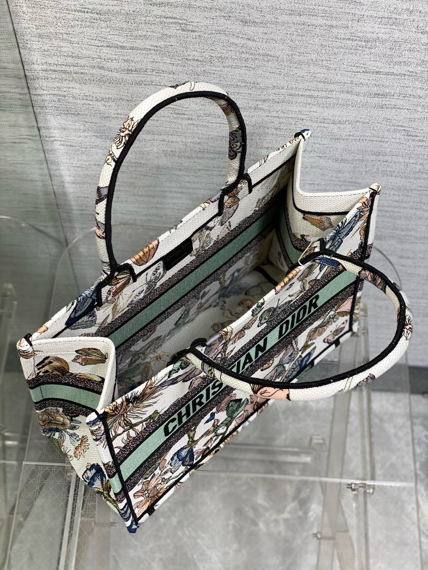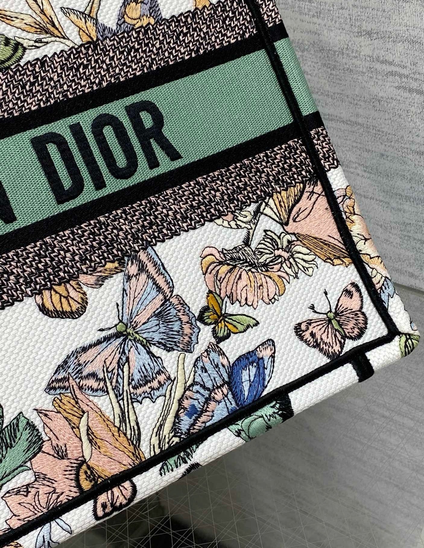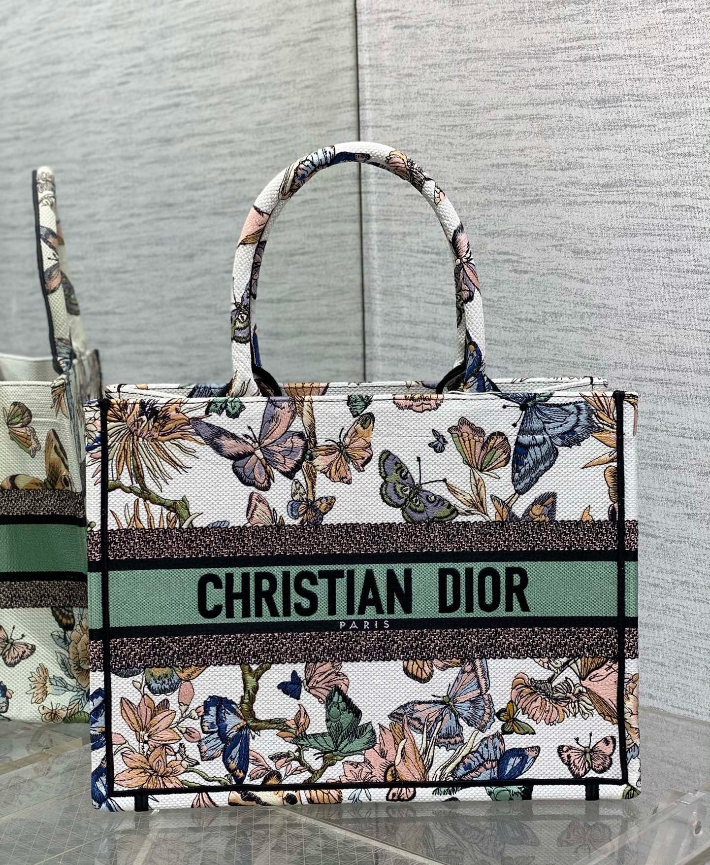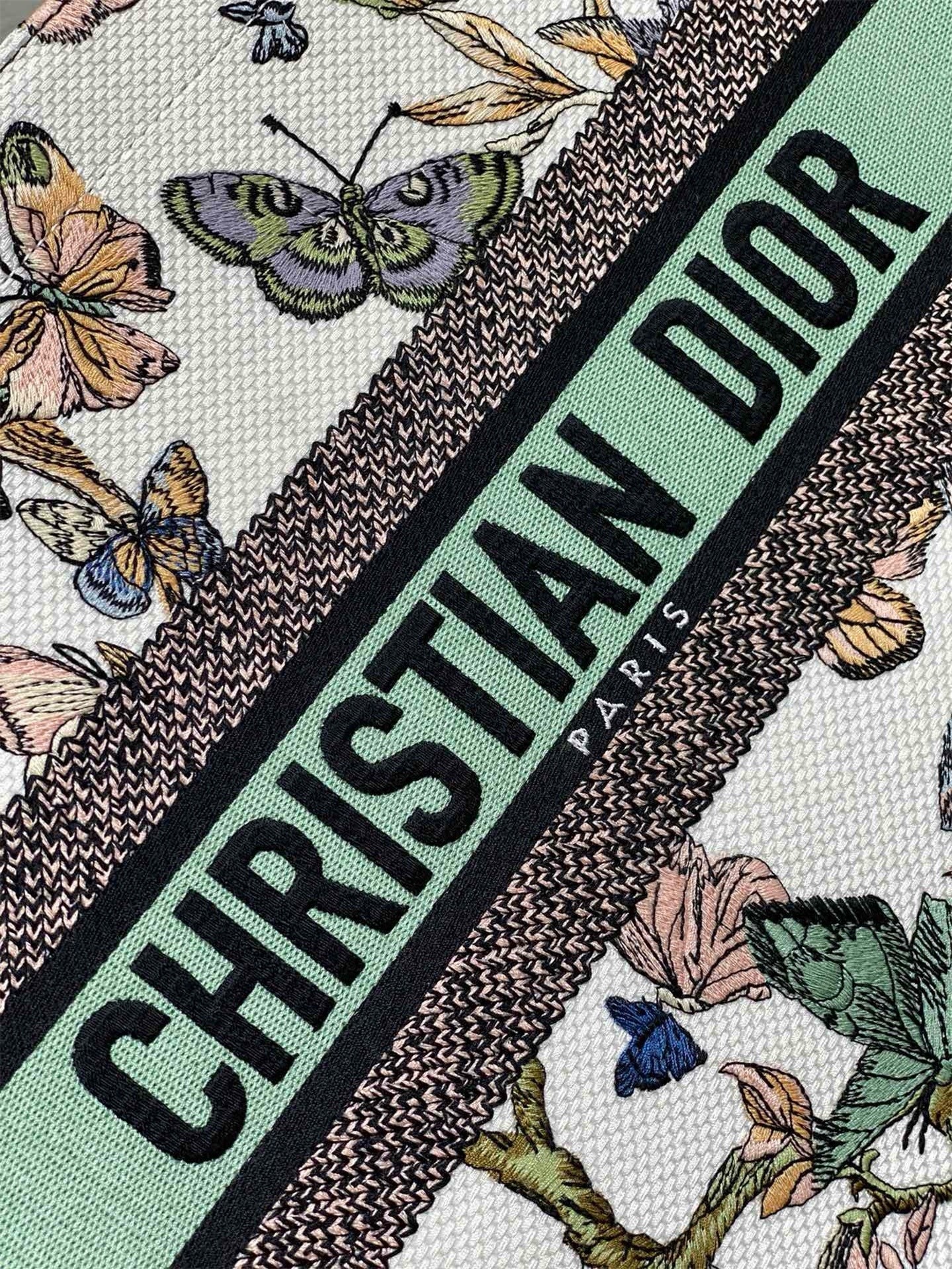 The Dior Book Tote is a House classic designed by Maria Grazia Chiuri, Creative Director of Christian Dior. Created to hold all the daily essentials, the style is fully embroidered with a white multicolor Toile de Jouy Mexico motif by Pietro Ruffo, showcasing butterflies and traditional Mexican flowers in a concert of colors. Adorned with the Christian Dior Paris signature on the front, the medium tote exemplifies the House's signature savoir-faire and may be carried by hand or worn over the shoulder.