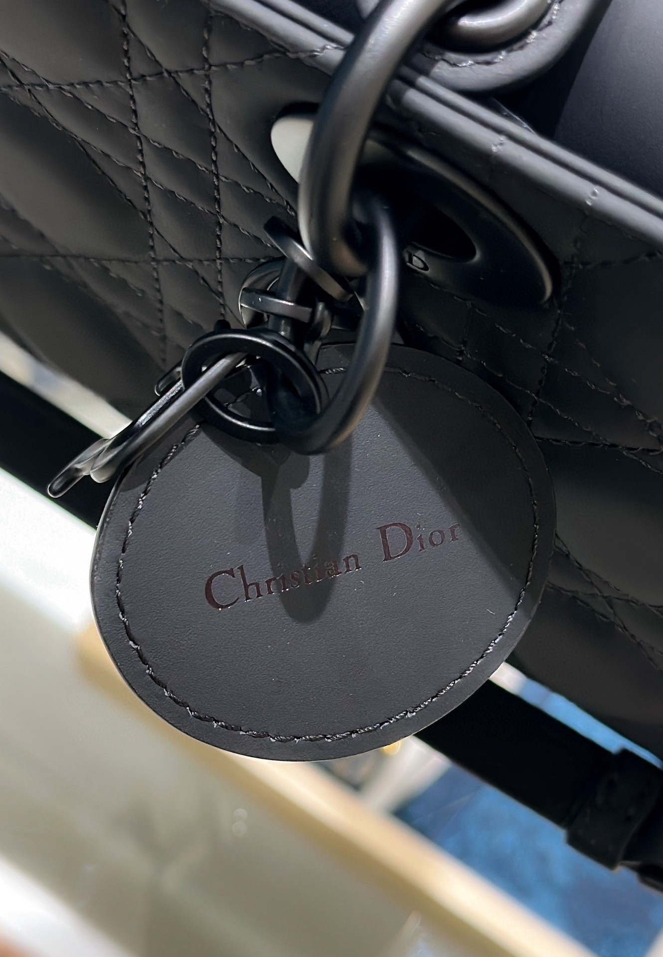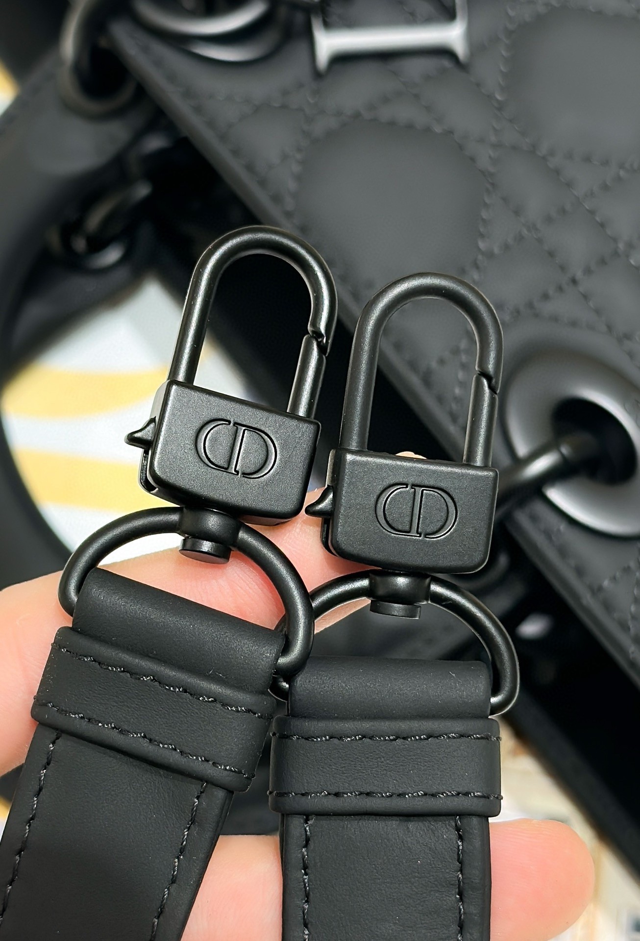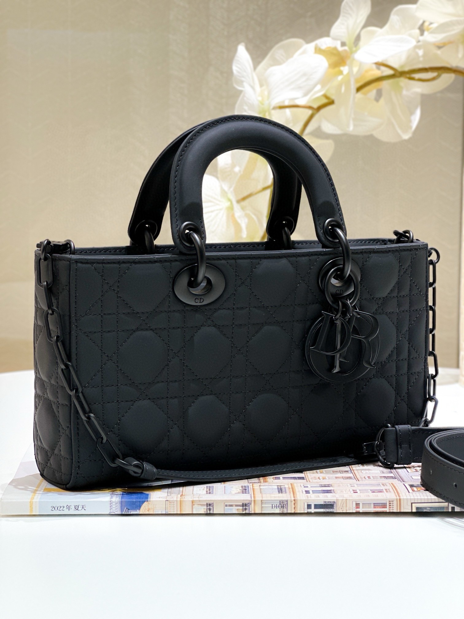The Lady D-Joy bag captures the House's vision of elegance and beauty by showcasing the iconic streamlined aesthetic of the Lady Dior line. Crafted in ultramatte black calfskin with Cannage stitching, the legendary quilted texture is immediately recognizable. The style is enhanced by tonal metal D.I.O.R. charms that add an elegant touch. Featuring one removable chain strap and another adjustable and removable leather strap, the medium Lady D-Joy bag can be carried by hand, worn over the shoulder or crossbody as a daily companion.