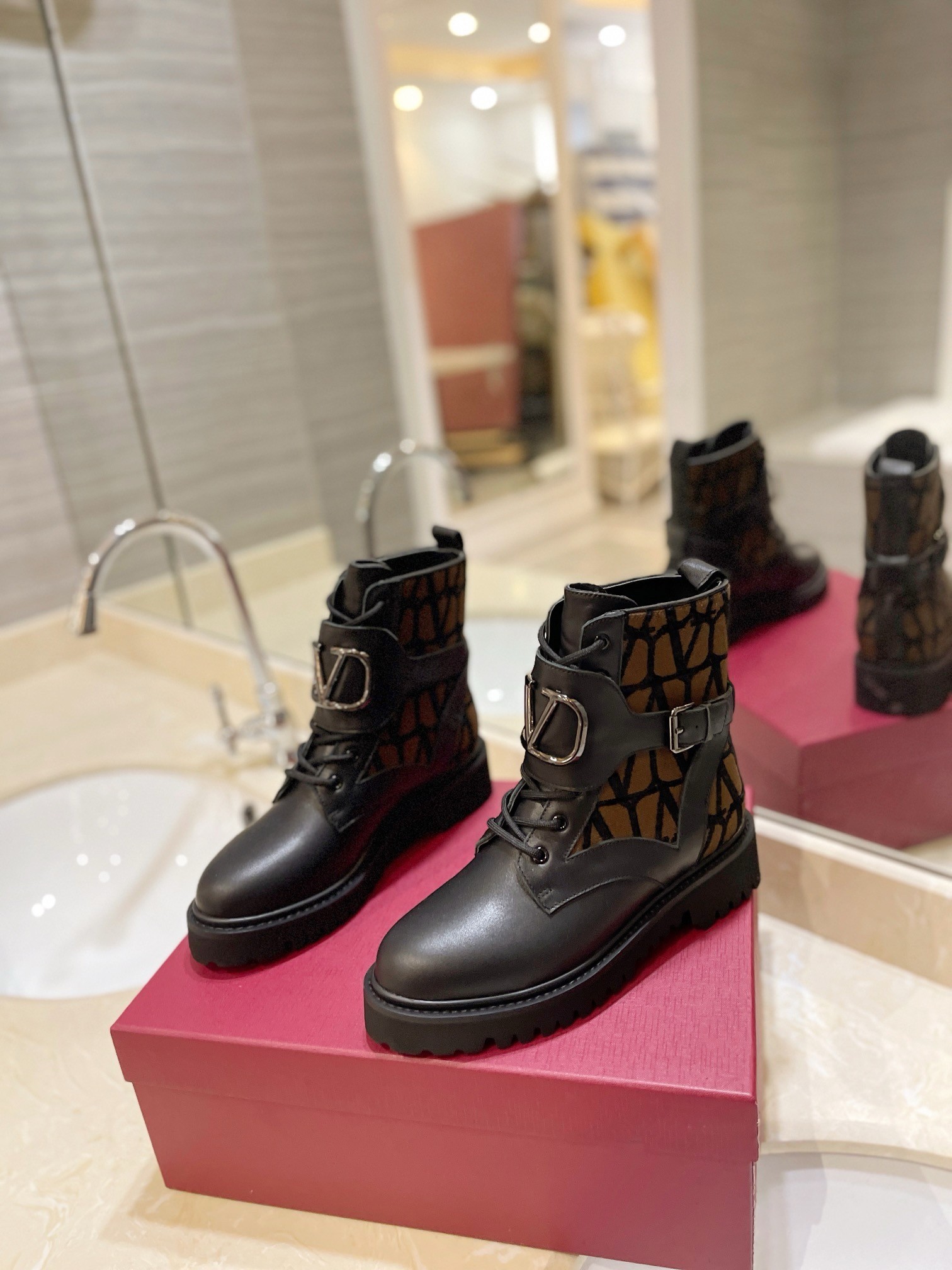 At once iconic and understated, Valentino Garavani's VLogo carries the Maison's legacy of elegance. The motif appears in tone-on-tone hardware on the smooth leather panels of these Toile Iconographe jacquard combat boots, resting on lugged soles.