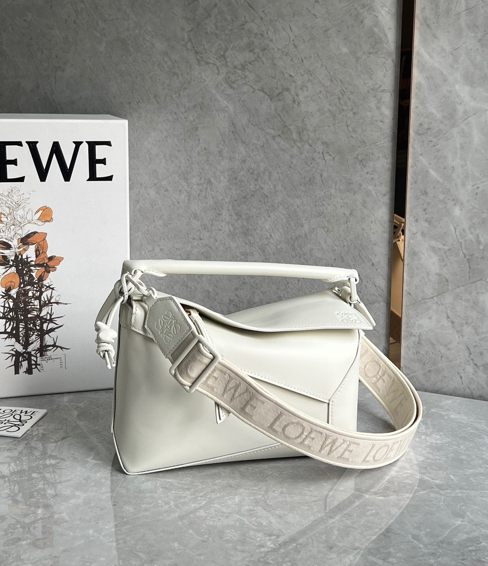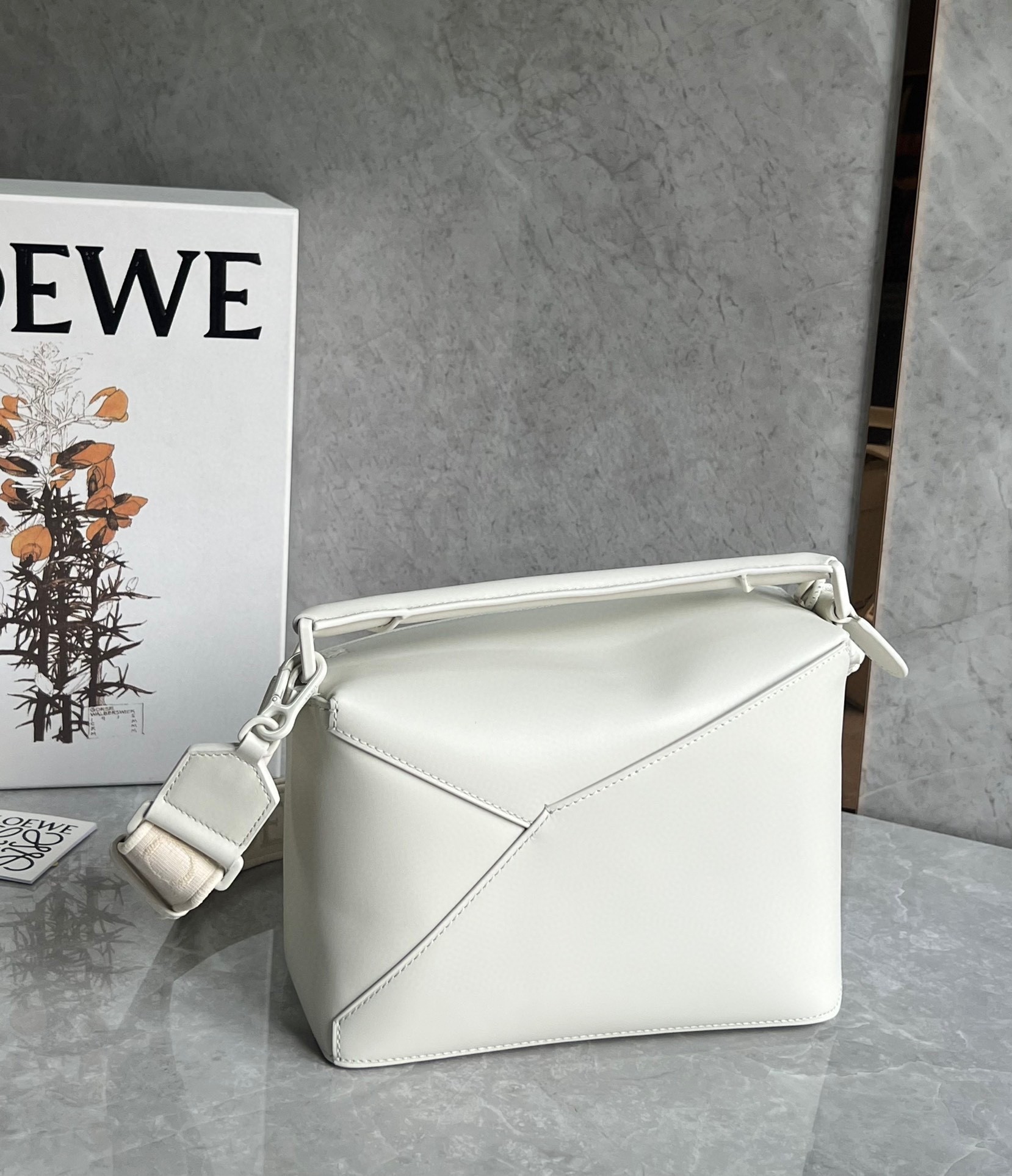 Loewe Puzzle Edge Small Bag In White Satin Calfskin