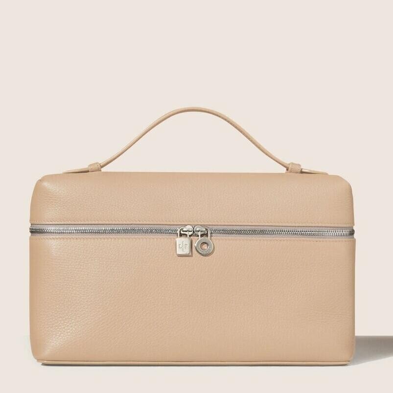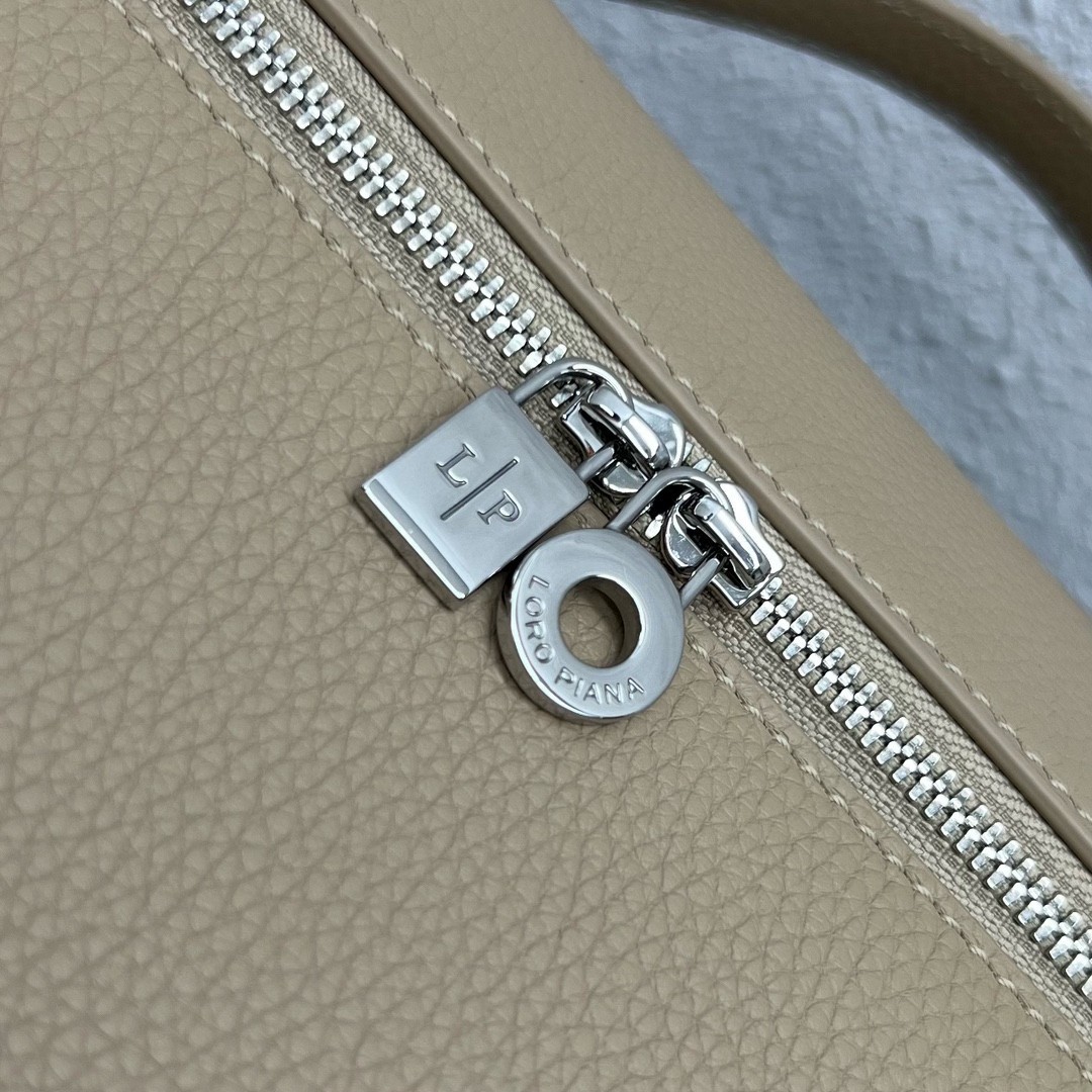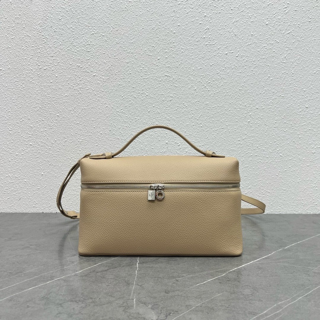 Loro Piana Extra Pocket Pouch L27 in Beige Grained Leather