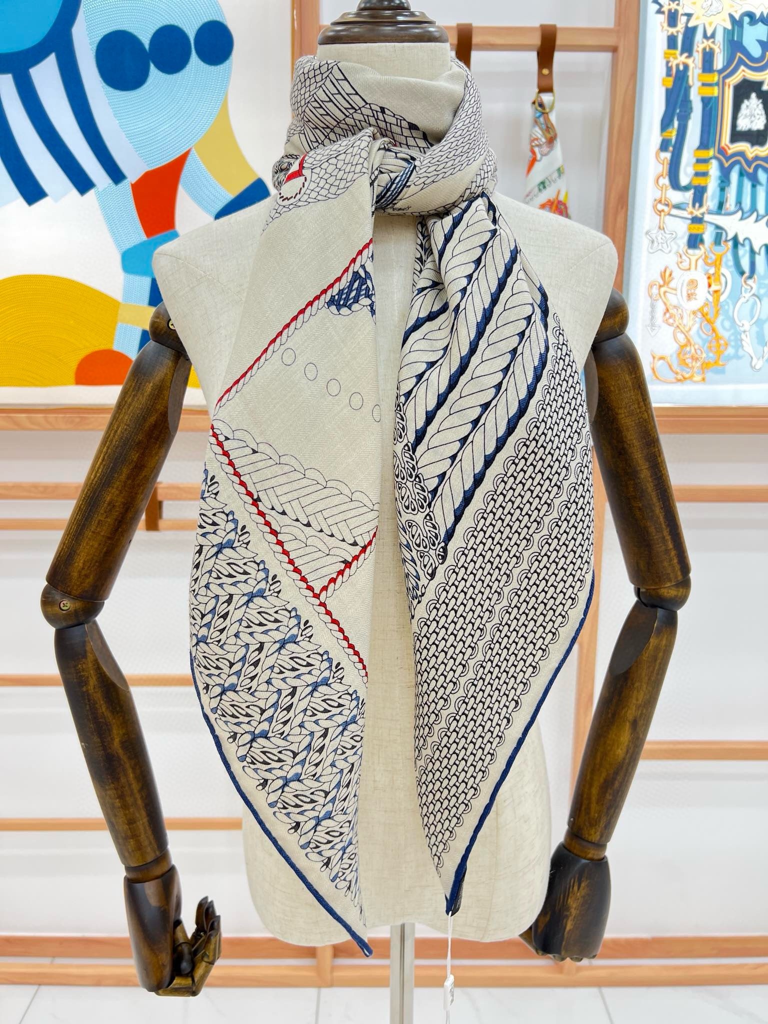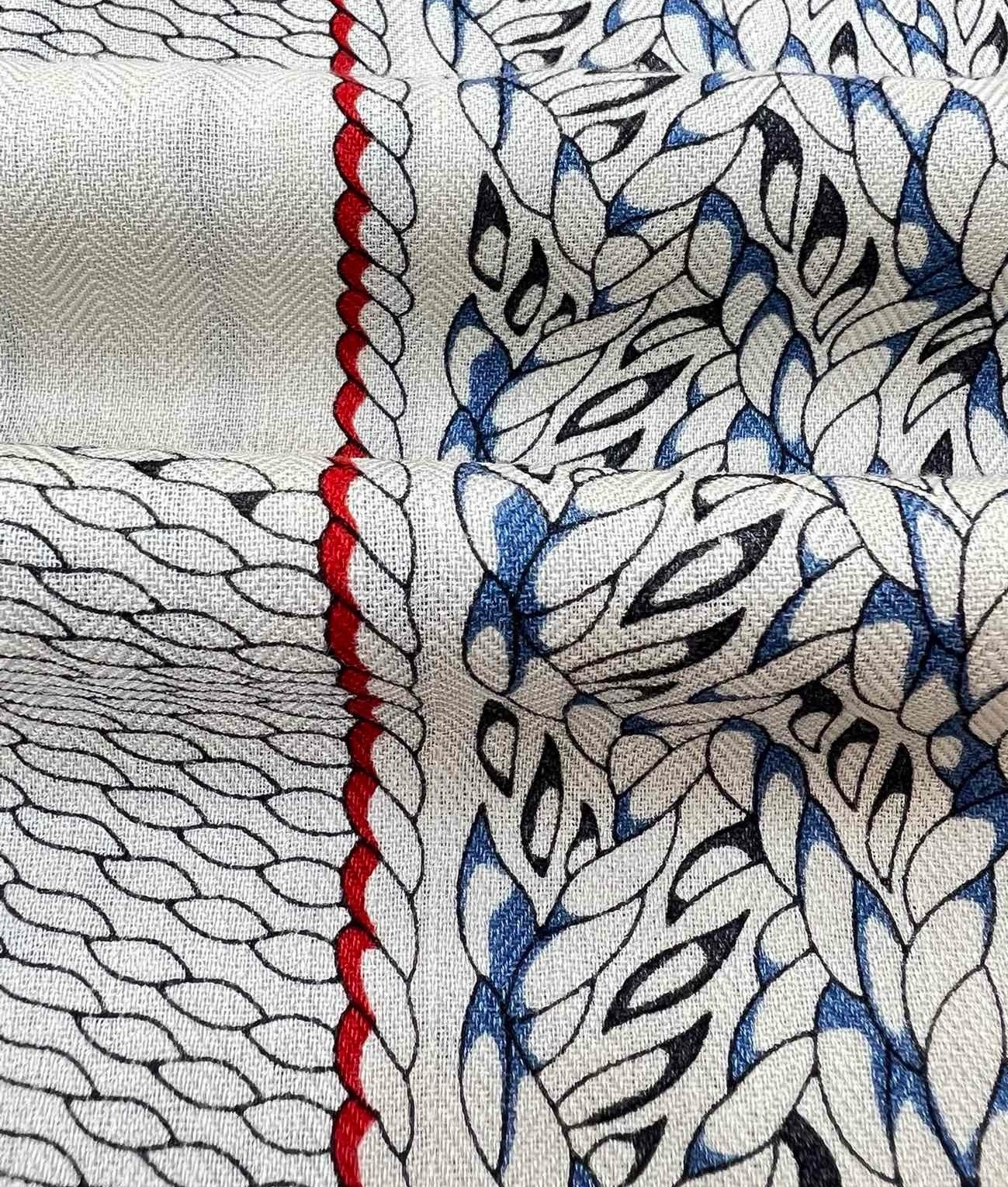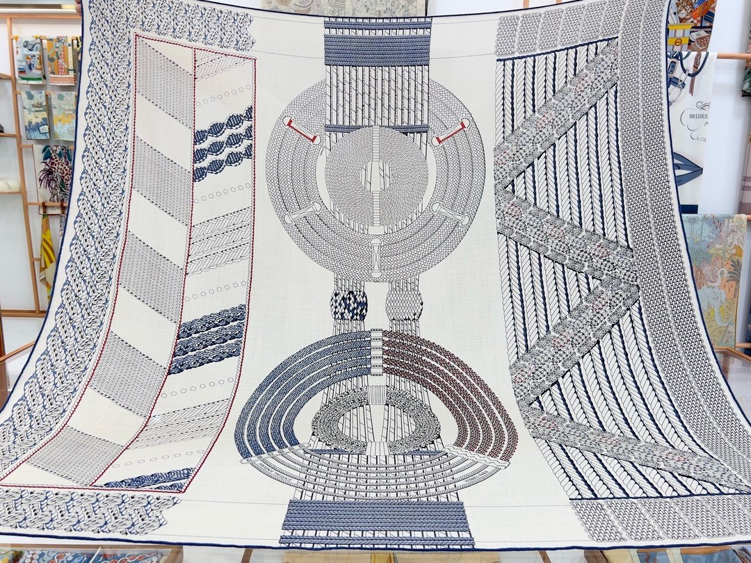When browsing the shelves of Emile Hermès' library, Virginie Jamin came across a treatise on equestrianism, published in Germany in the 18th century. She took inspiration from one of the plates in this work that depicts the patterns traced on the ground by natural and artificial horse gaits to produce an ornamental design, a free expression of the repertoire of equestrian braiding. With its elegant and simple asymmetrical composition, this scarf celebrates the craftsmanship of adornment.