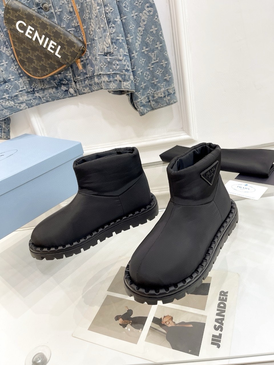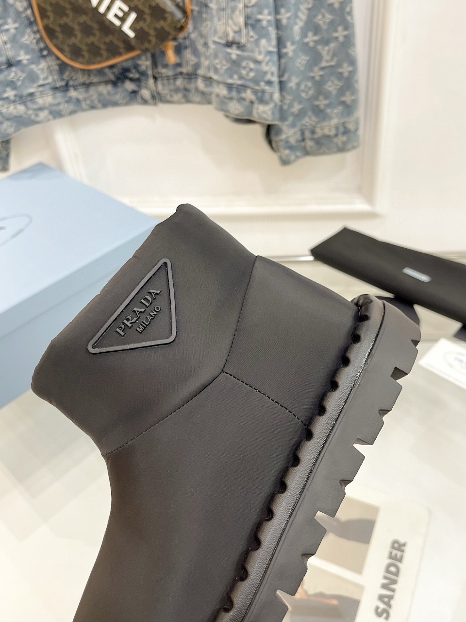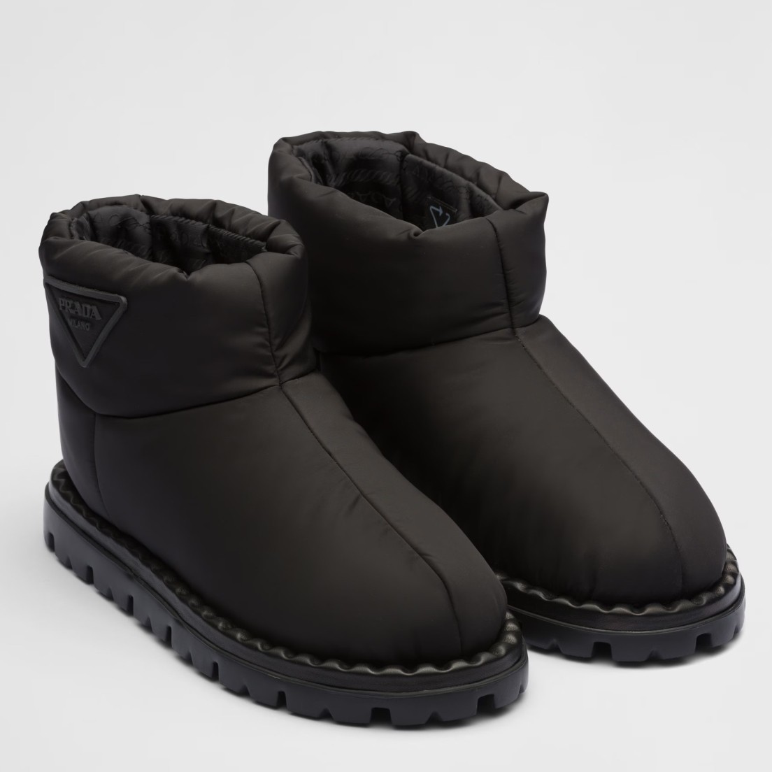 Modern booties made of nylon fabric with a versatile, minimalist design. The triangle logo, reimagined in always new ways, is presented here made of embossed rubber.