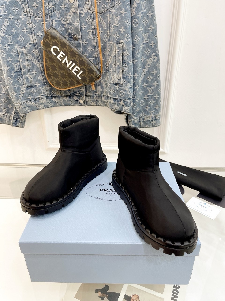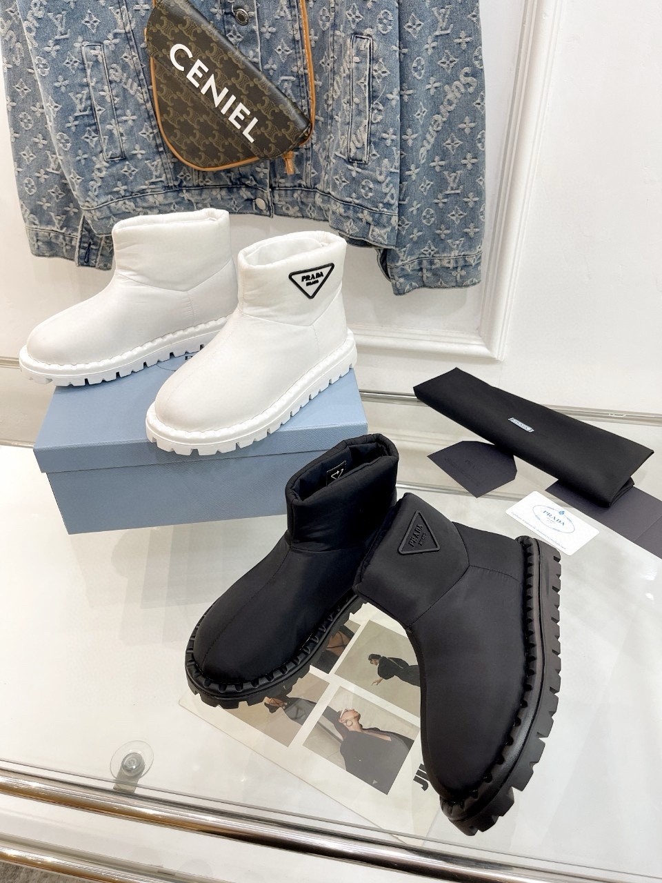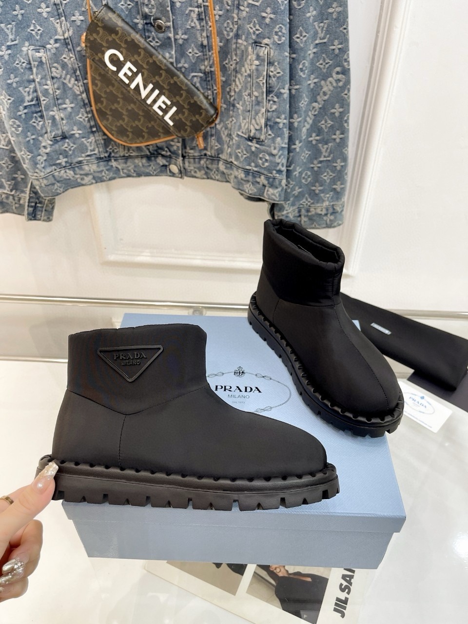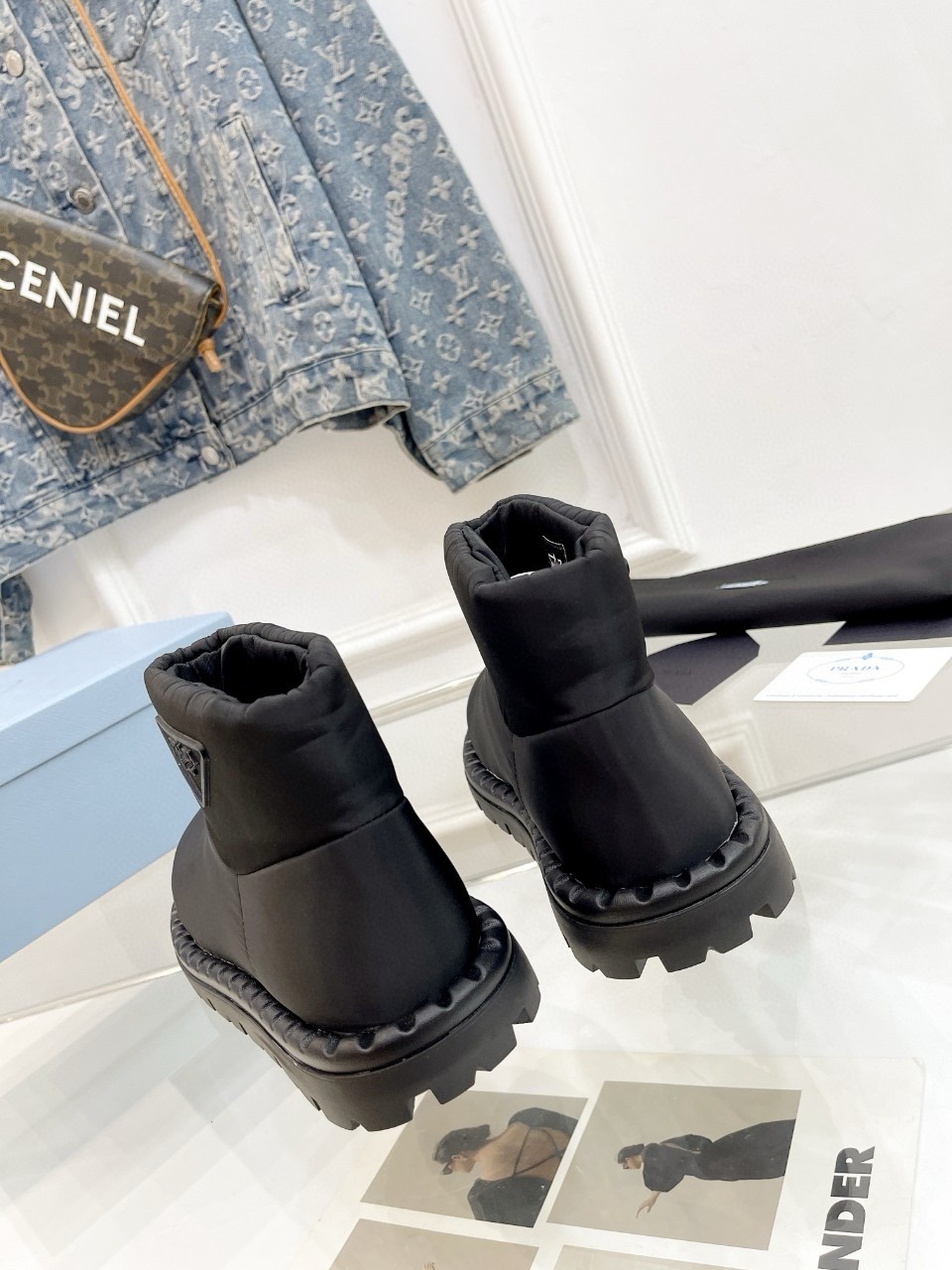 Modern booties made of nylon fabric with a versatile, minimalist design. The triangle logo, reimagined in always new ways, is presented here made of embossed rubber.