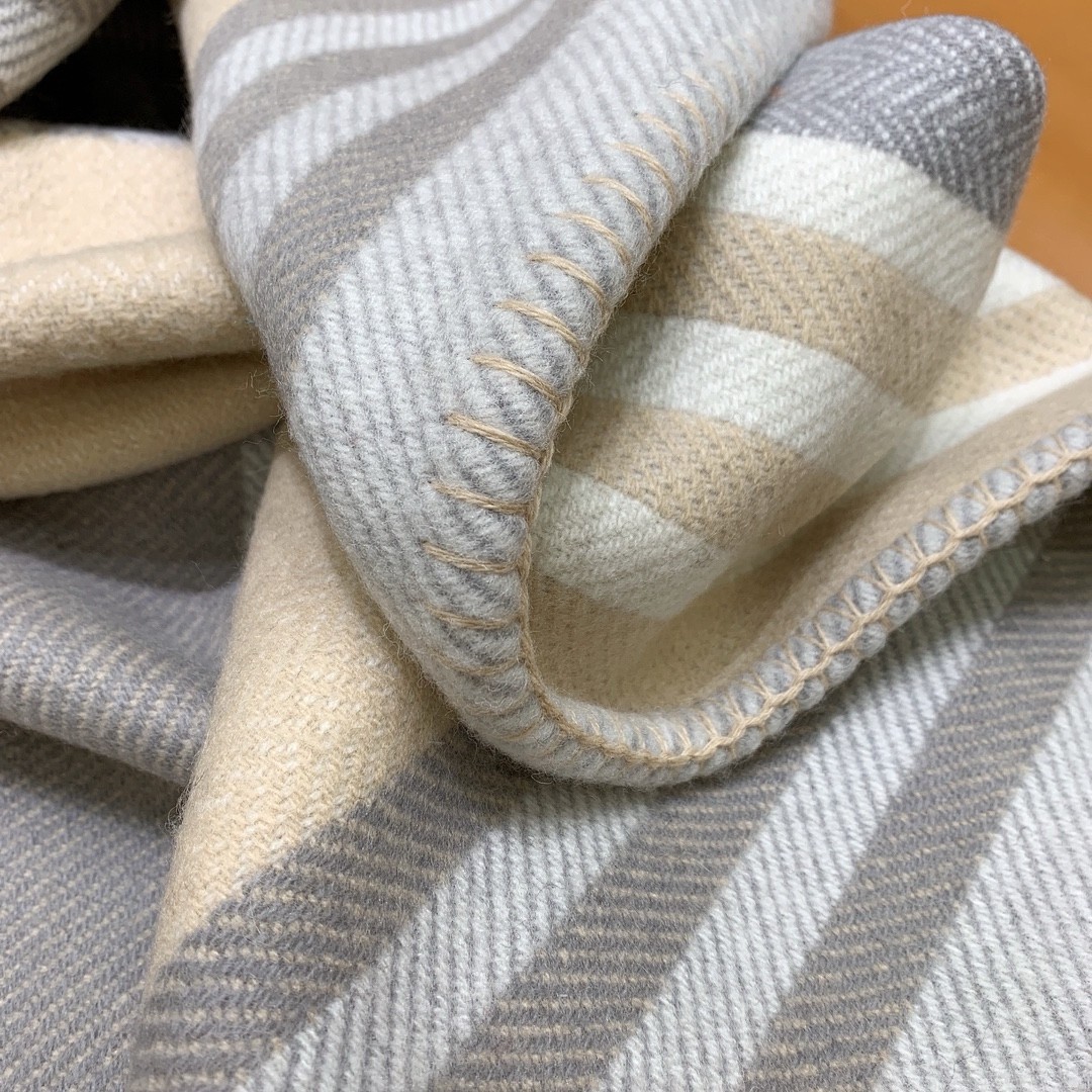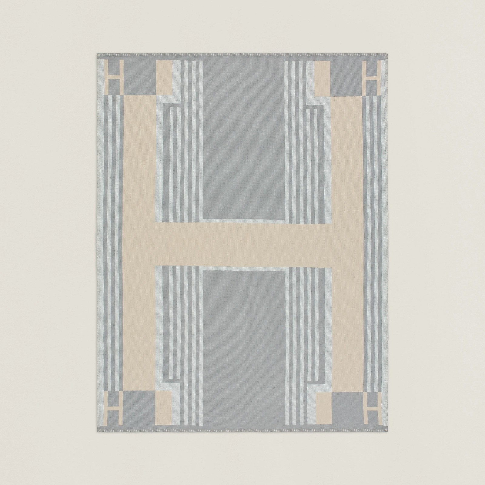 Created by the Hermès Studio, the "Ithaque" design is inspired by the Ionic columns that adorned the Greek temples. Its name derives directly from the Greek island fabled to have been the home of the hero Ulysses. The blanket features two mirrored columns that create an H, for a studied and graphical design, presenting a new take on the emblematic initials of Hermès.