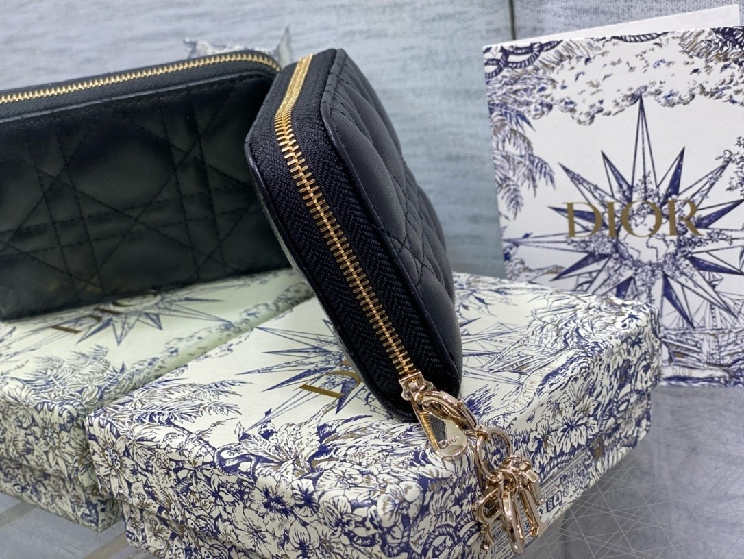 The Lady Dior Voyageur coin purse is a timeless and spacious companion. Crafted in Cannage lambskin, it is enhanced by a removable D.I.O.R. charm. A chic, compact companion, the small coin purse will pair elegantly with other Lady Dior creations.