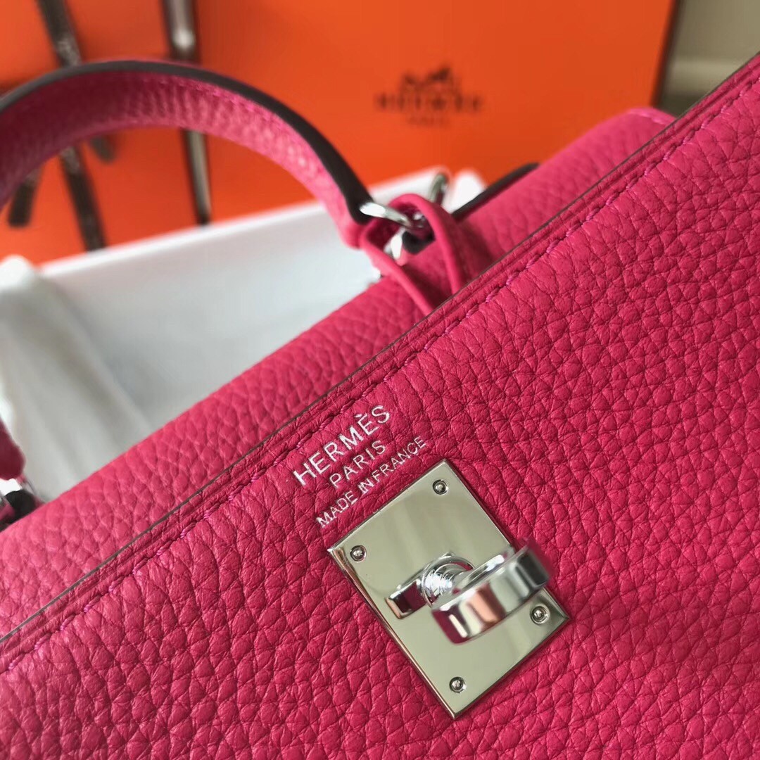 Hermes Mini Kelly 20cm Bag In Rose Red Clemence Leather
