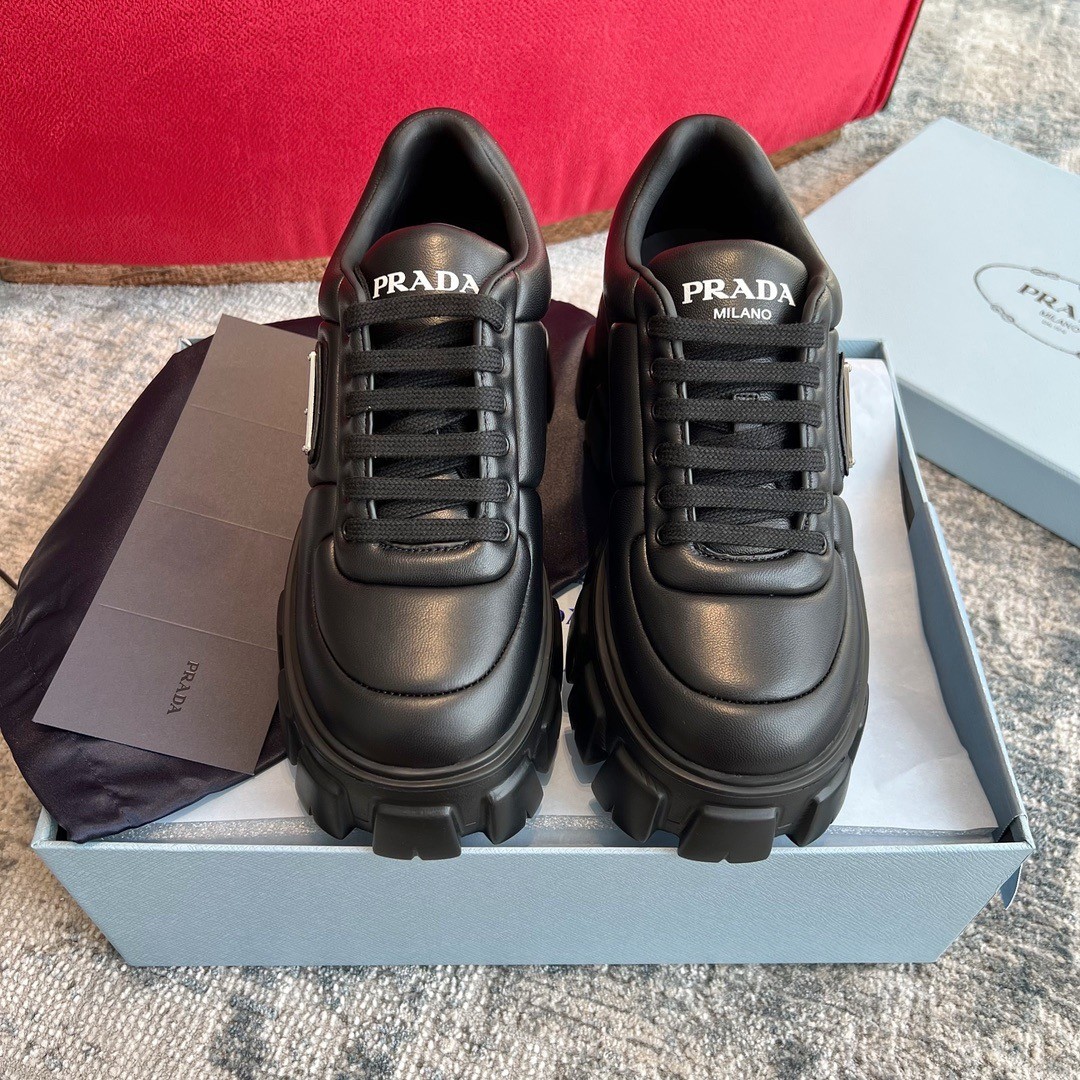 Prada Women's Sneakers in Black Padded Nappa Leather