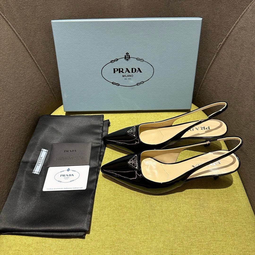 Prada Slingback Pumps 55mm in Black Patent Leather