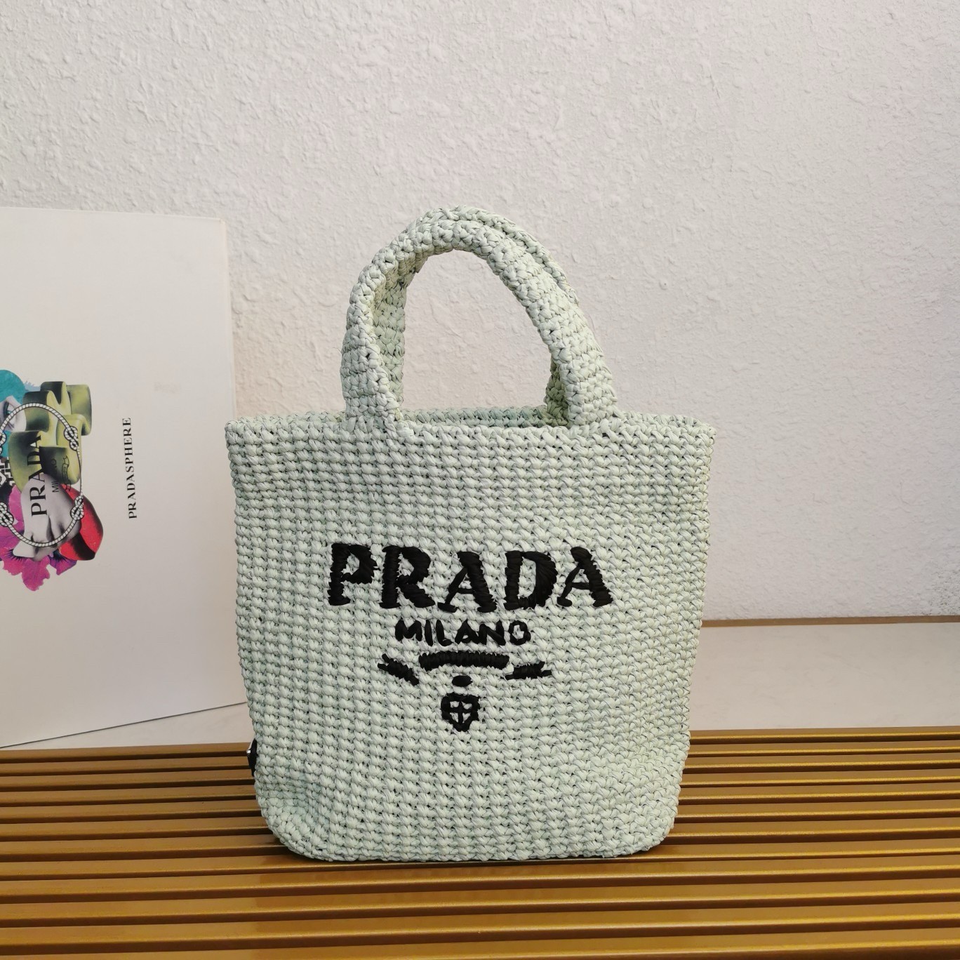 This small tote bag with a soft, deconstructed design is made of raffia-effect yarn, a light, natural material with a summery mood. The embroidered lettering logo decorates the front, while the emblematic triangle in enameled metal embellishes the side.
