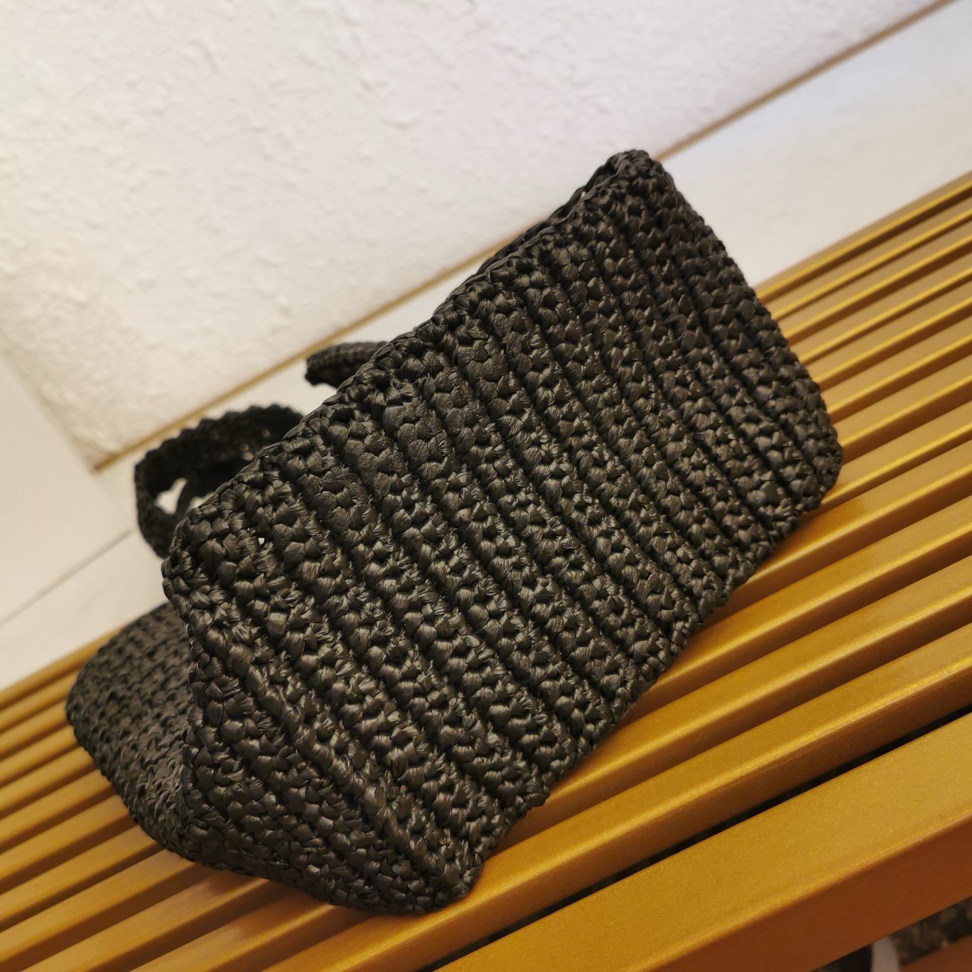 Prada Small Crochet Tote in Black Raffia-effect Yarn