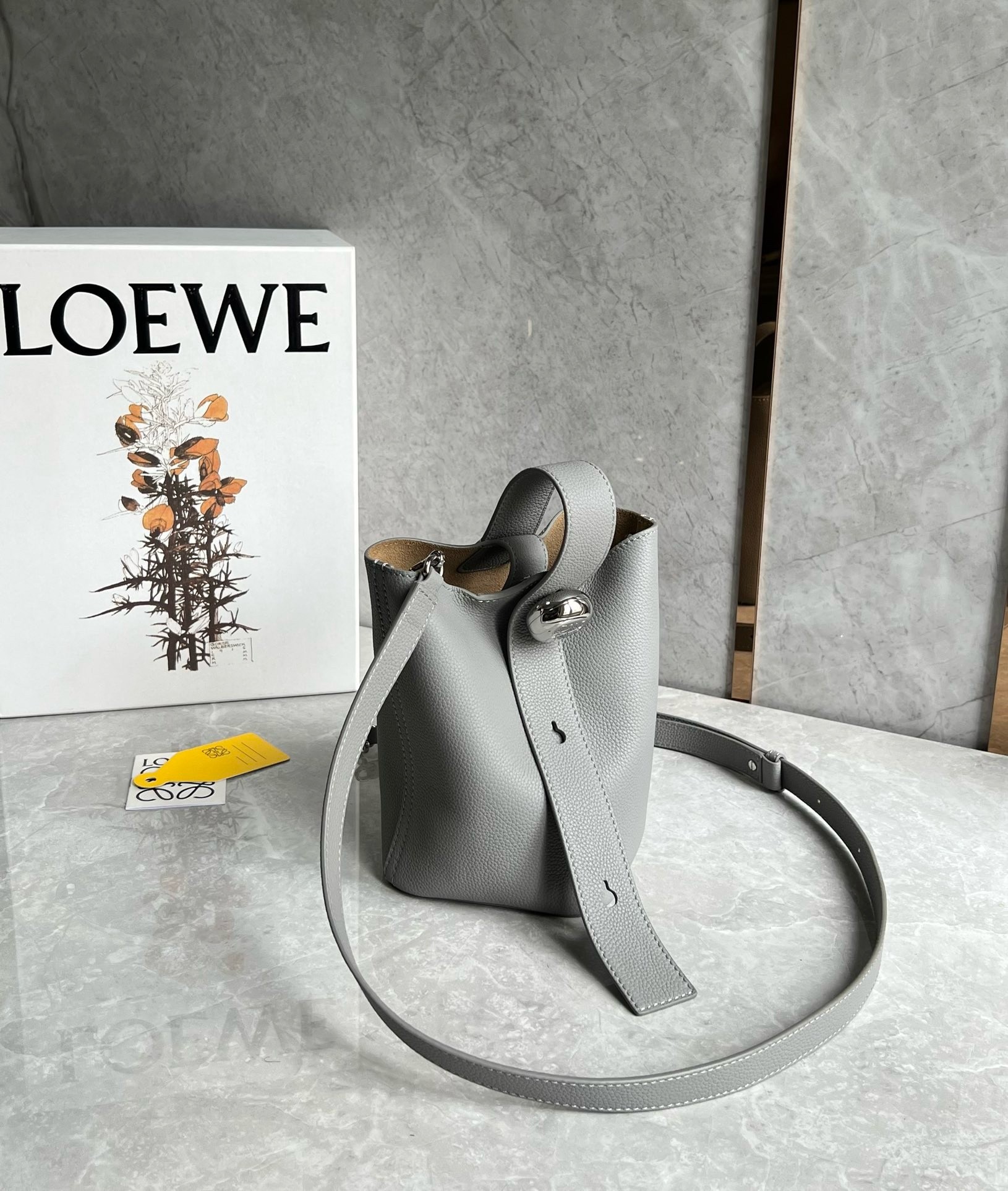Loewe Mini Pebble Bucket Bag in Grey Grained Leather