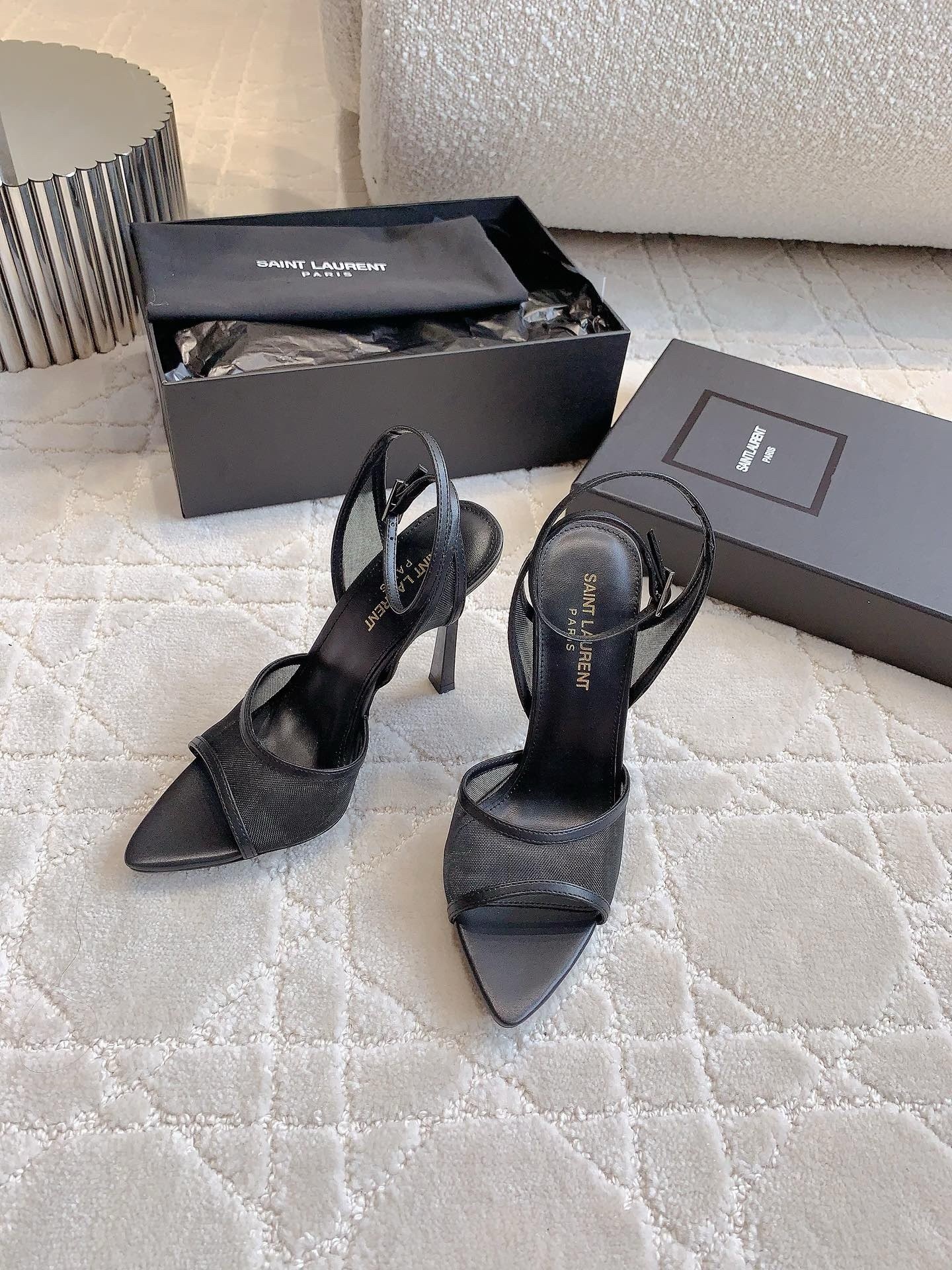 Saint Laurent Missy Sandals 110mm in Black Mesh