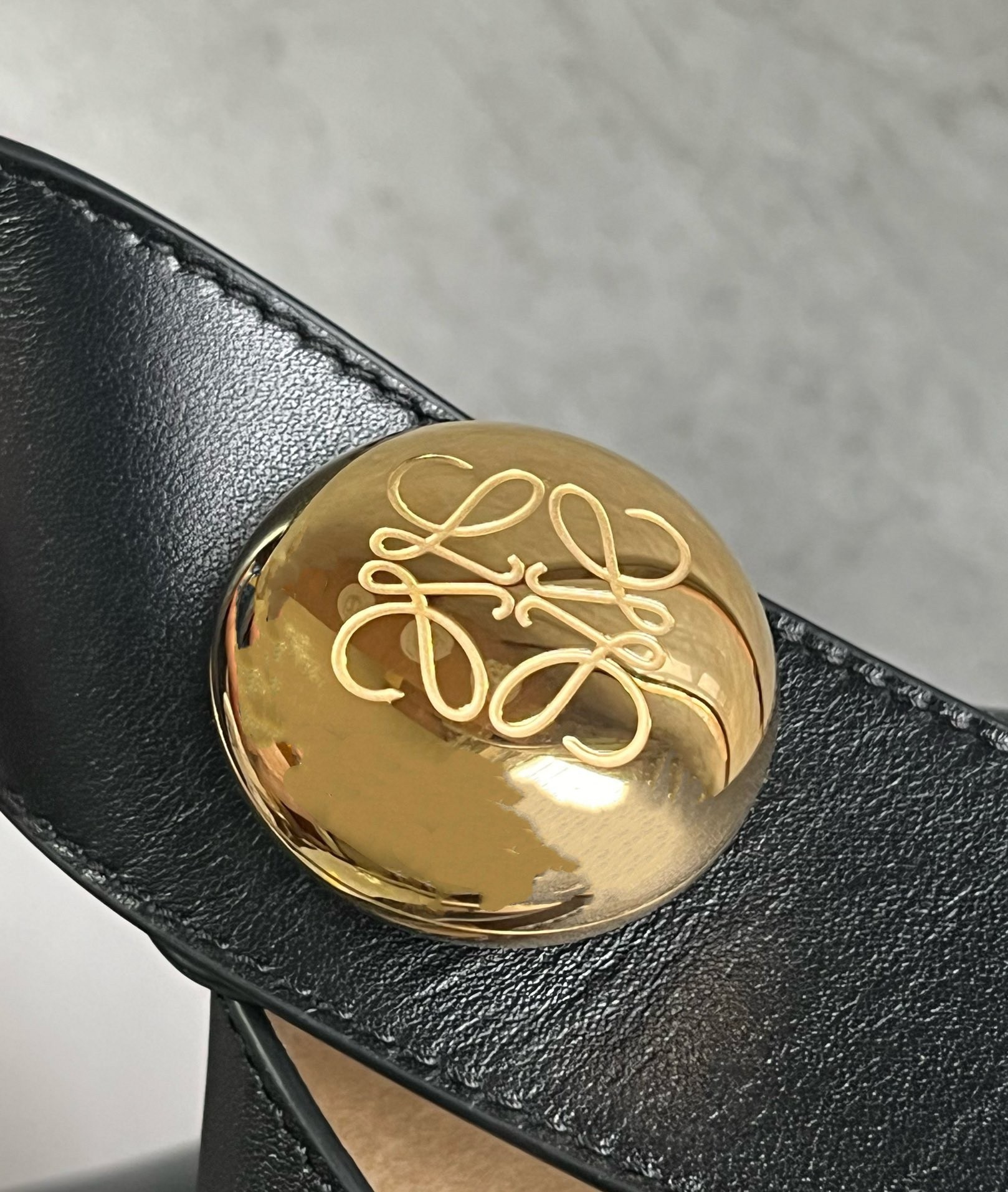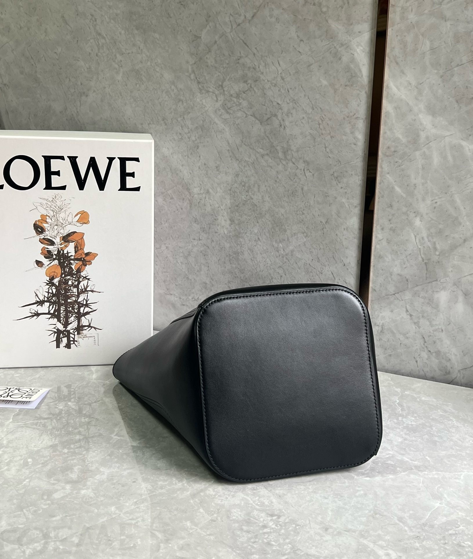 Loewe Medium Pebble Bucket Bag in Black Calfskin