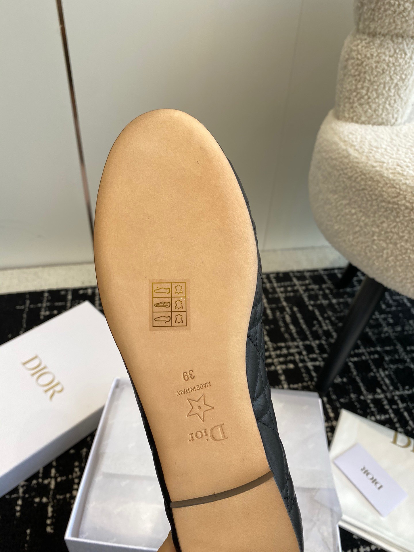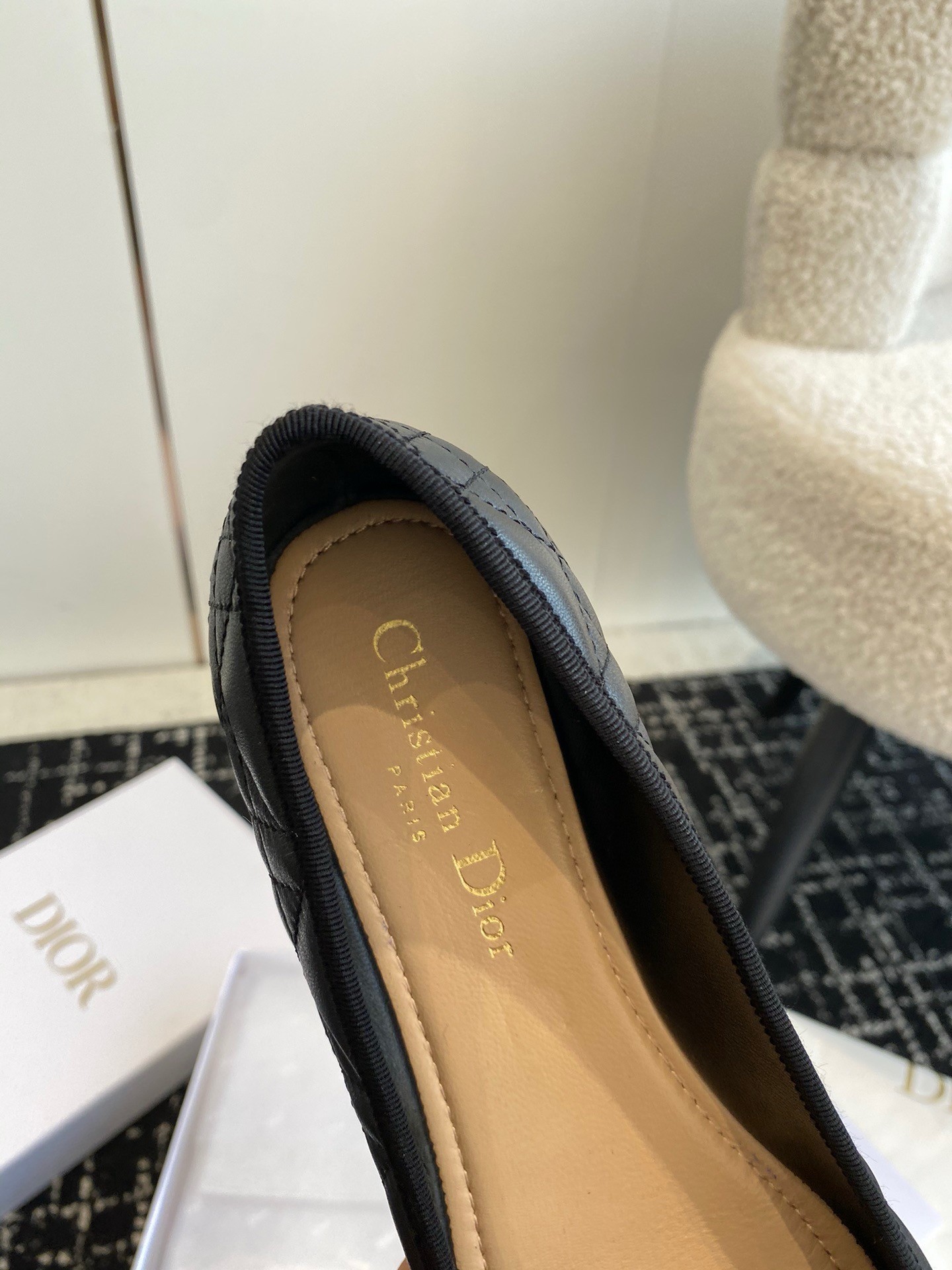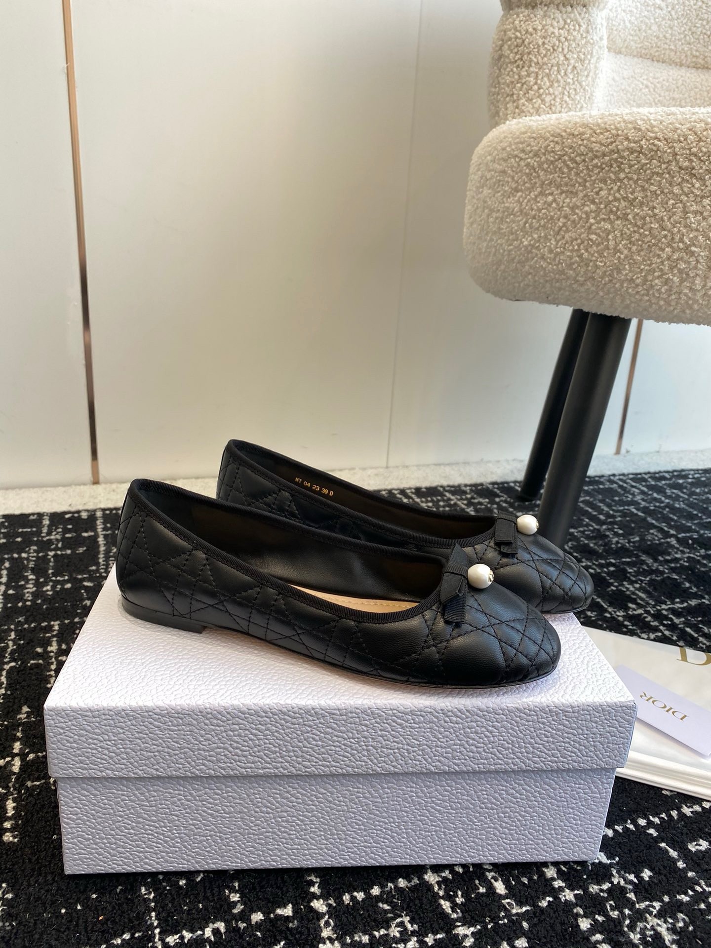 The Dior Ballet flat revisits a timeless pattern with elements of House couture. Crafted in quilted calfskin with the Cannage motif, it is distinguished by a delicate grosgrain bow on the front adorned with a white CD resin pearl inspired by the iconic Dior Tribales earrings. Featuring a padded leather insole, the supple, comfortable ballet flat will add the finishing touch to all of the season's looks.