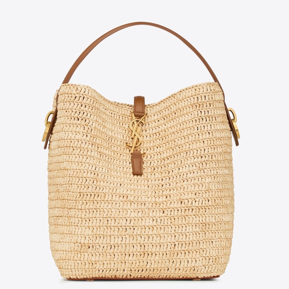 Woven from raffia and decorated with the iconic YSL hardware that doubles as a clasp, this Le 37 bucket bag from Saint Laurent is a must-have. It's classic in shape but with a new more summery update by way of its composition and has a detachable shoulder strap so that you can wear it multiple ways.