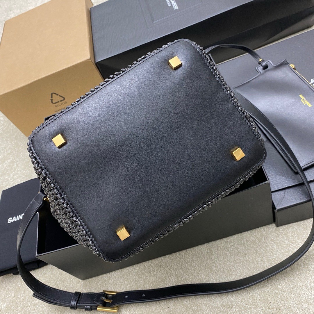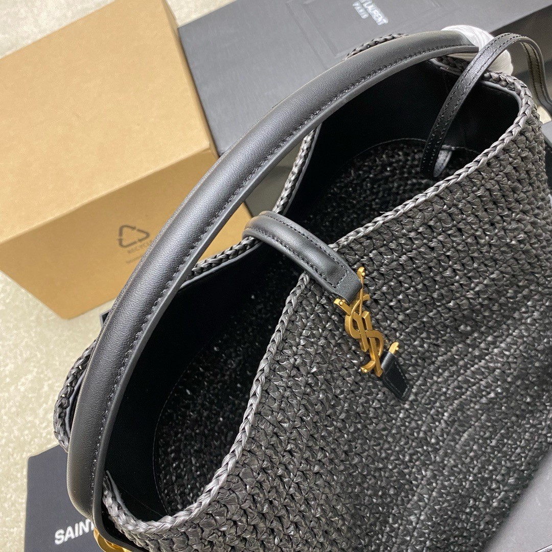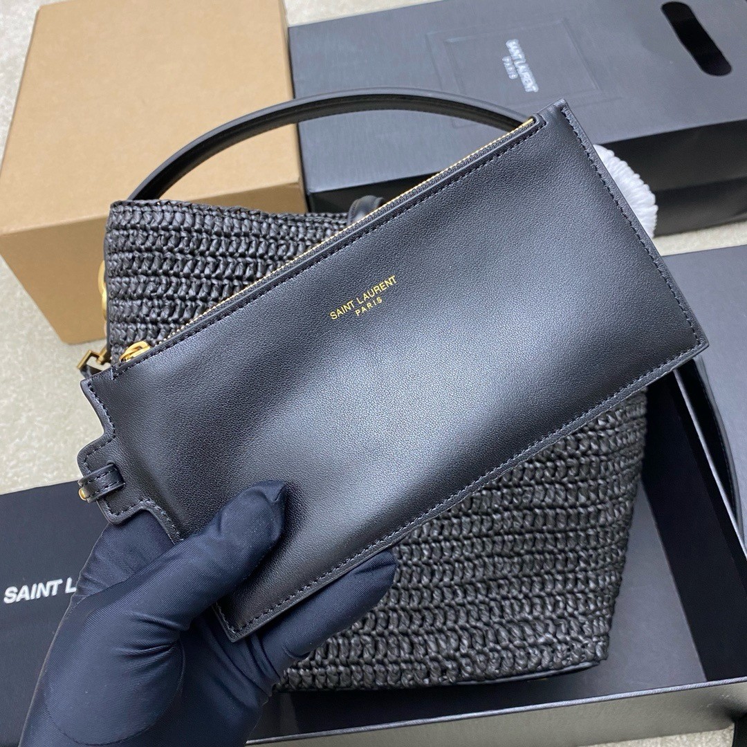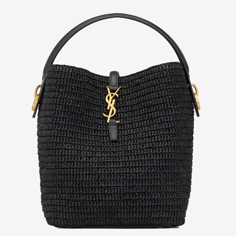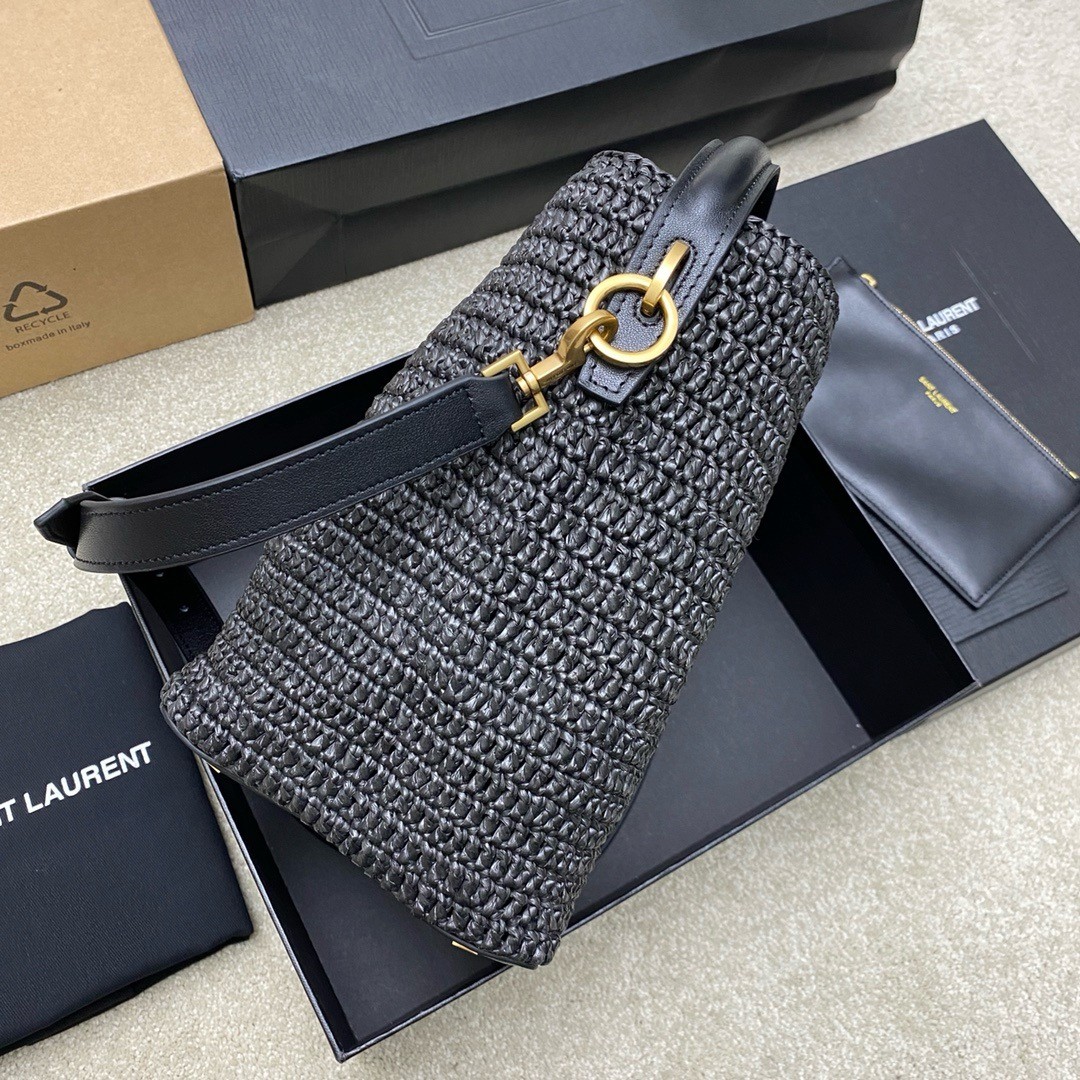Saint Laurent Le 37 Bucket Bag in Black Woven Raffia