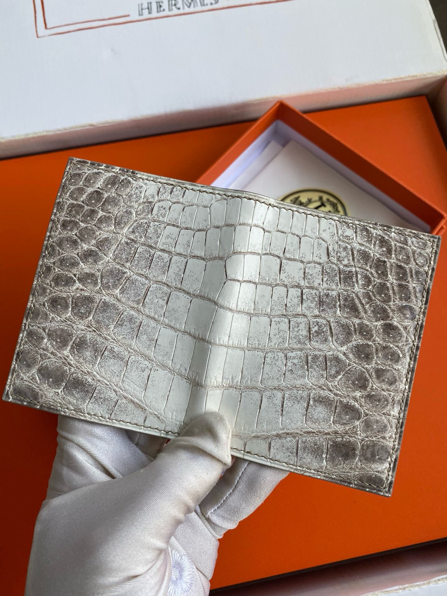 Created in 2004, the MC2 line of masculine small leather goods meaning "money & credit card" provides maximum functionality. Handcrafted from the finest Niloticus Crocodile skin, the Hermès MC² Euclide card holder exudes a discreet yet unmistakable luxury. Its sleek, compact design ensures functionality and meticulous craftsmanship highlight its refined and timeless appeal, making it an essential accessory for the discerning gentleman.