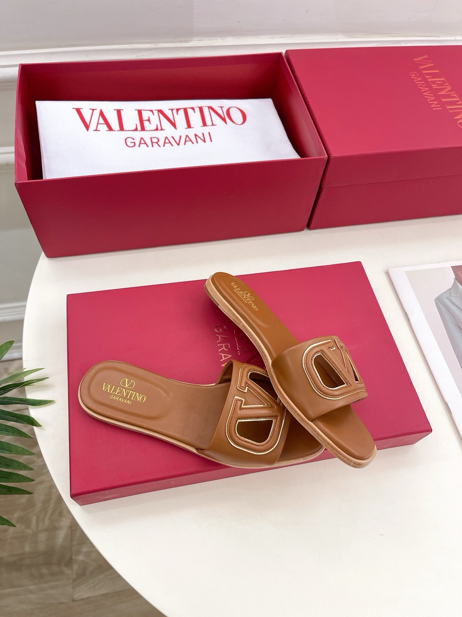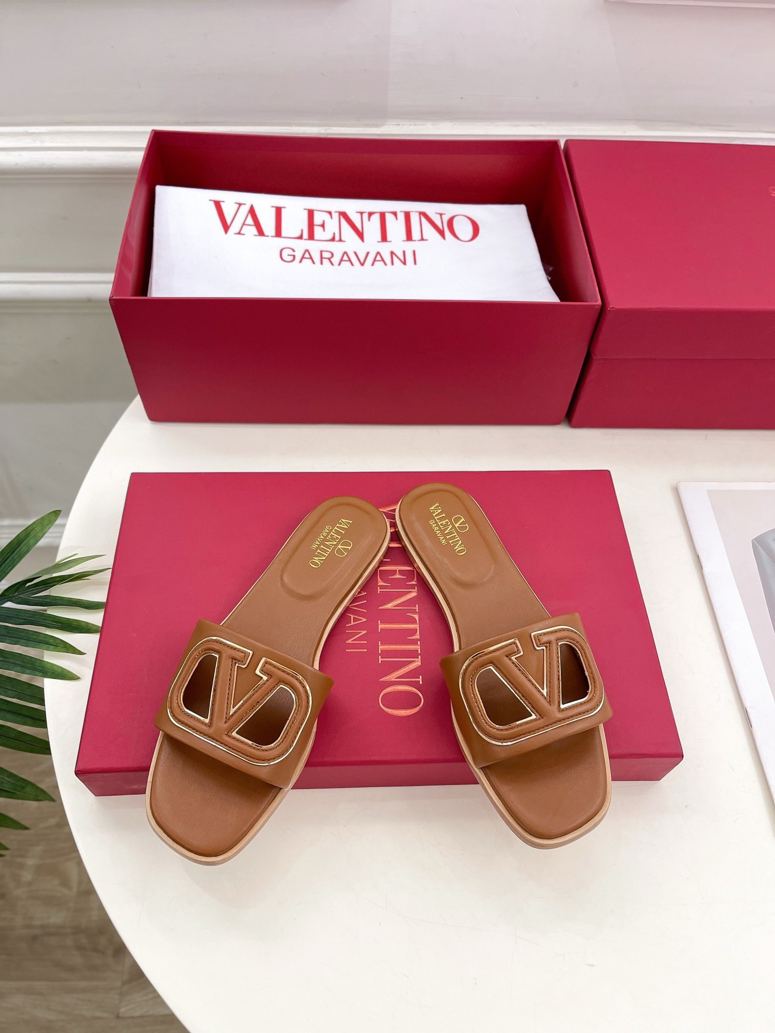 Italian designer Valentino Garavani puts sophisticated design front and centre, celebrating the label's illustrious heritage with these impeccably crafted VLOGO slides. The pair features a leather strap complete with a cut-out version of the iconic logo, creating the ideal partner for high-waist shorts and floaty kaftans as you drift between the beach and the city under the warm summer sun.