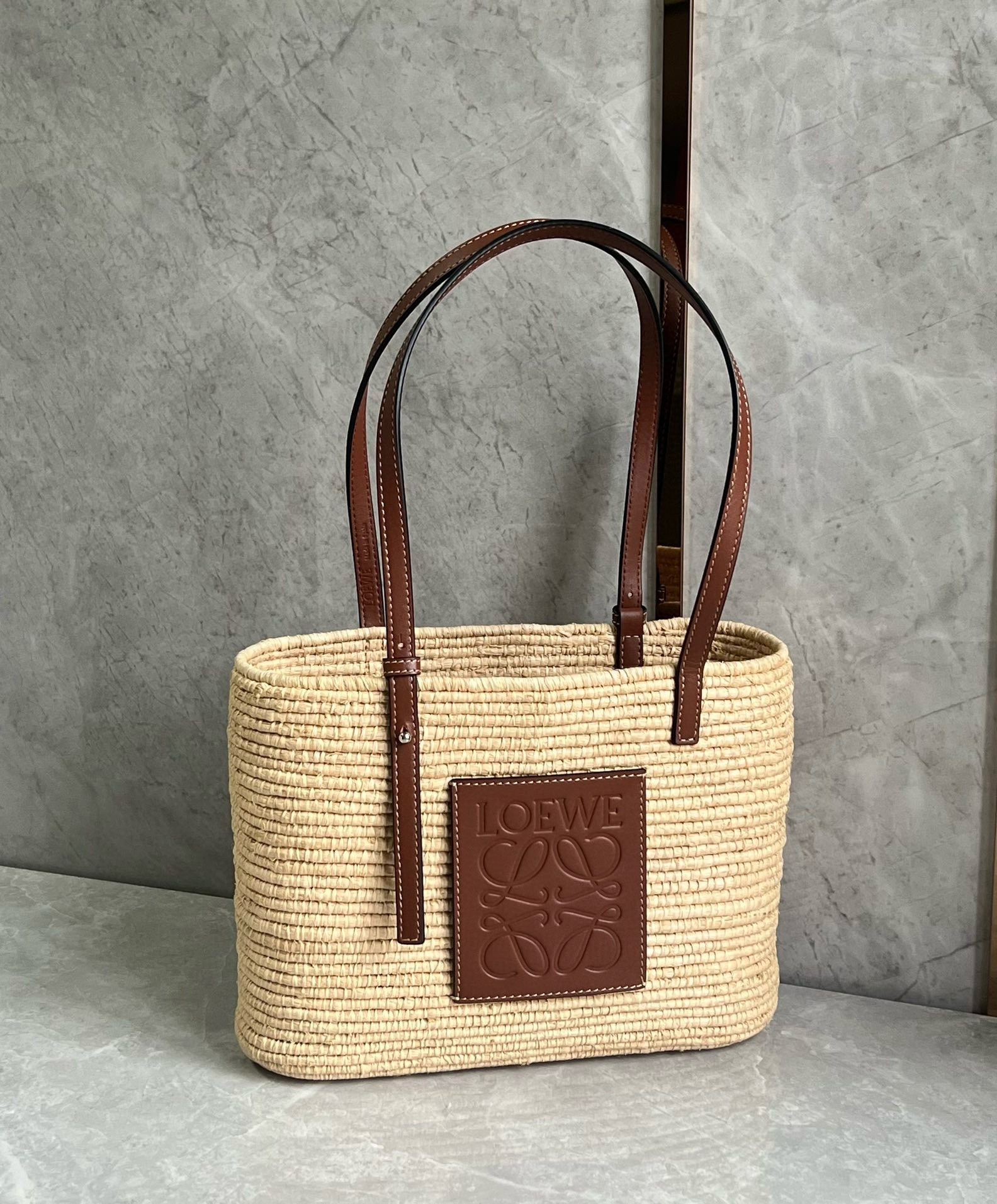 Tapping into the ever-enduring wicker basket bag obsession, LOEWE presents this iteration in collaboration with Paula’s Ibiza – a collection of pieces inspired by the carefree, breezy aesthetic of the Balearic Islands. Capturing its Spanish roots, this hand-woven Palm leaf bag is accented with butter-soft leather trims. Stamped with the iconic Anagram patch to the front, the twin top handles and unlined interior allude to the rustic styles you'd find in markets.