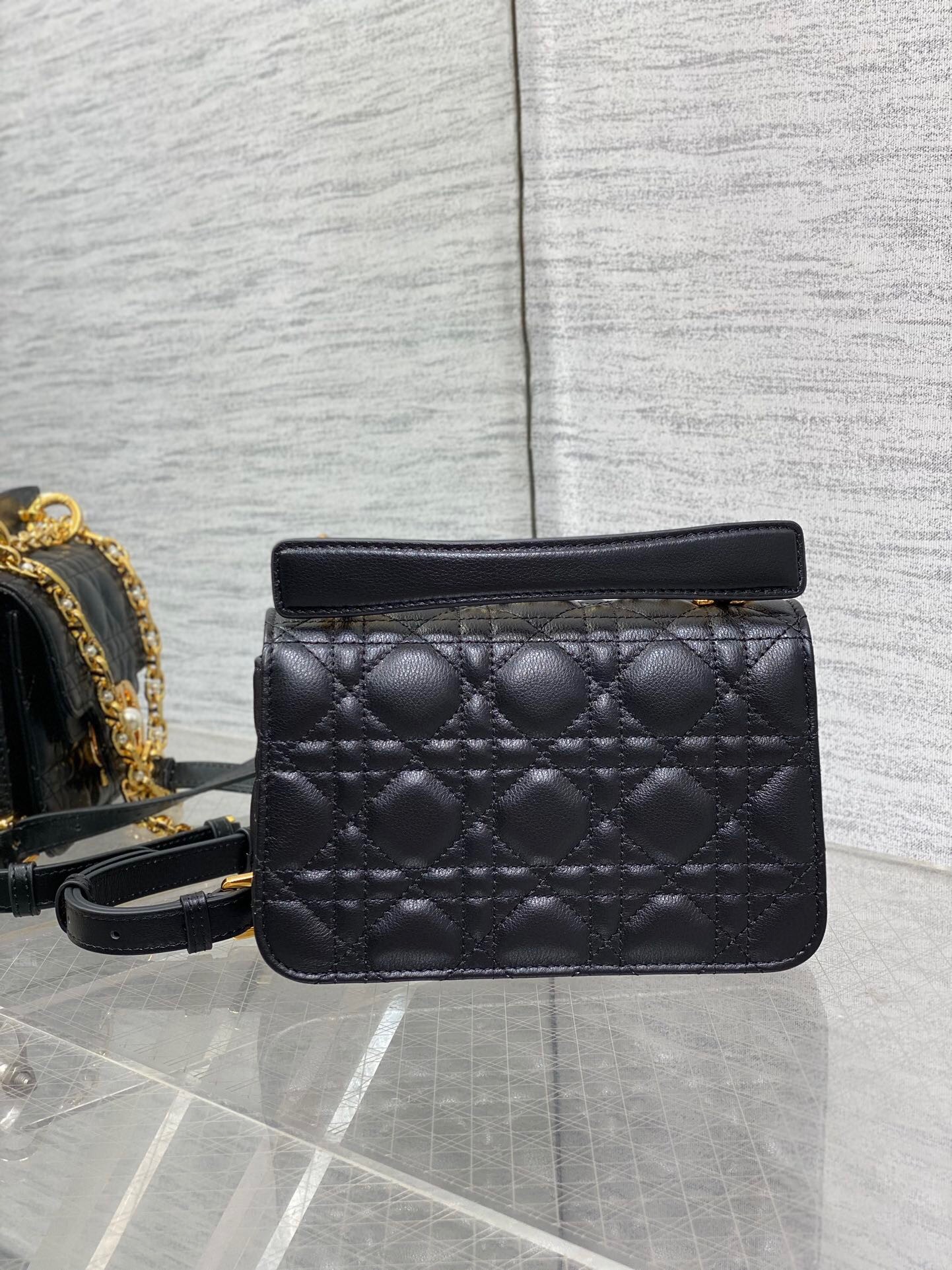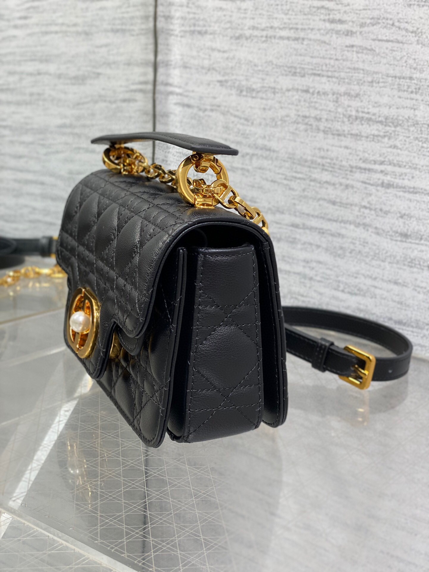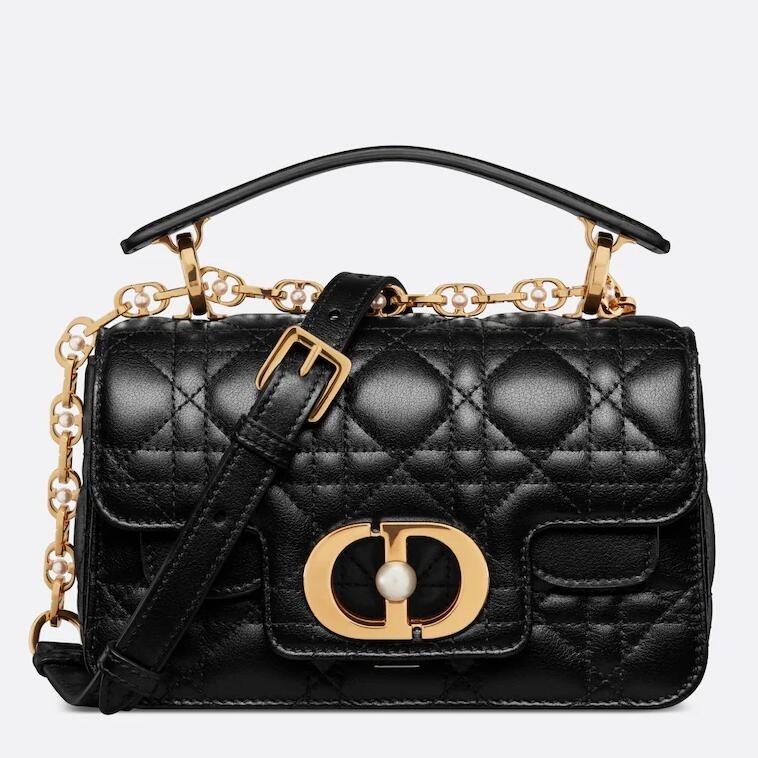 The Dior leather goods lines are enriched by an irresistible new accessory to be taken wherever you go: the Dior Jolie bag. An emblem of Dior elegance, this top handle model - distinguished by its timeless, structured silhouette, dressed in smooth leather and adorned with the iconic graphics of cannage. An exceptional creation, it reflects the House's heritage with a refined clasp comprising the gilded letters "CD", a detail subtly enhanced by a decorative pearl. A perfect addition to any outfit, day or night, it can be carried by hand or on the shoulder, in a sophisticated or more casual style.