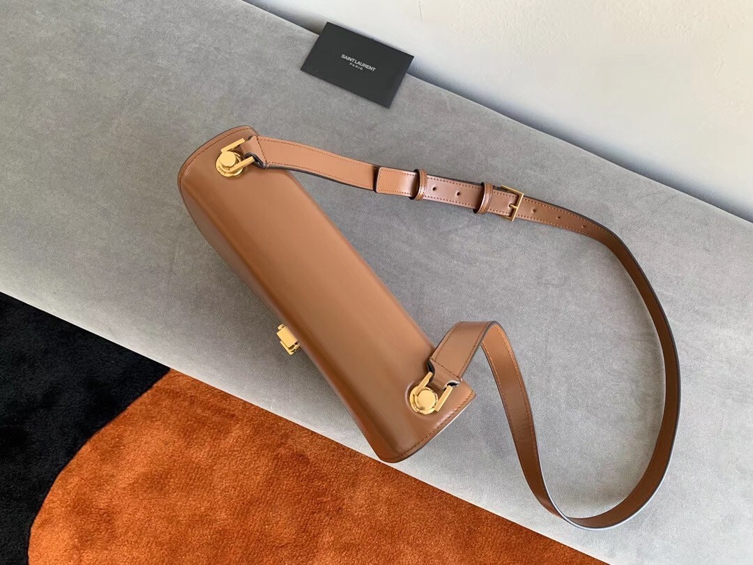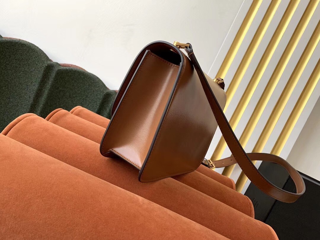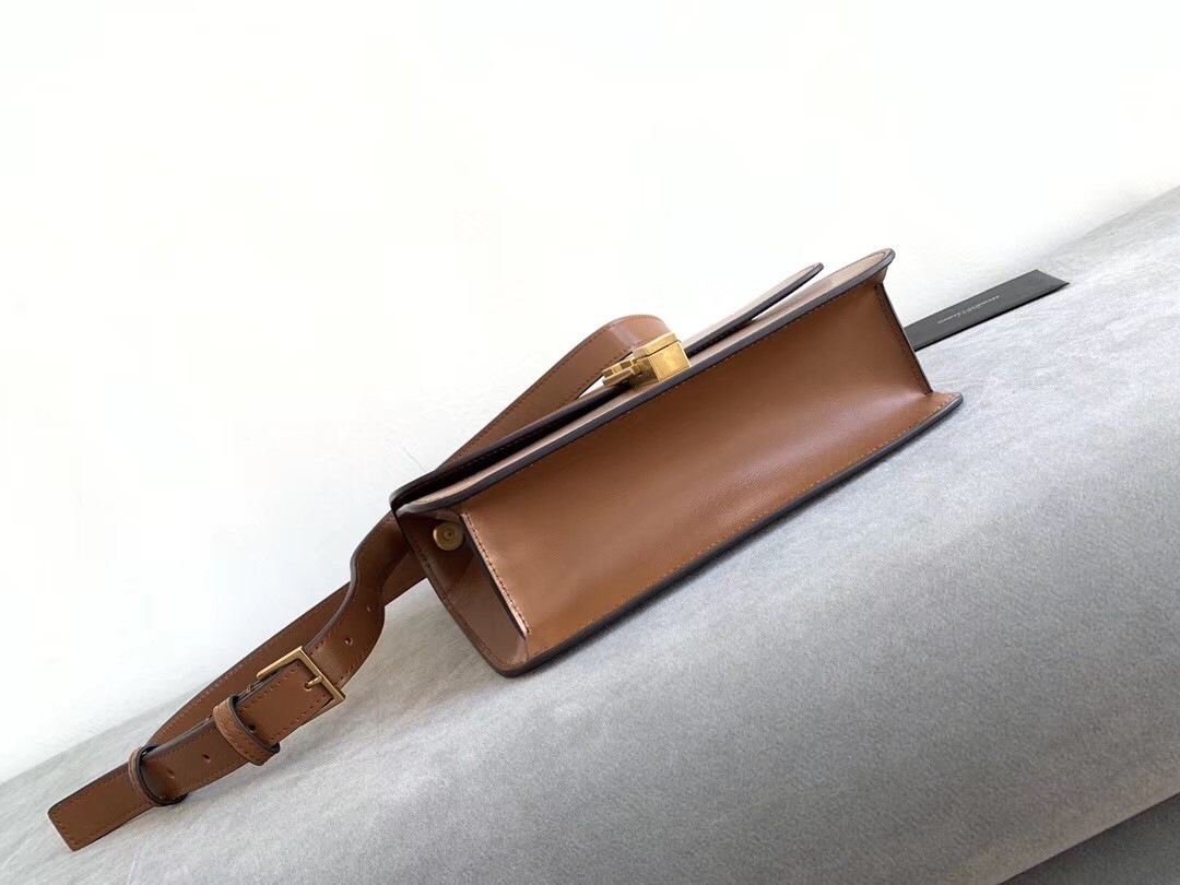 Although Saint Laurent is dishing out the drama for its AW19 collection, the Carre satchel seems to go in the opposite direction. A new addition to the label, its details are kept to a minimum with just a smattering of branding on the gold-toned square-clip fastening and an adjustable buckle on the shoulder strap. It’s cut from smooth leather to a boxy shape and complete with an internal zip pocket.