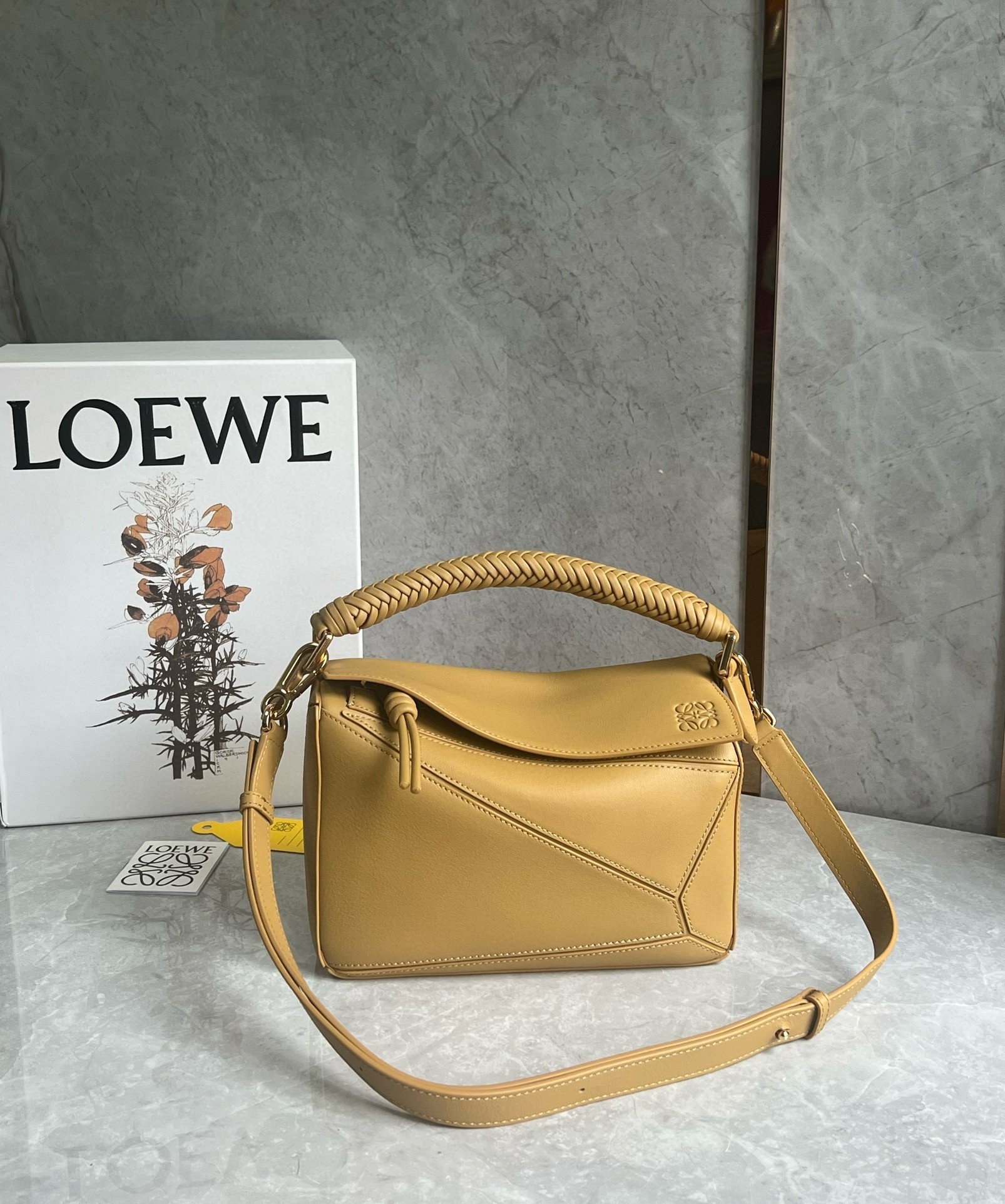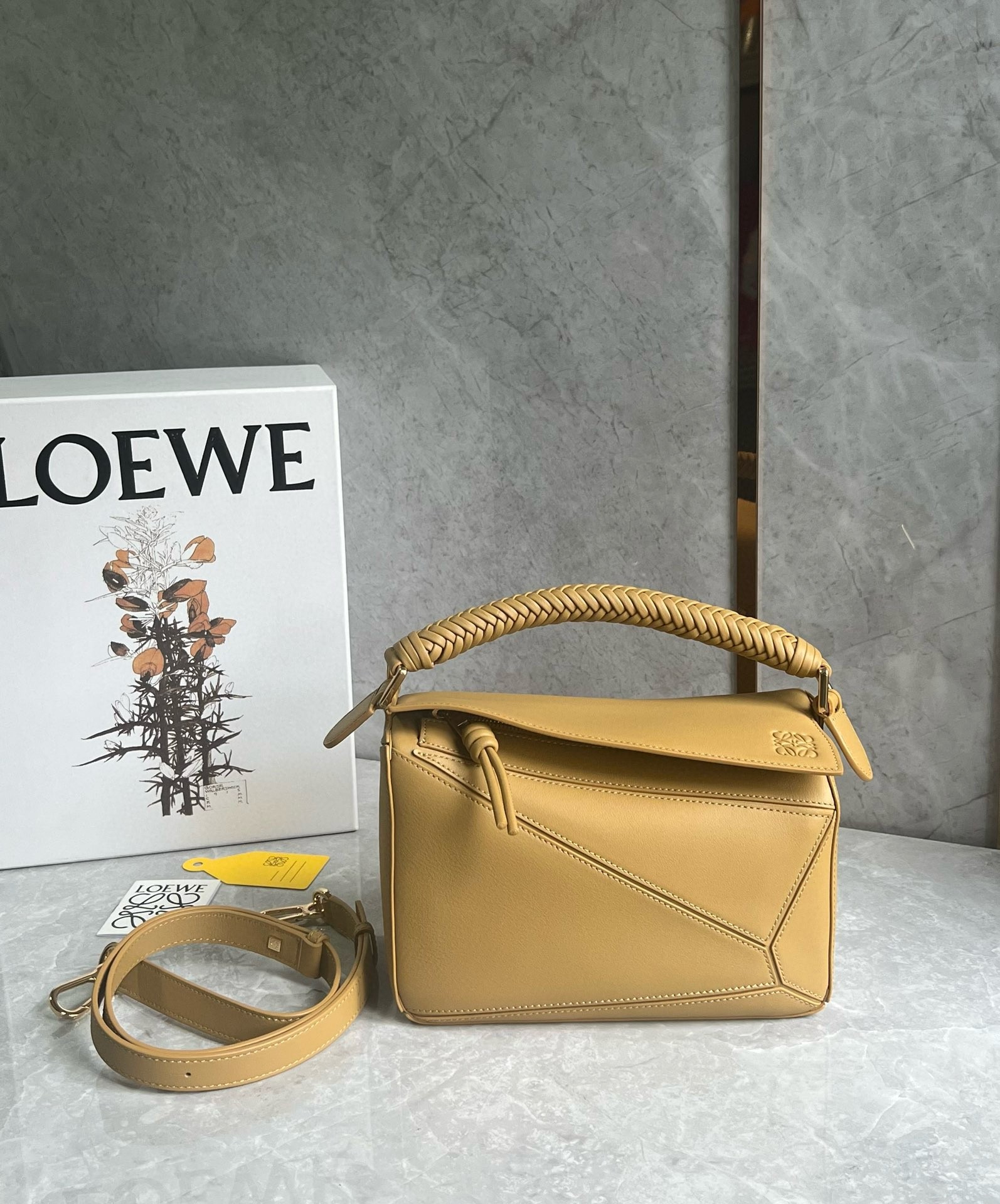 The first bag designed after Jonathan Anderson was appointed creative director in 2014, the Puzzle bag from LOEWE exudes modern artistry with its innovative cuboid shape. Contemporary design paired with traditional craftsmanship are combined in the Puzzle model from LOEWE. The braided handle and the detachable and adjustable strap characterize this model.