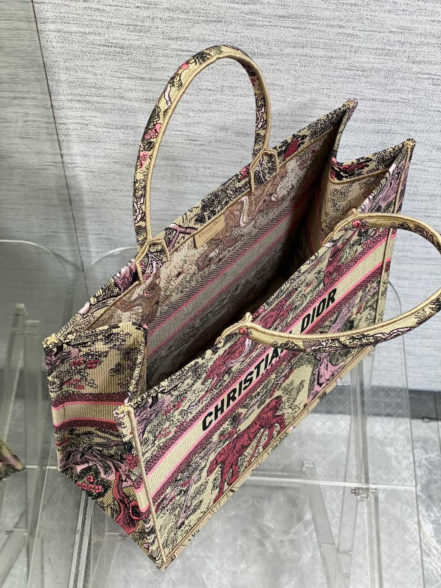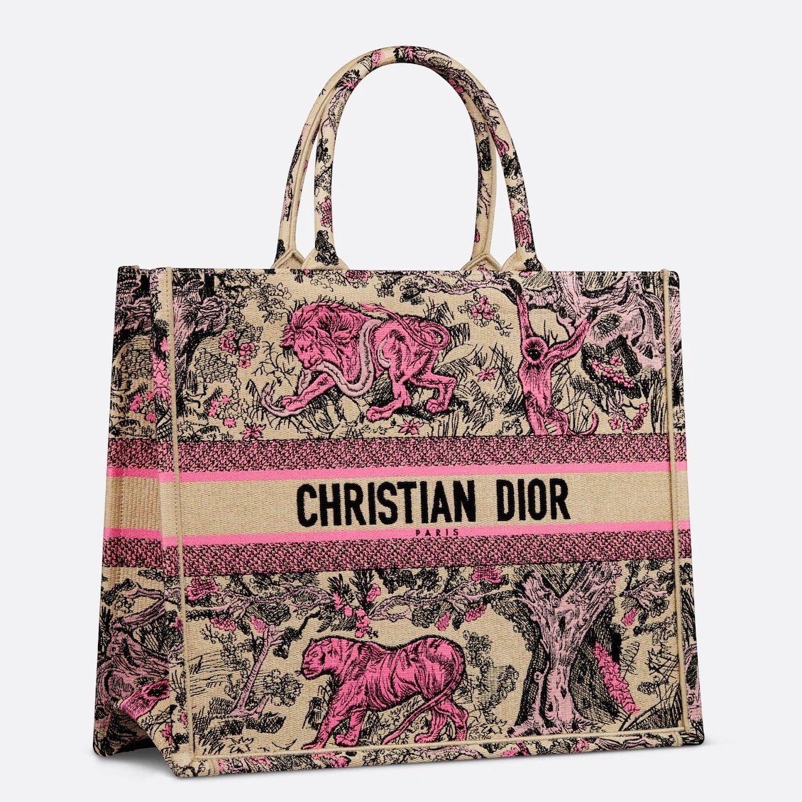 Introduced by Maria Grazia Chiuri, Creative Director of Christian Dior, the Dior Book Tote has become a staple of the Dior aesthetic and is part of the Dioriviera capsule. Designed to hold all the daily essentials, it is crafted in raffia embroidered with the Toile de Jouy Sauvage motif. Enhanced by a contrasting Christian Dior Paris signature on the front, the large tote exemplifies the House's savoir-faire and may be carried by hand.