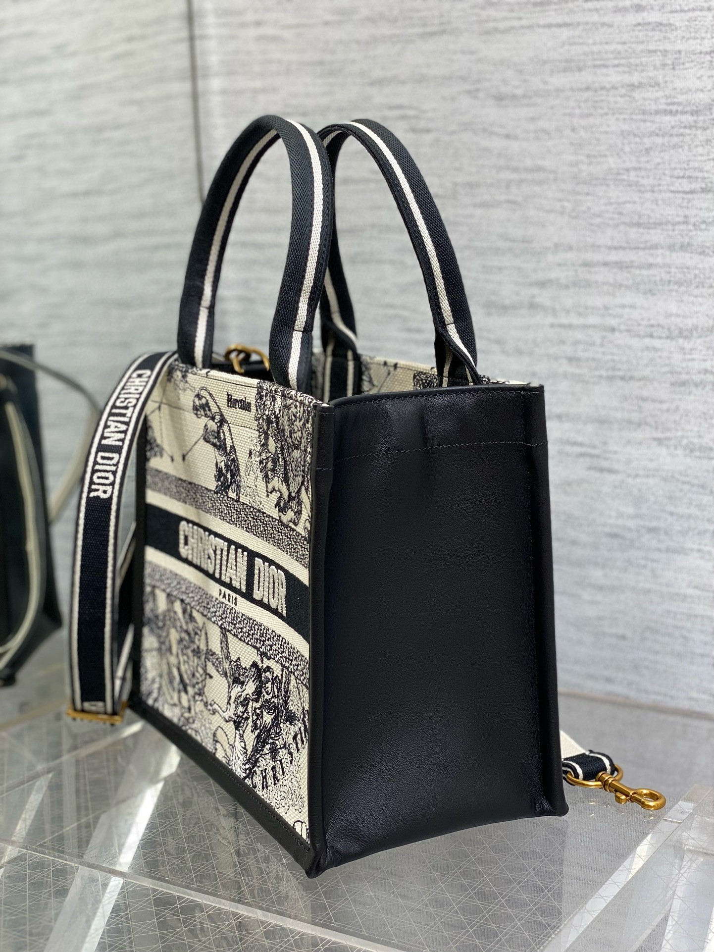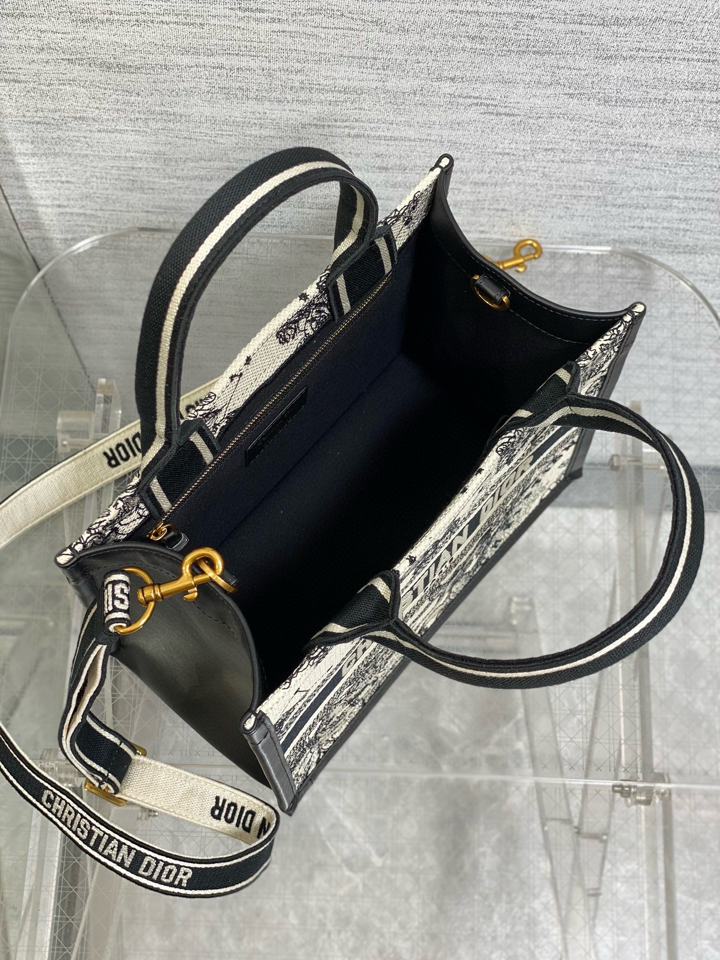 Maria Grazia Chiuri's hallmark Dior Book Tote offers an original take on elegance with a motif inspired by Mr. Dior's passion for astrology. The refined style showcases the latte multicolor Dior Zodiac embroidery and black calfskin. Designed to keep all the daily essentials organized, the interior is equipped with a zip pocket and slip pockets. Featuring an adjustable and removable shoulder strap, the practical small tote exemplifies Dior's savoir-faire and can be carried by hand or worn over the shoulder.