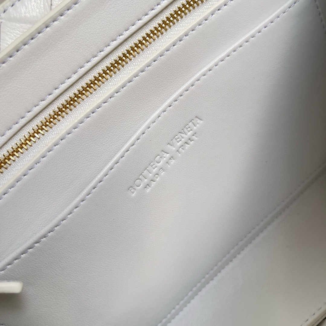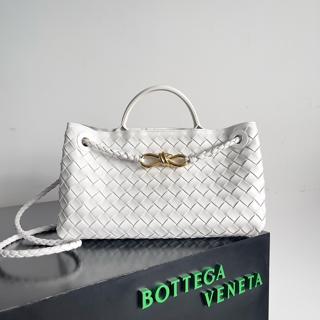 Bottega Veneta Andiamo Small East/West Bag in White Intrecciato Lambskin