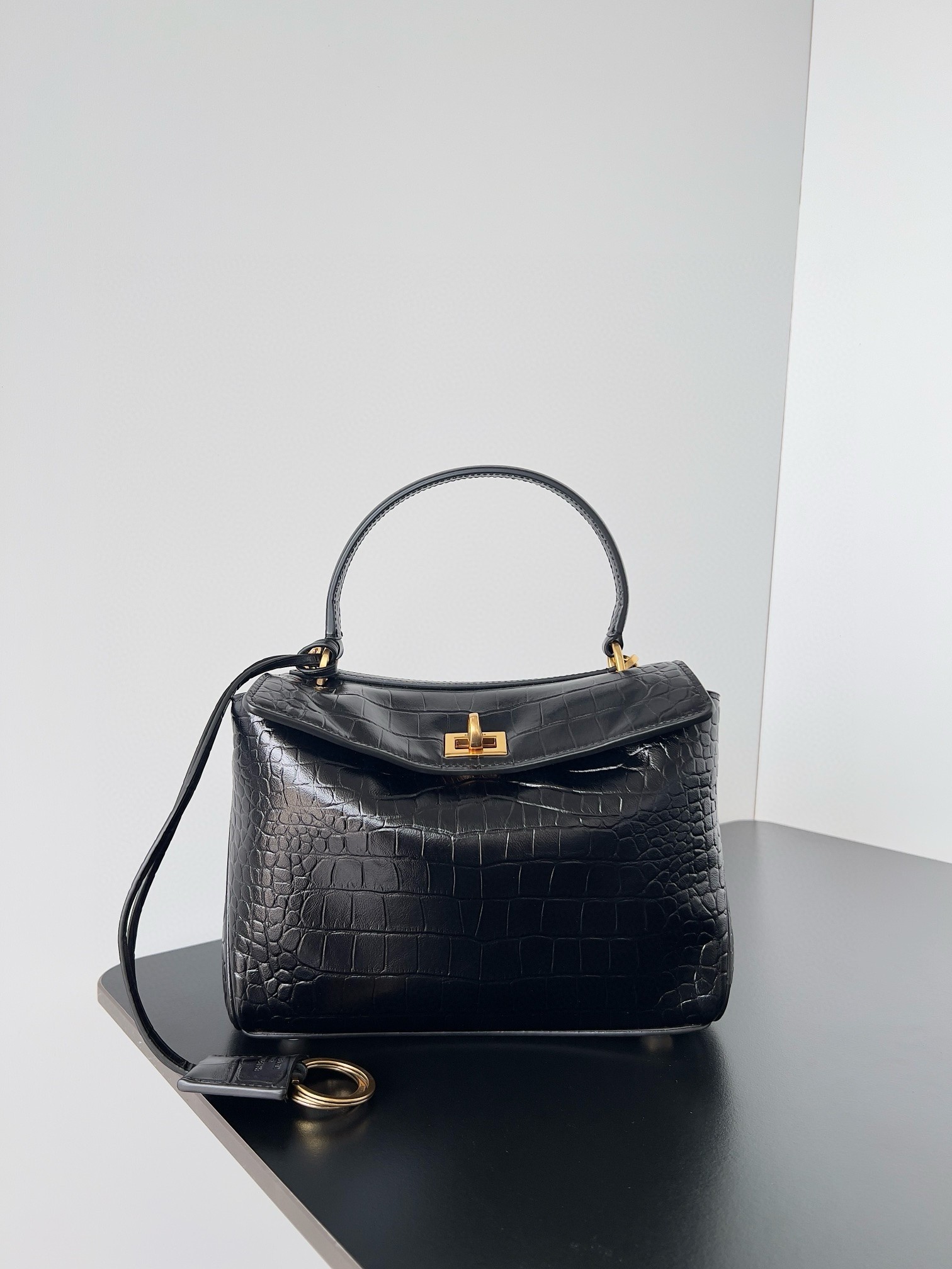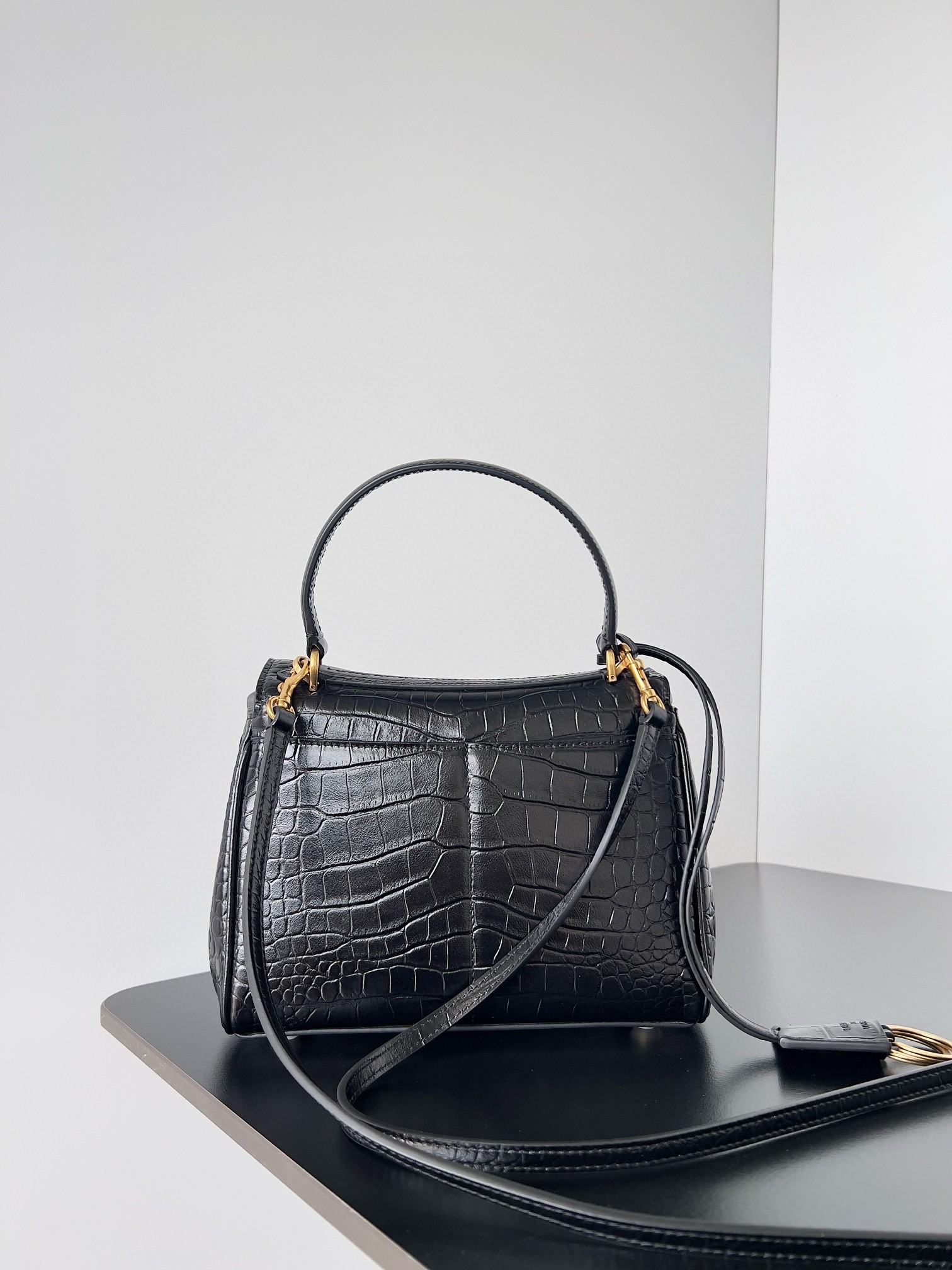 You'll always be grateful to have a bag as flawlessly designed as Balenciaga's Rodeo bag tote in your roster. Made from calf leather embossed with Crocodile, it has gleaming aged gold-tone hardware and a detachable shoulder strap, so you can carry it hands-free. There's enough space inside for all your essentials such as a phone, wallet, book and sunglasses case, while internal compartments keep makeup and your keys organized.