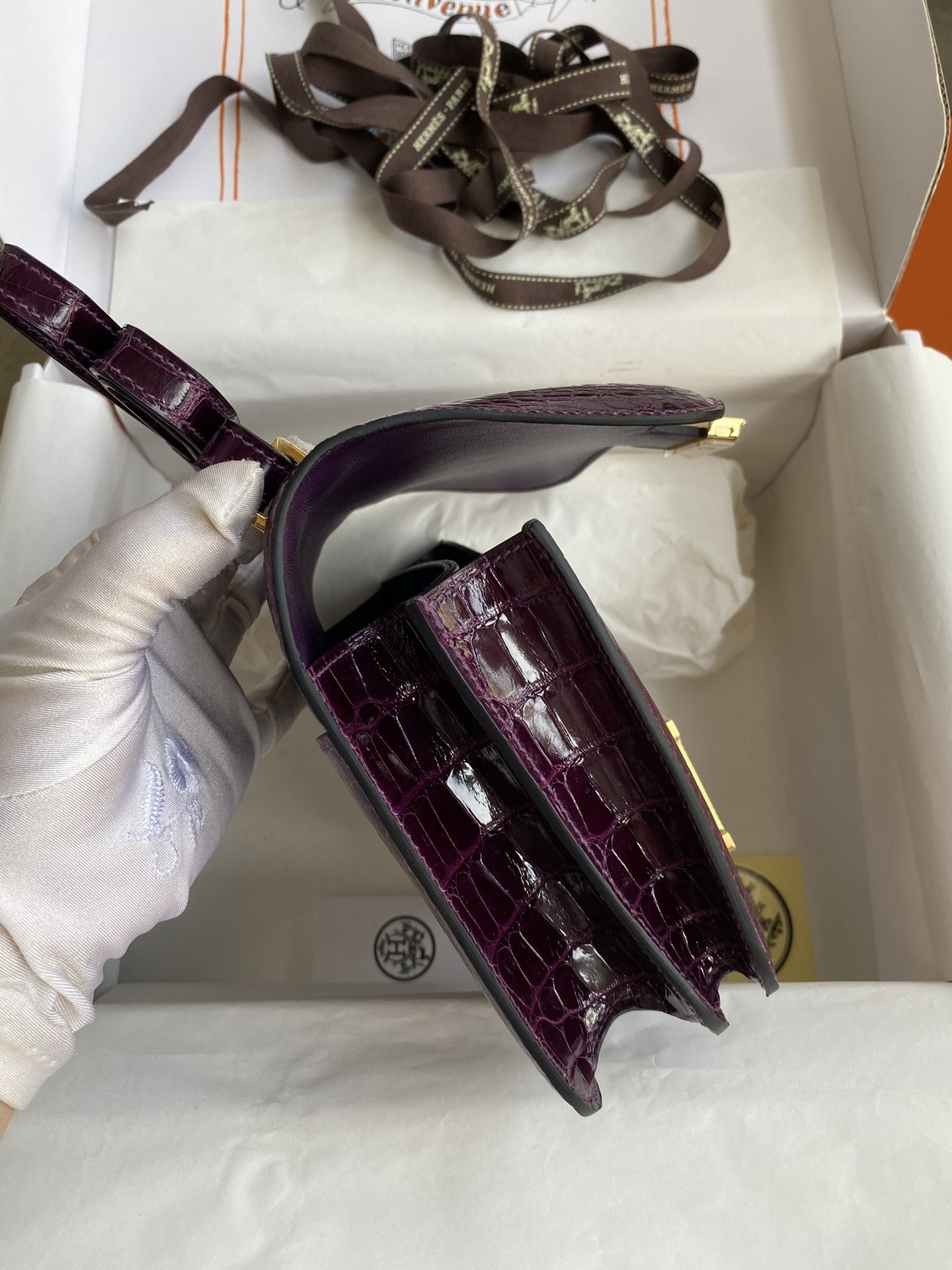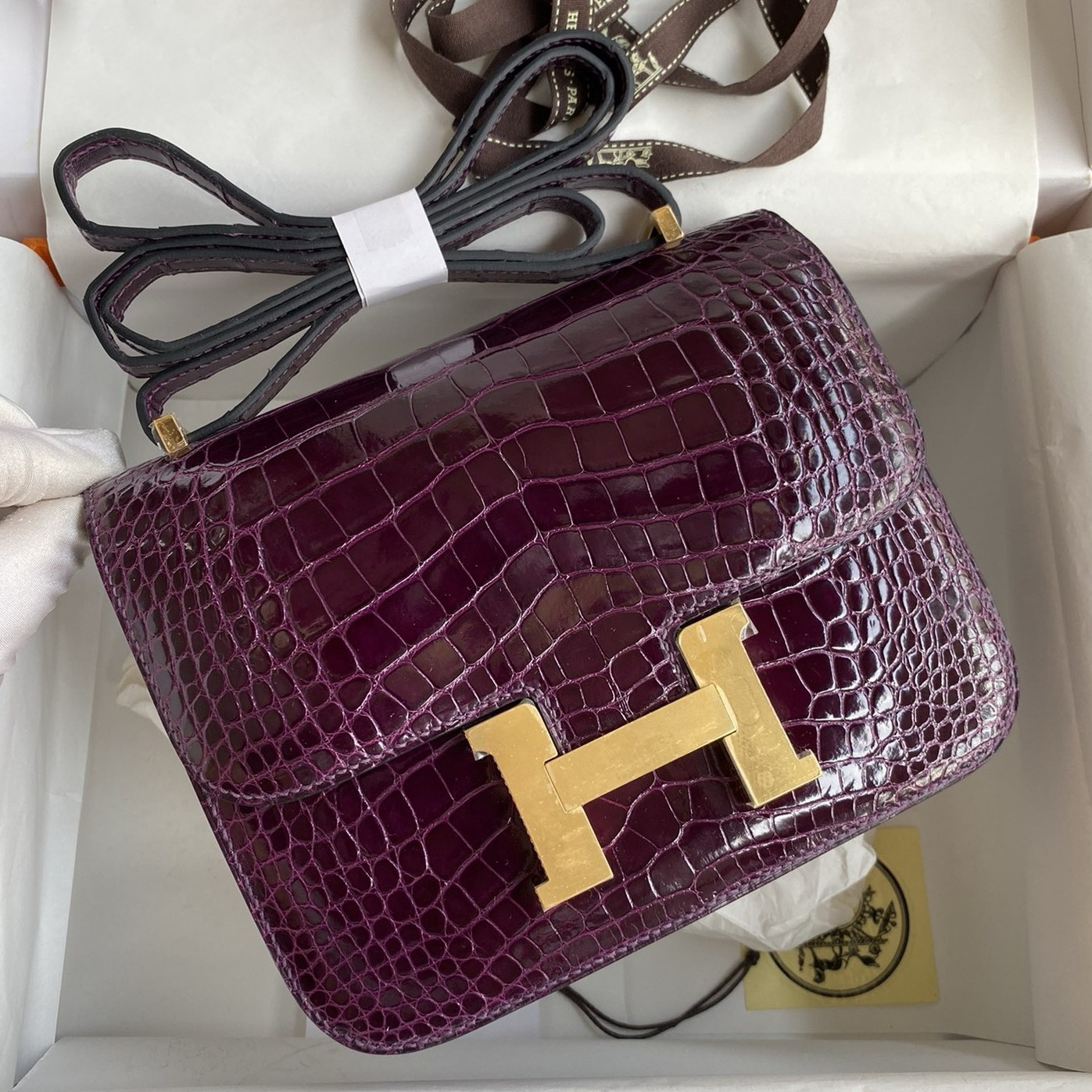 Introduced in 1969, the Hermès Constance quickly became one of the most highly sought-after of the brand’s luxury bags, behind only the Kelly bag and the Birkin. The Hermès Constance 18 is a stylish shoulder bag designed with versatility in mind. The Constance 18, also referred to as the Hermès Constance Mini. The squarish shape and large, prominent “H” closure across the front give this bag a youthful appeal, even when rendered in a sophisticated Shiny Alligator skin. A skin that comes from the Mississippi Alligator, this leather is created by polishing the spots with agate for a Shiny finish.