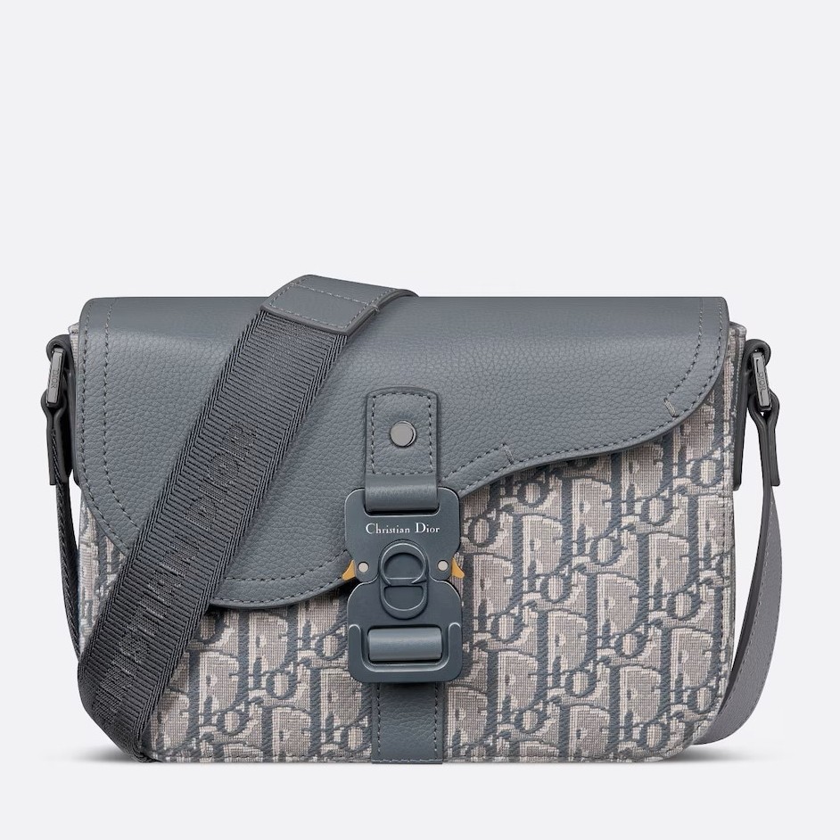 The Saddle messenger bag is a compact and modern creation. Crafted in Dior Oblique jacquard, it features a tonal grained calfskin Saddle flap enhanced by an aluminum buckle. Its spacious interior is completed by a rear slip pocket to house all the essentials. Thanks to its adjustable leather and Christian Dior jacquard strap, the small style can be worn over the shoulder or crossbody.