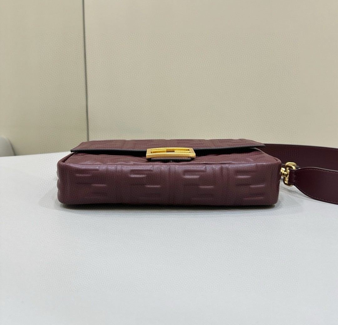 Fendi Medium Baguette Bag in Burgundy FF Nappa Leather