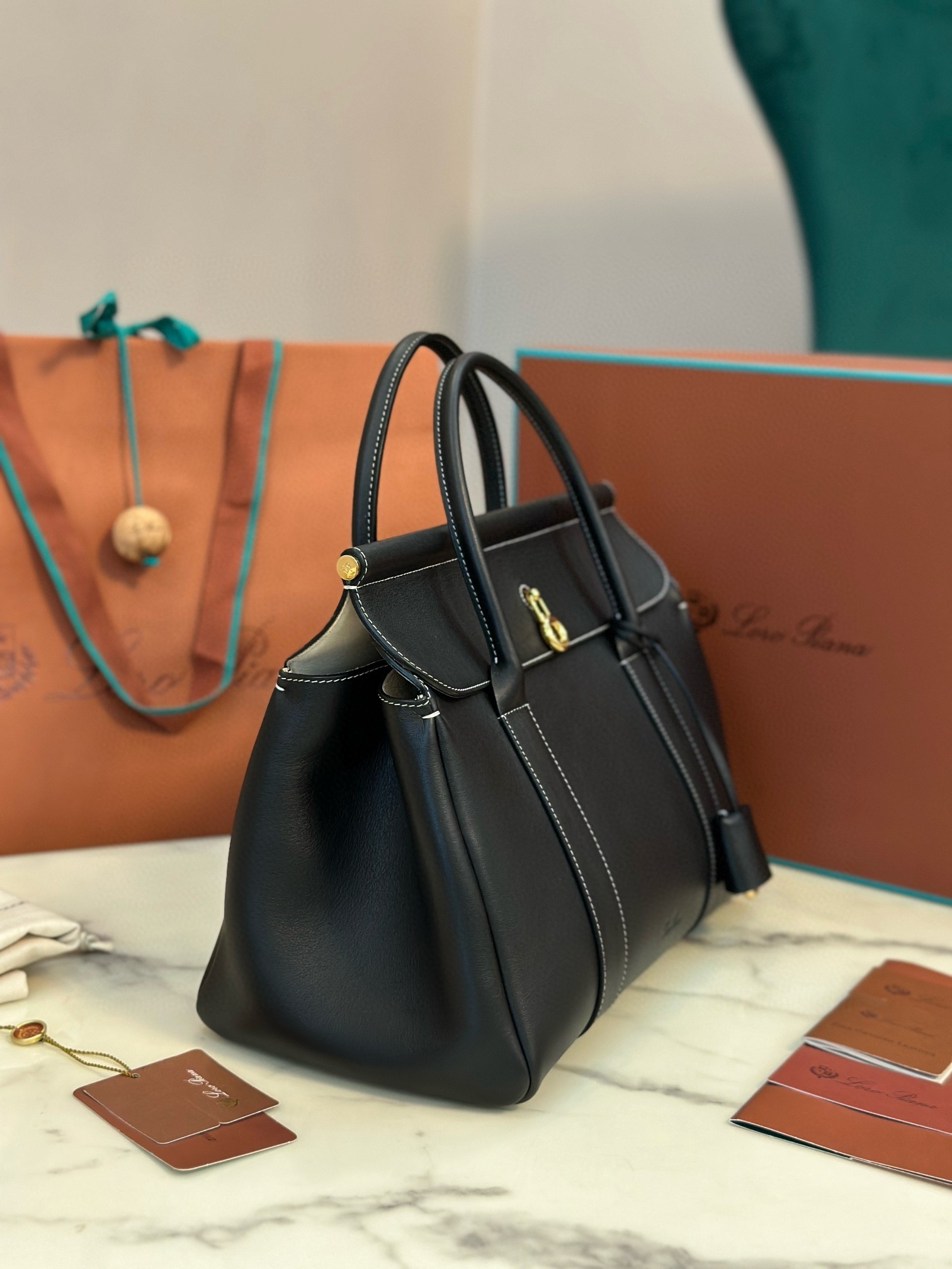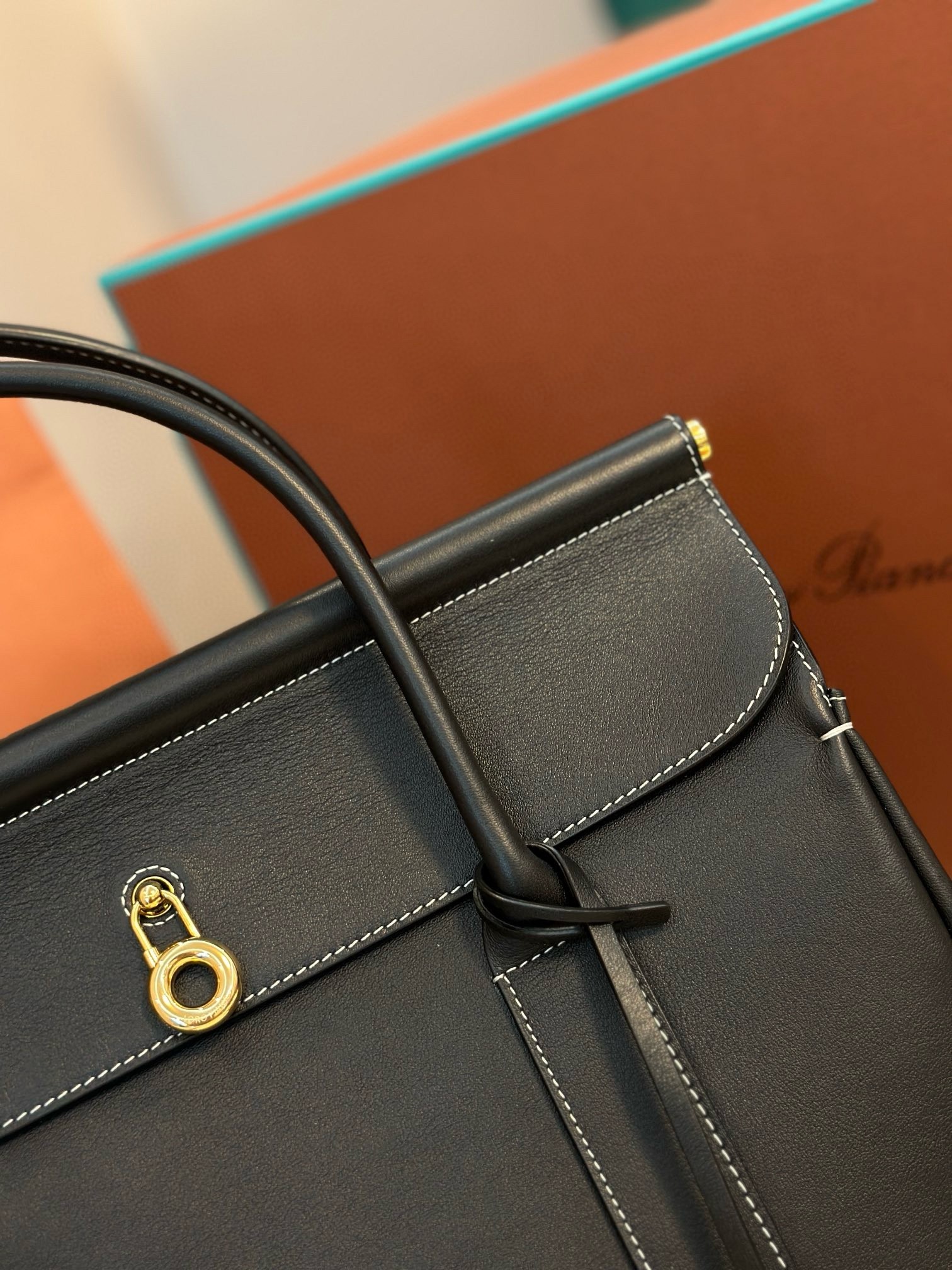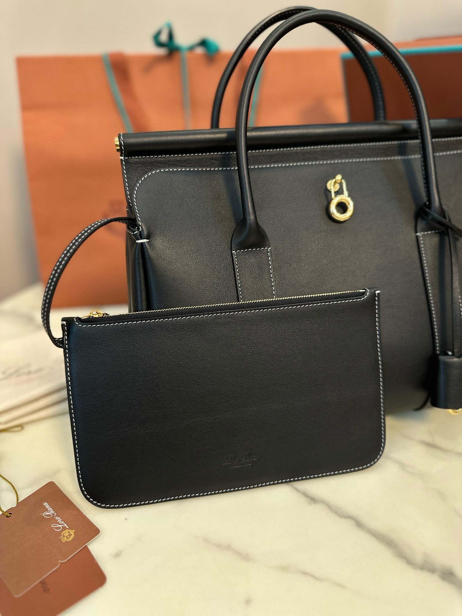 The Loom bag pays homage to Loro Piana's centuries-old textile heritage, with the metal bar beneath the flap evoking the gentle cascade of fabric draped across an artisan's loom - a subtle nod to the brand's storied weaving techniques. Uniquely textured yet lightweight in exclusive calfskin, the refined padlock that closes the bag can be unfastened, giving it a more relaxed look.