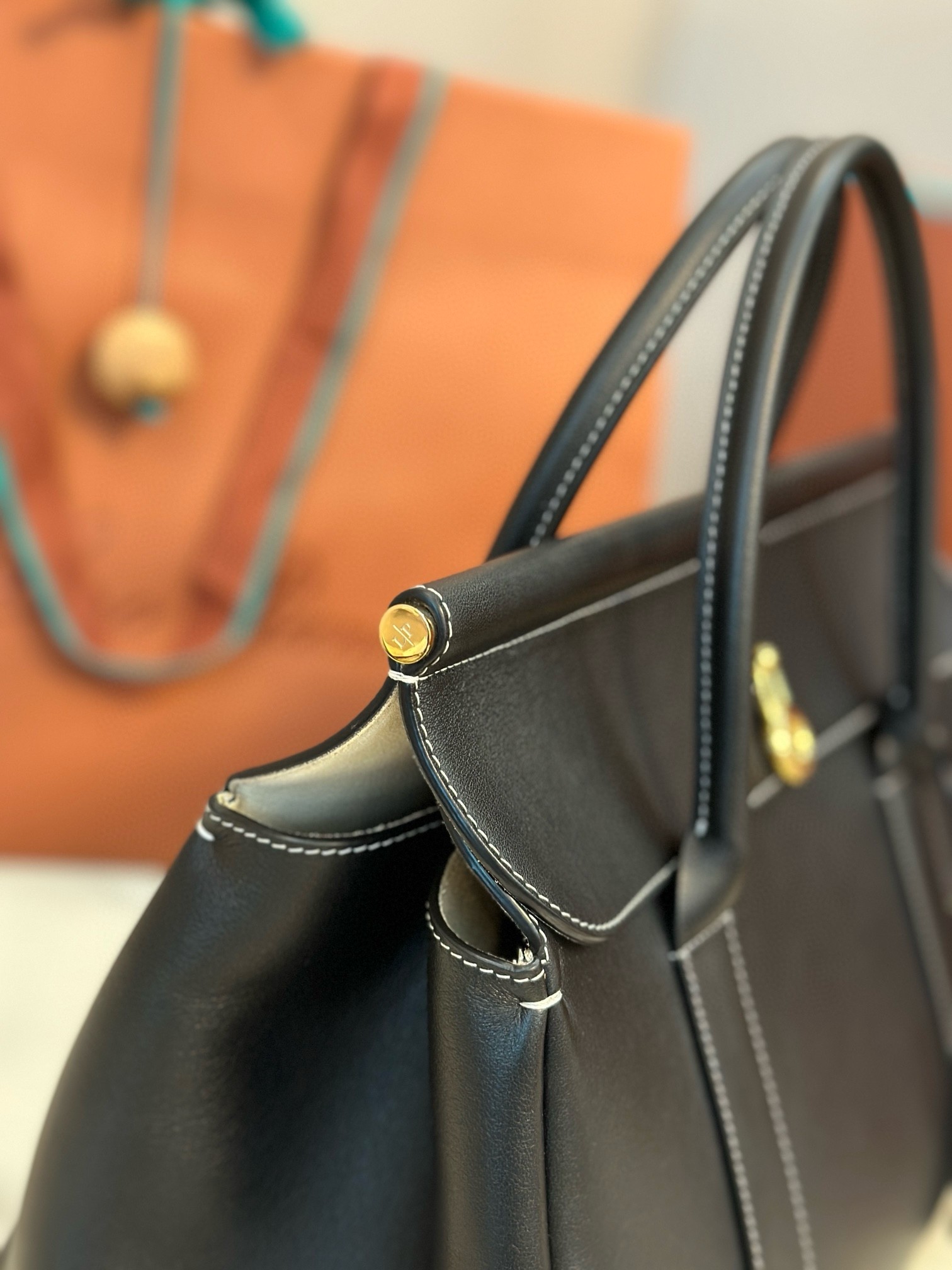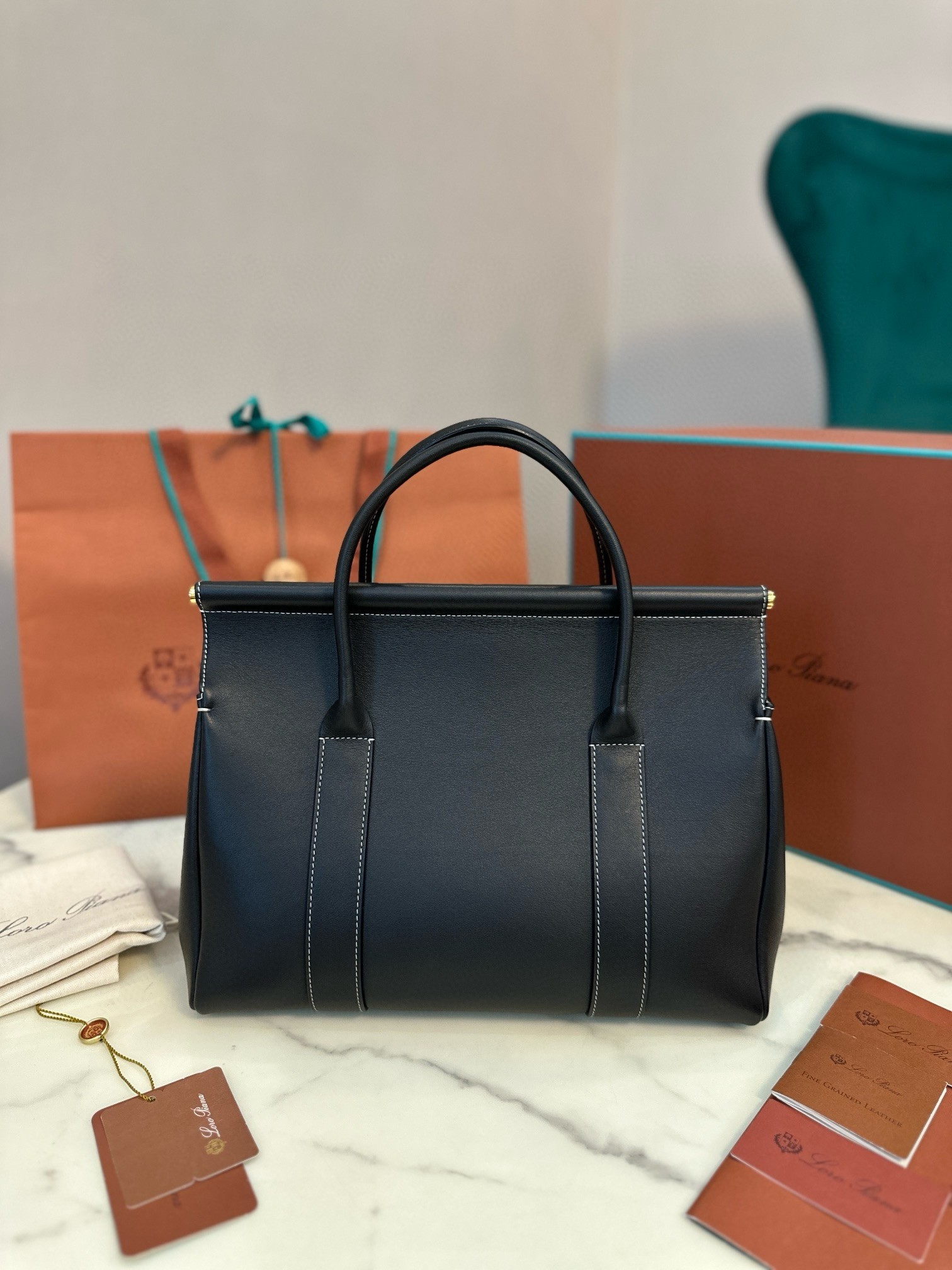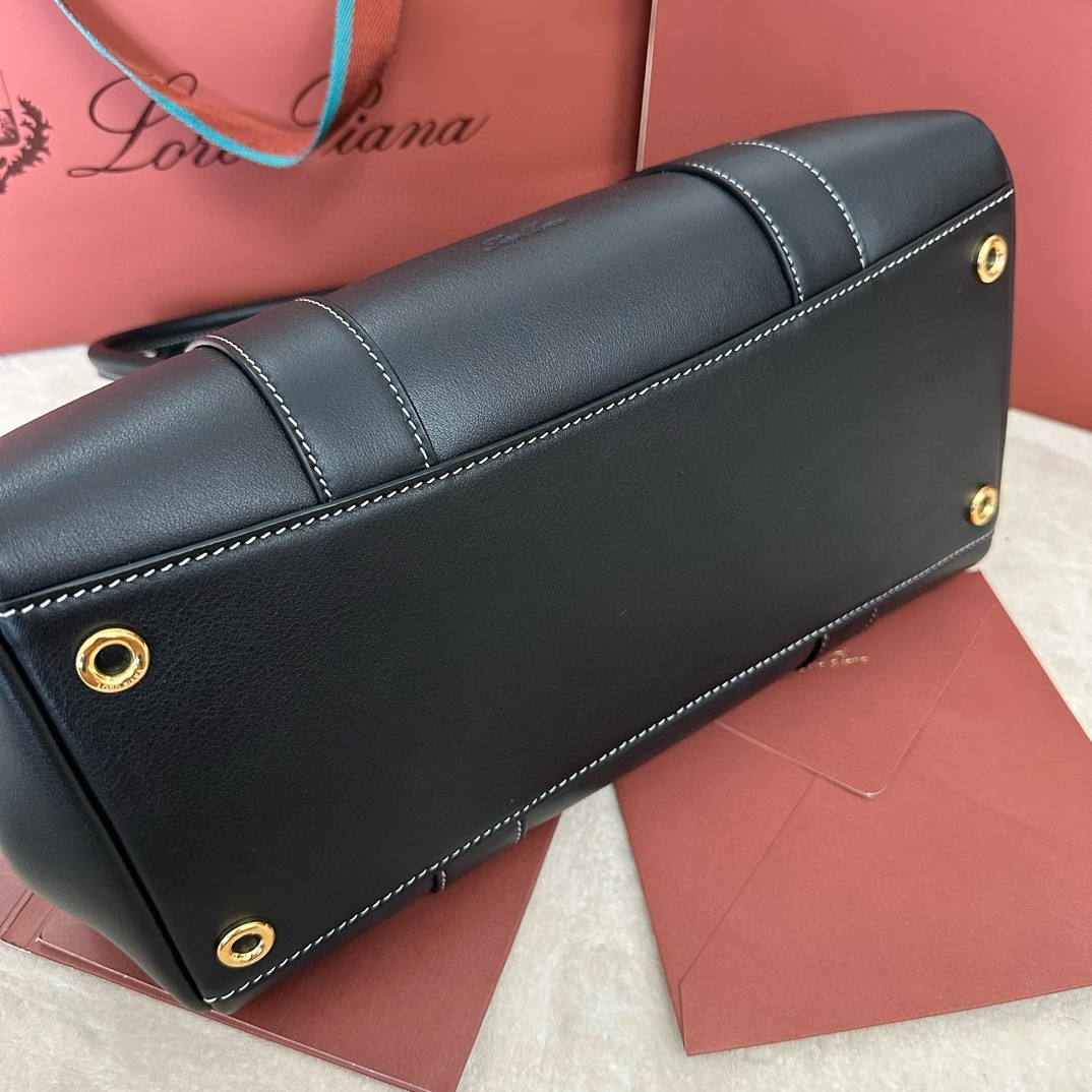 The Loom bag pays homage to Loro Piana's centuries-old textile heritage, with the metal bar beneath the flap evoking the gentle cascade of fabric draped across an artisan's loom - a subtle nod to the brand's storied weaving techniques. Uniquely textured yet lightweight in exclusive calfskin, the refined padlock that closes the bag can be unfastened, giving it a more relaxed look.