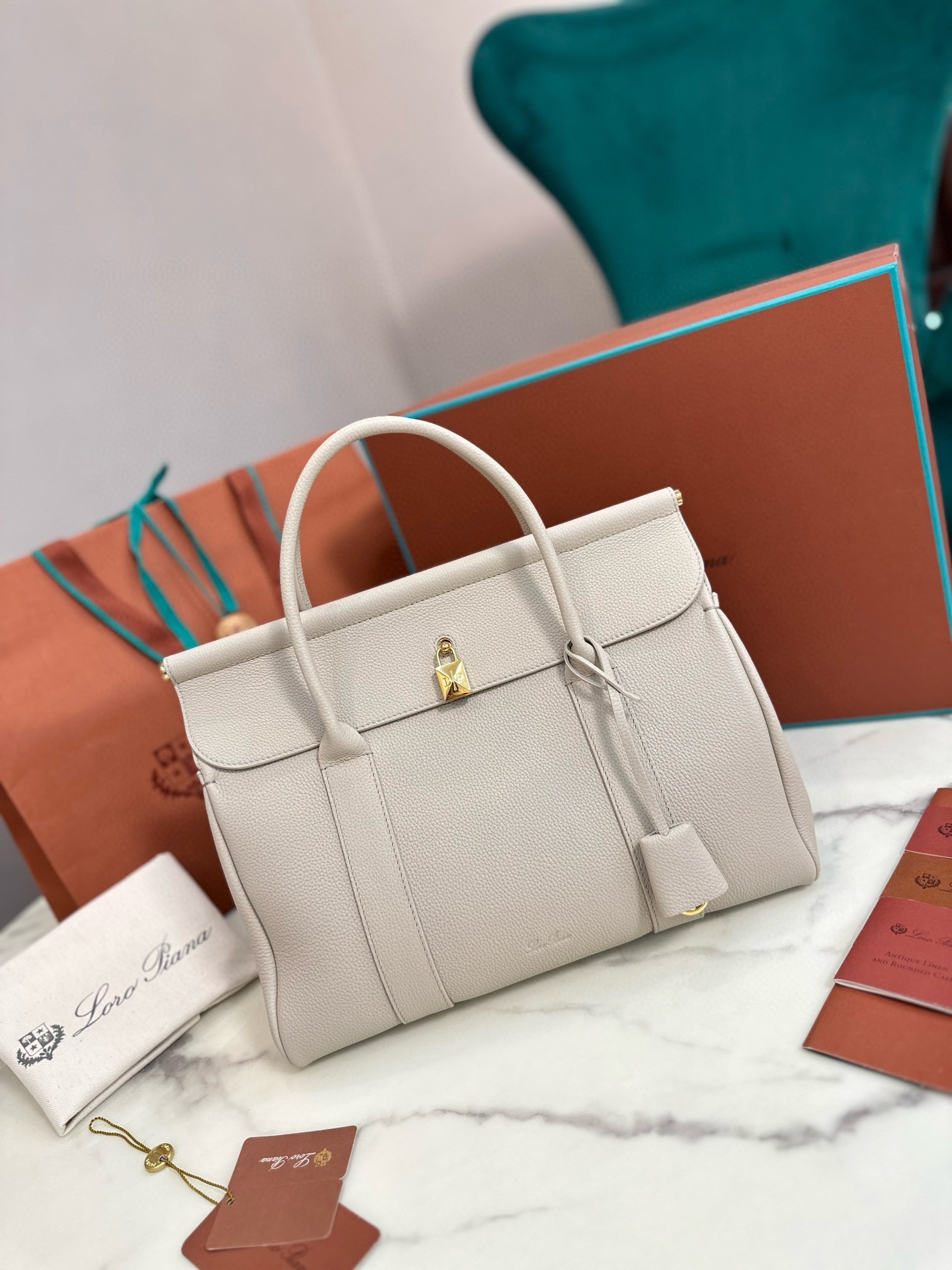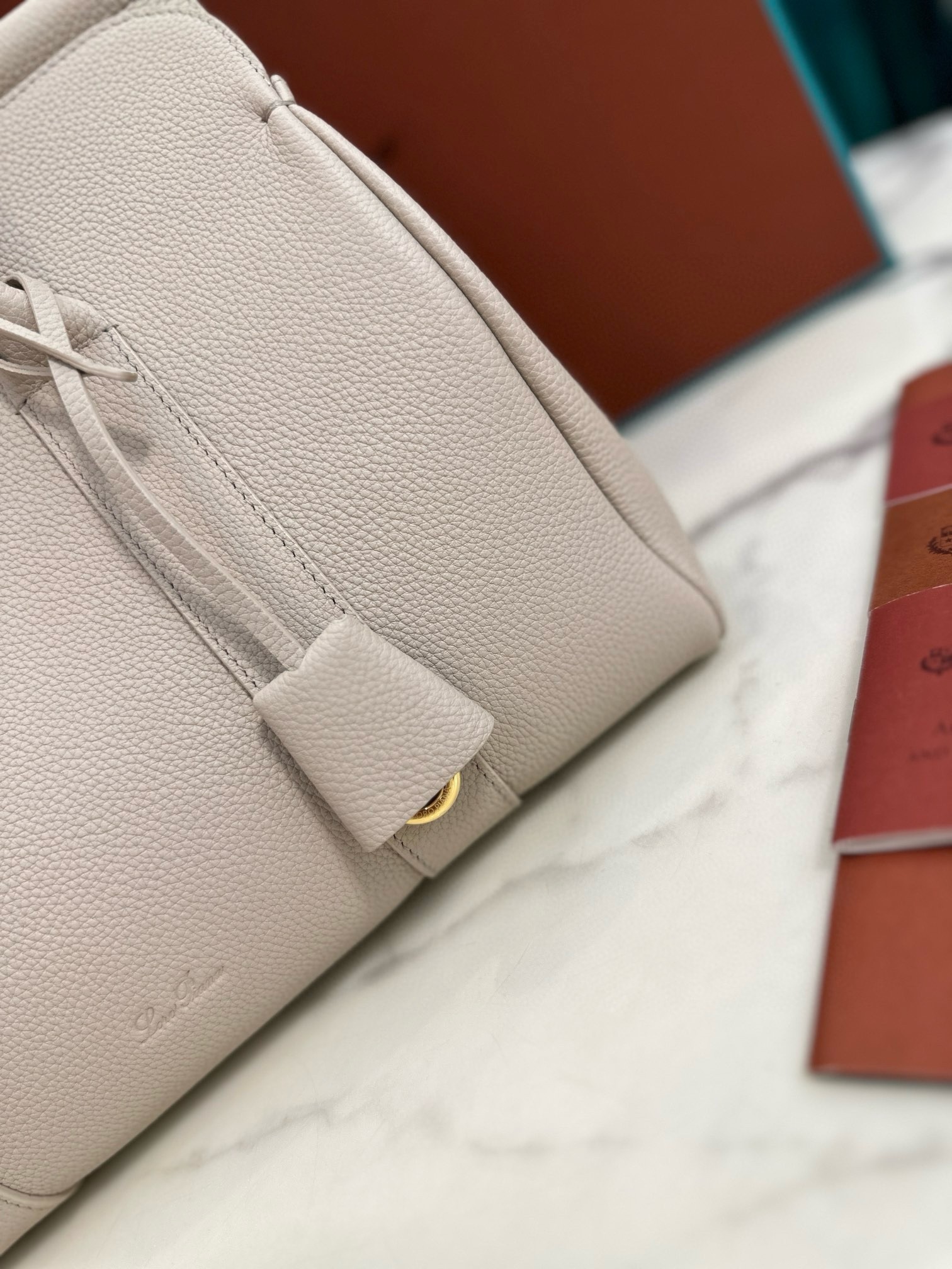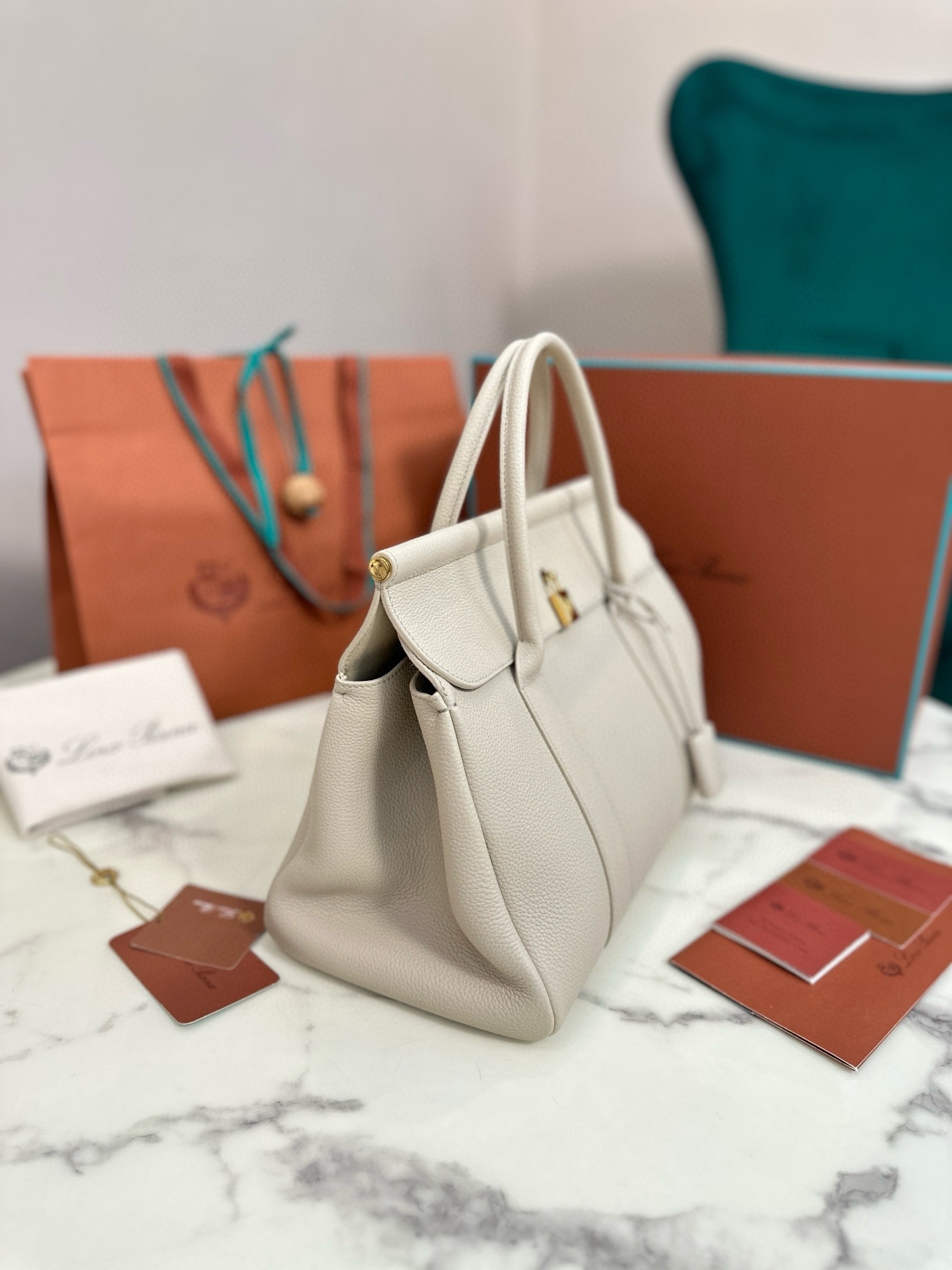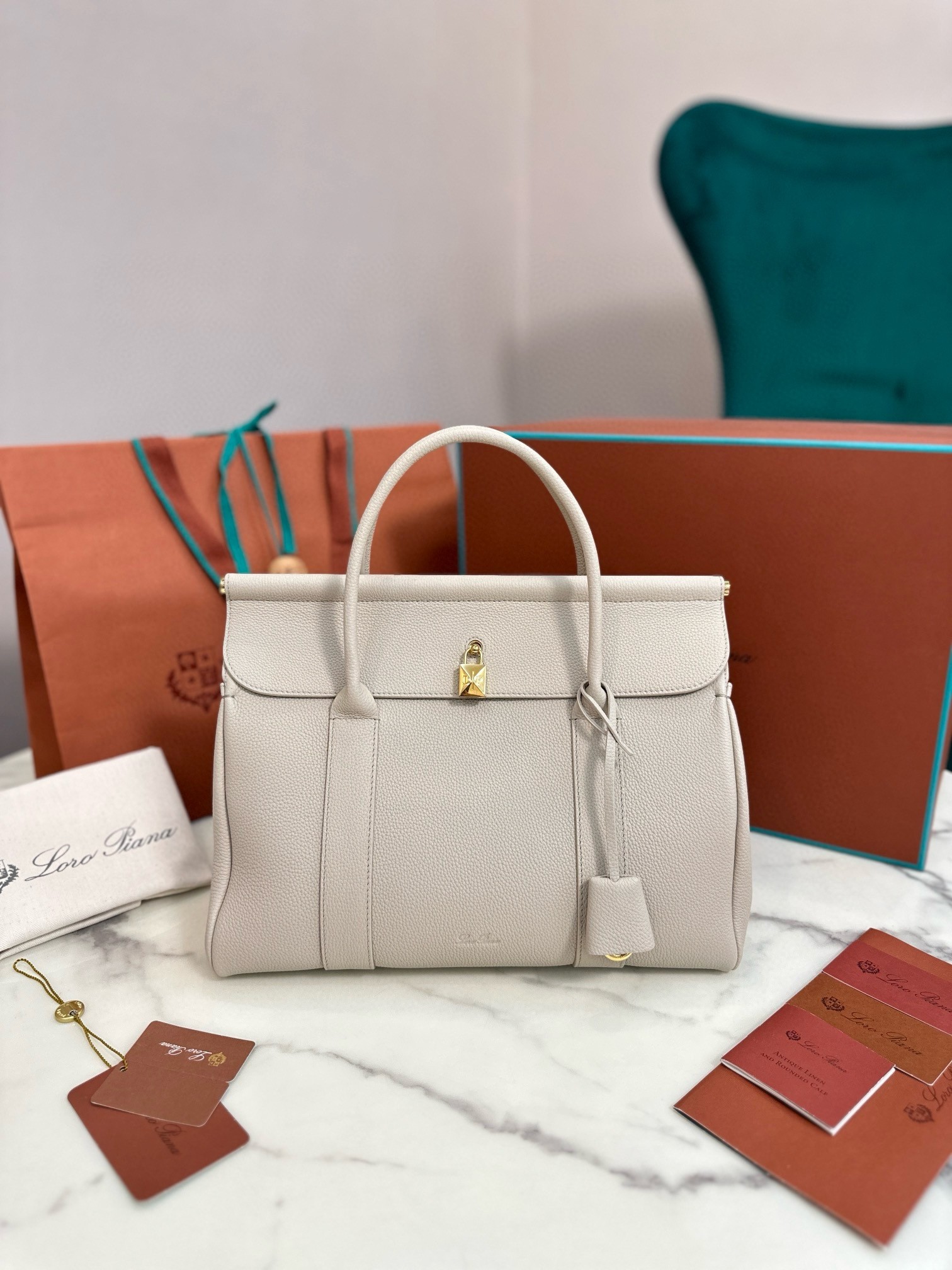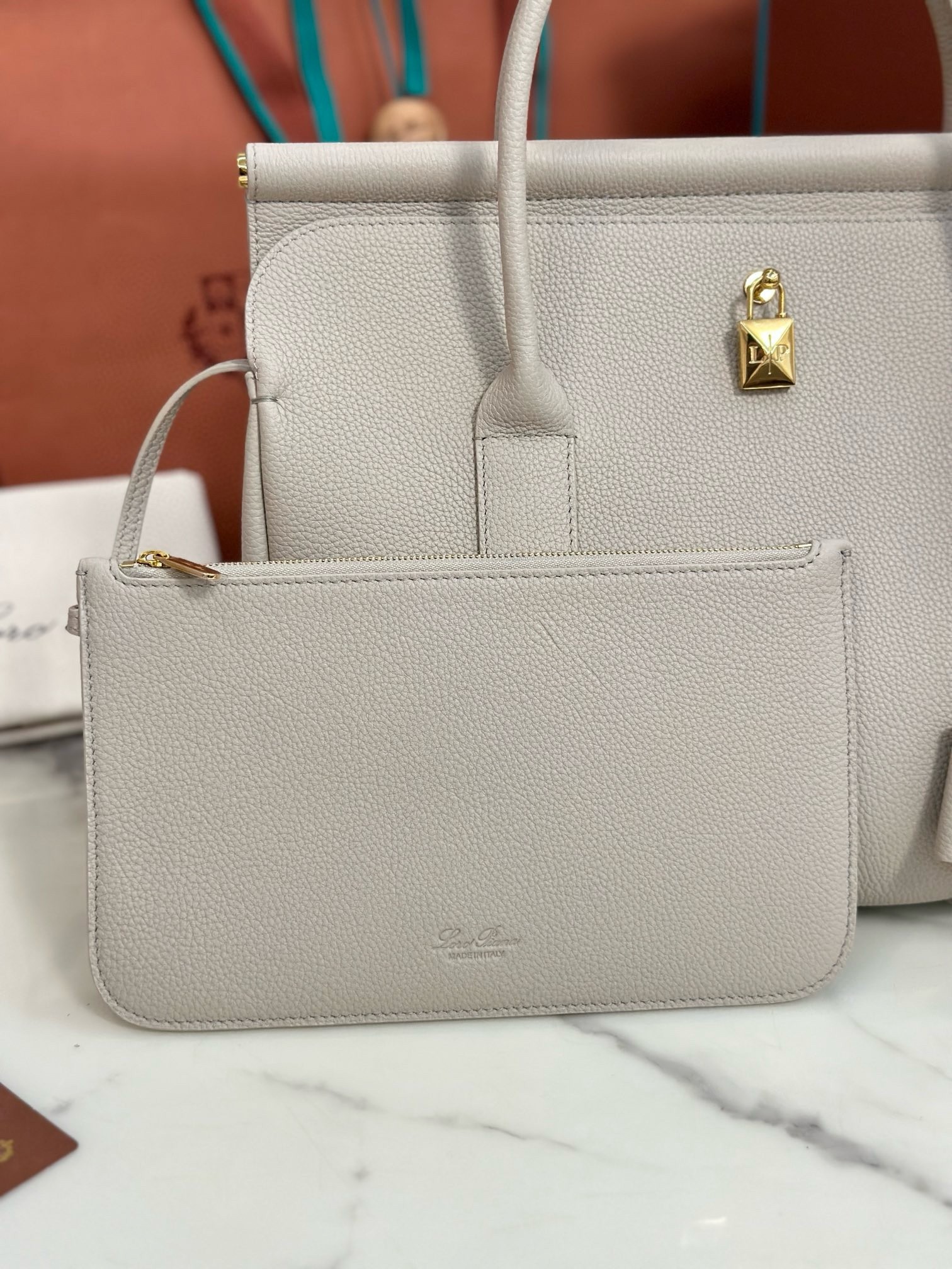 The Loom bag pays homage to Loro Piana's centuries-old textile heritage, with the metal bar beneath the flap evoking the gentle cascade of fabric draped across an artisan's loom - a subtle nod to the brand's storied weaving techniques. Uniquely textured yet lightweight in fine-grained calfskin, the refined padlock that closes the bag can be unfastened, giving it a more relaxed look.