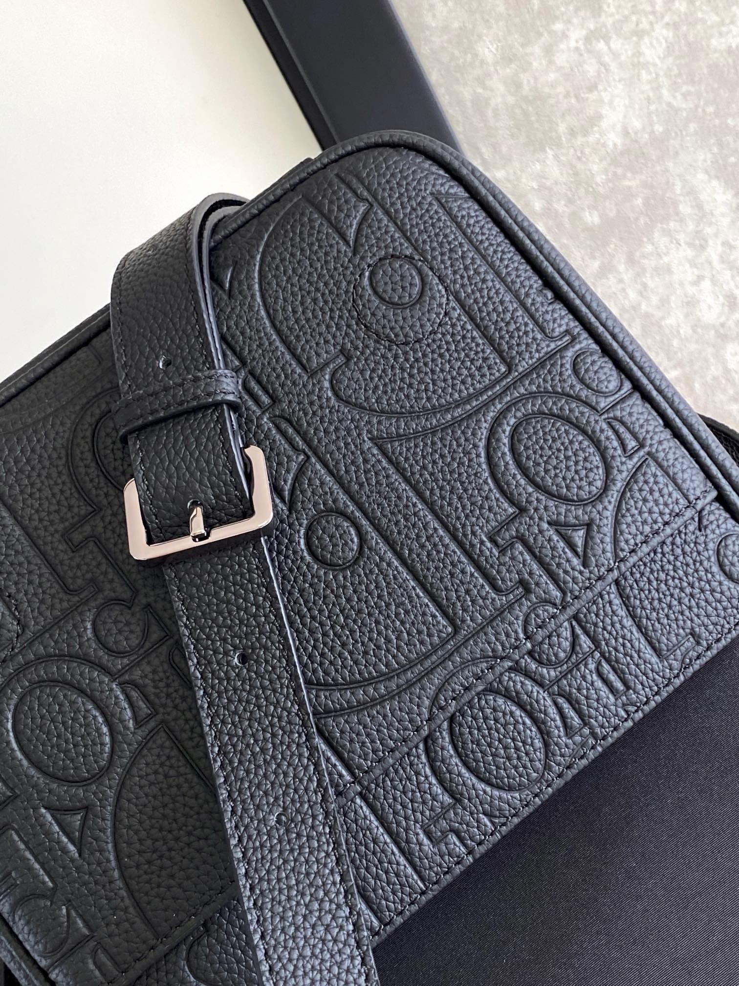 New for Fall 2024, the messenger bag with flap is a practical and timeless design. Displaying the virtuosity of the House's ateliers, the Dior Gravity leather showcases the iconic motif delicately embossed on calfskin and is accented by the Dior signature. The large magnetic flap features a zip pocket revealing a spacious compartment, while the adjustable strap allows the bag to be carried over the shoulder or crossbody.