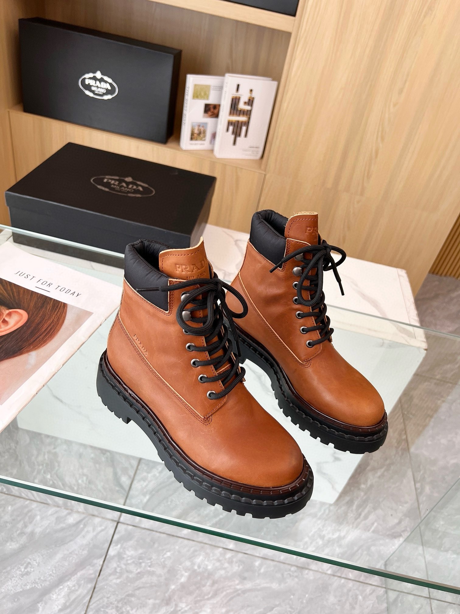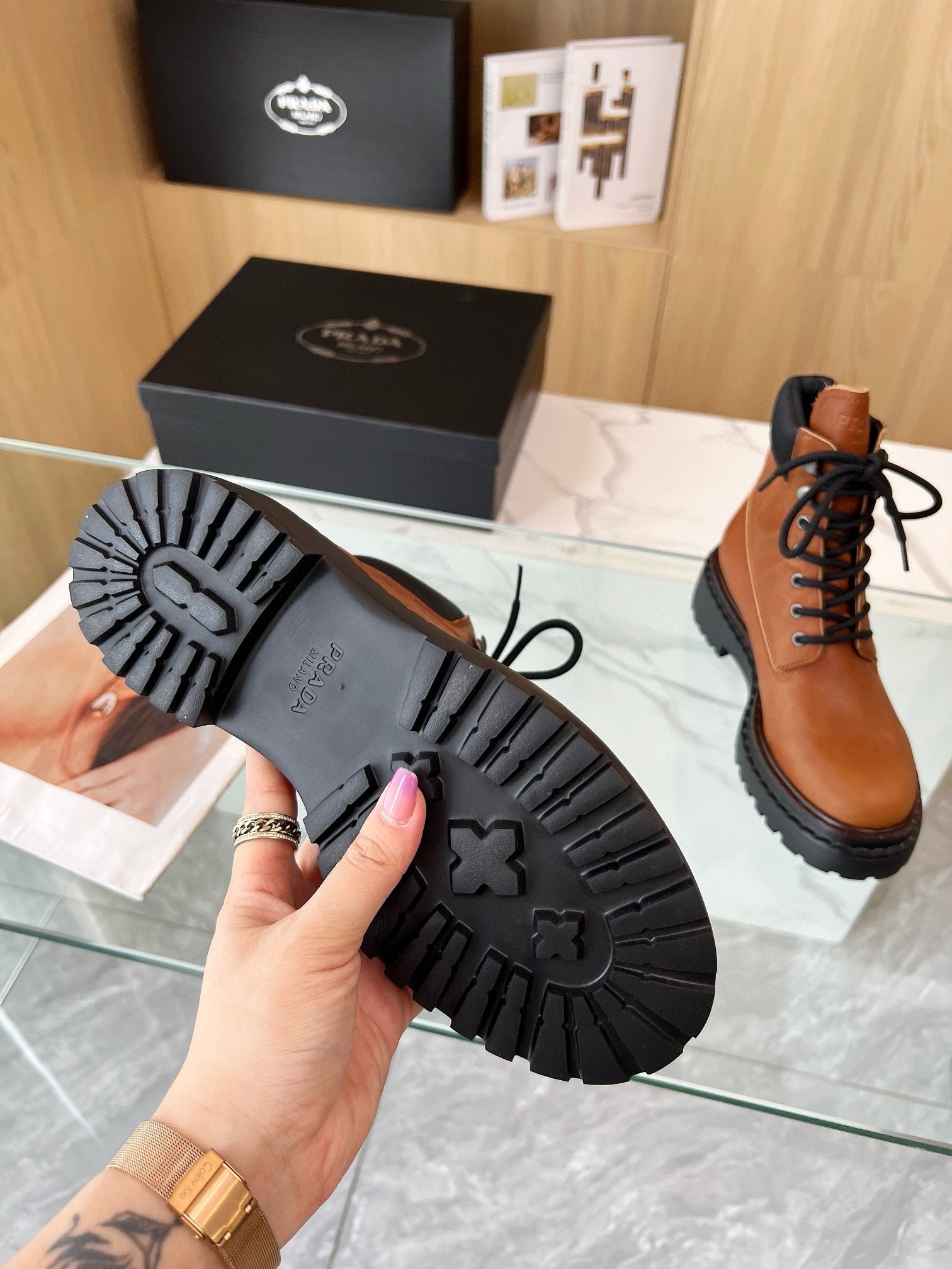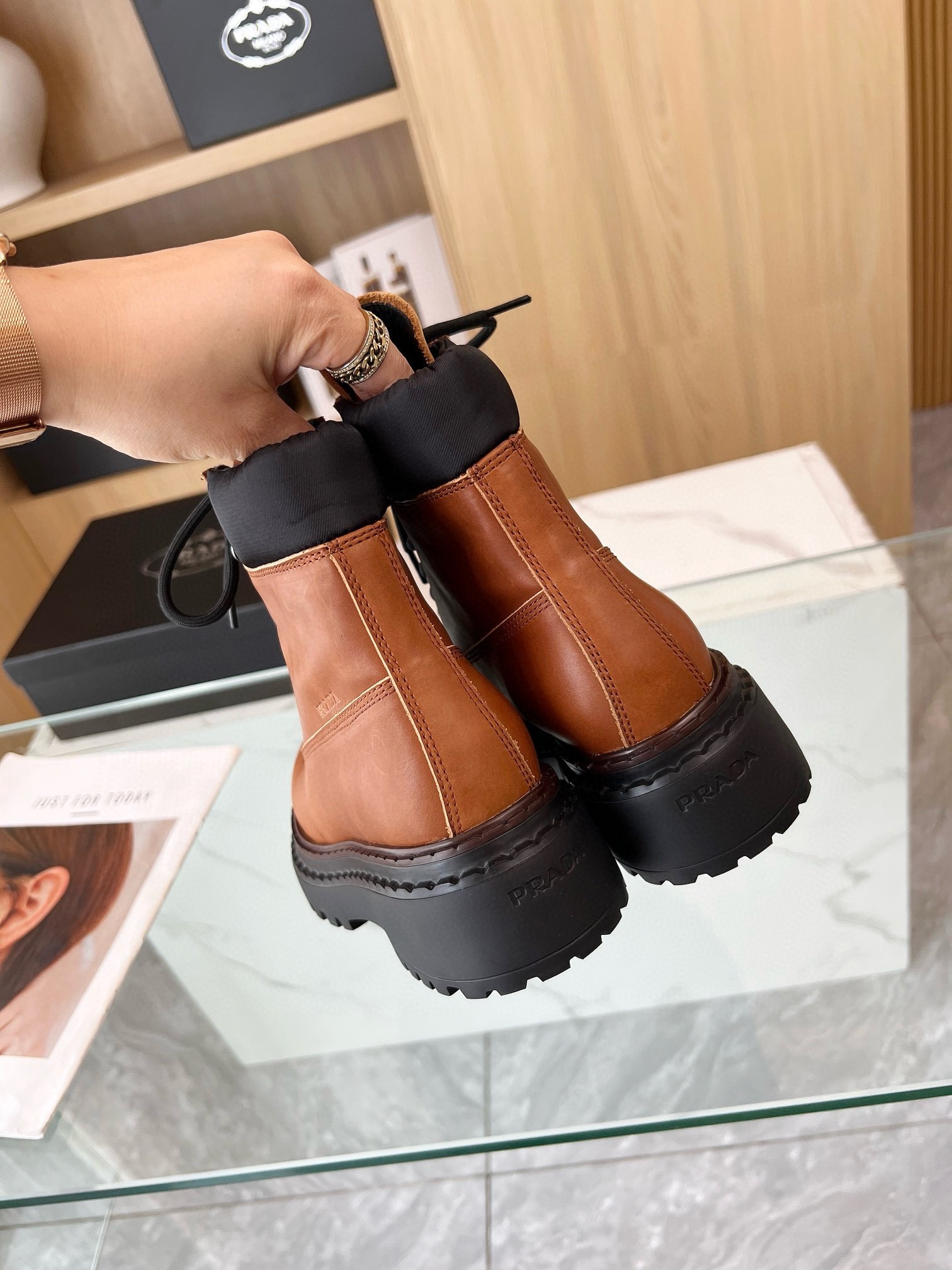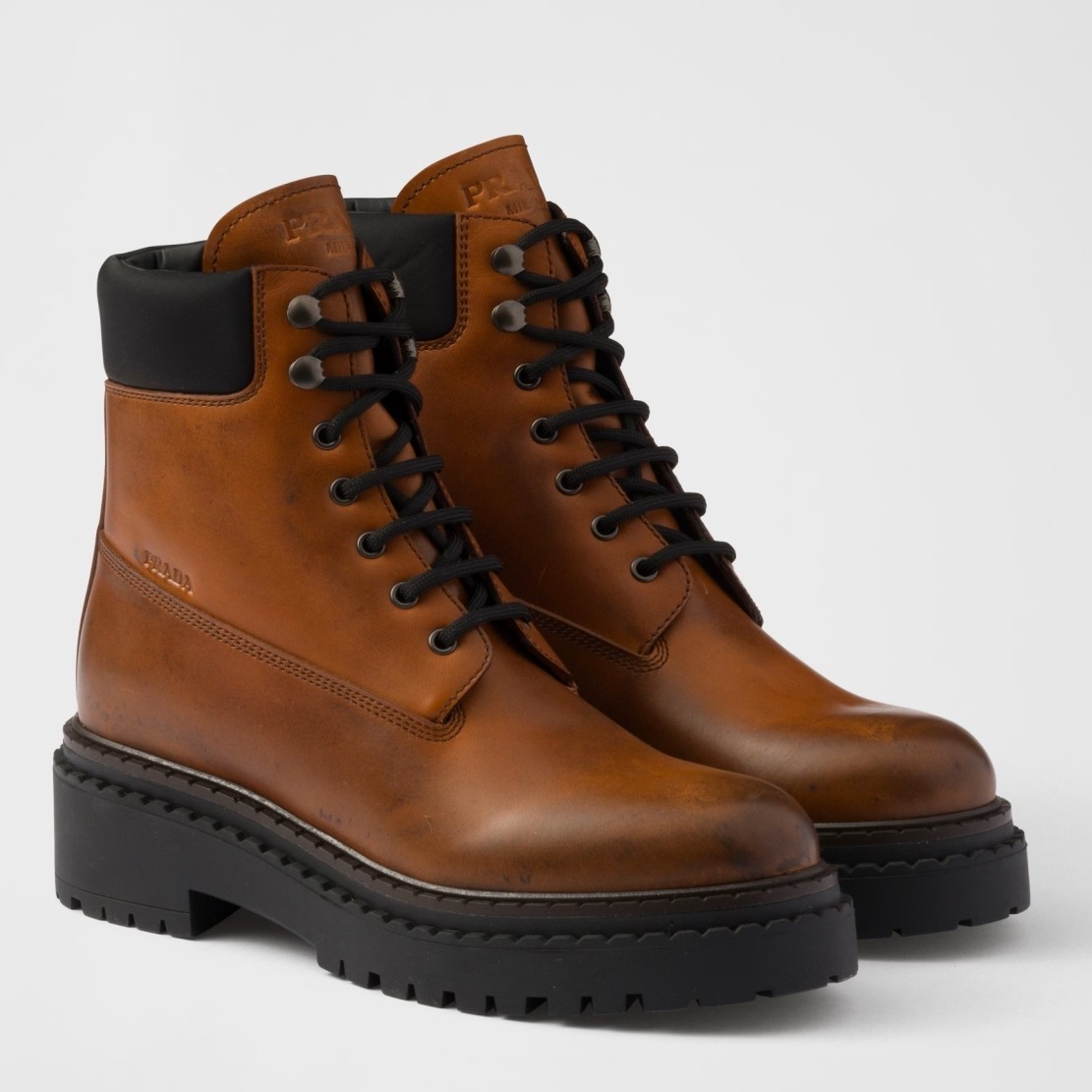 Prada Chelsea Boots in Cognac Leather and Re-Nylon