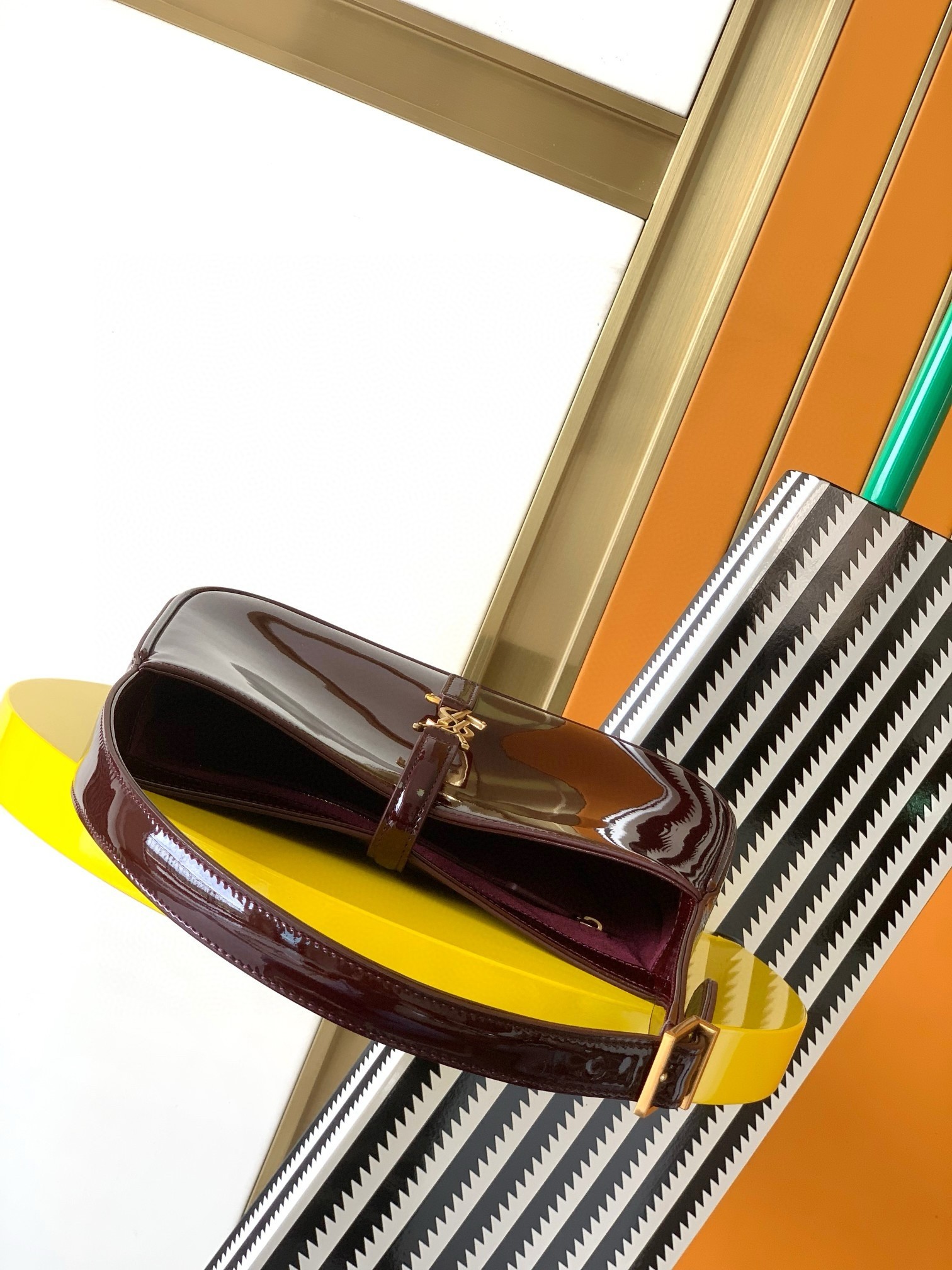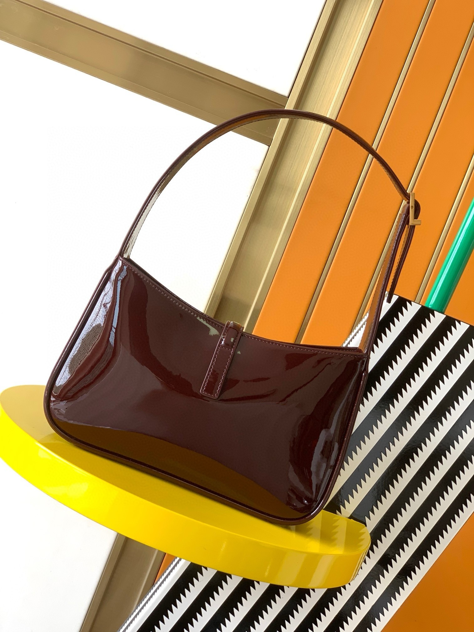 Coveted '90s styles inform the sleek profile of Saint Laurent's Le 5 à 7 mini shoulder bag. This one has been crafted from glossy patent-leather and is sized to carry just the essentials; think keys, wallet, phone and cosmetic touch-ups. The curved handle is specially shaped to be carried by hand.