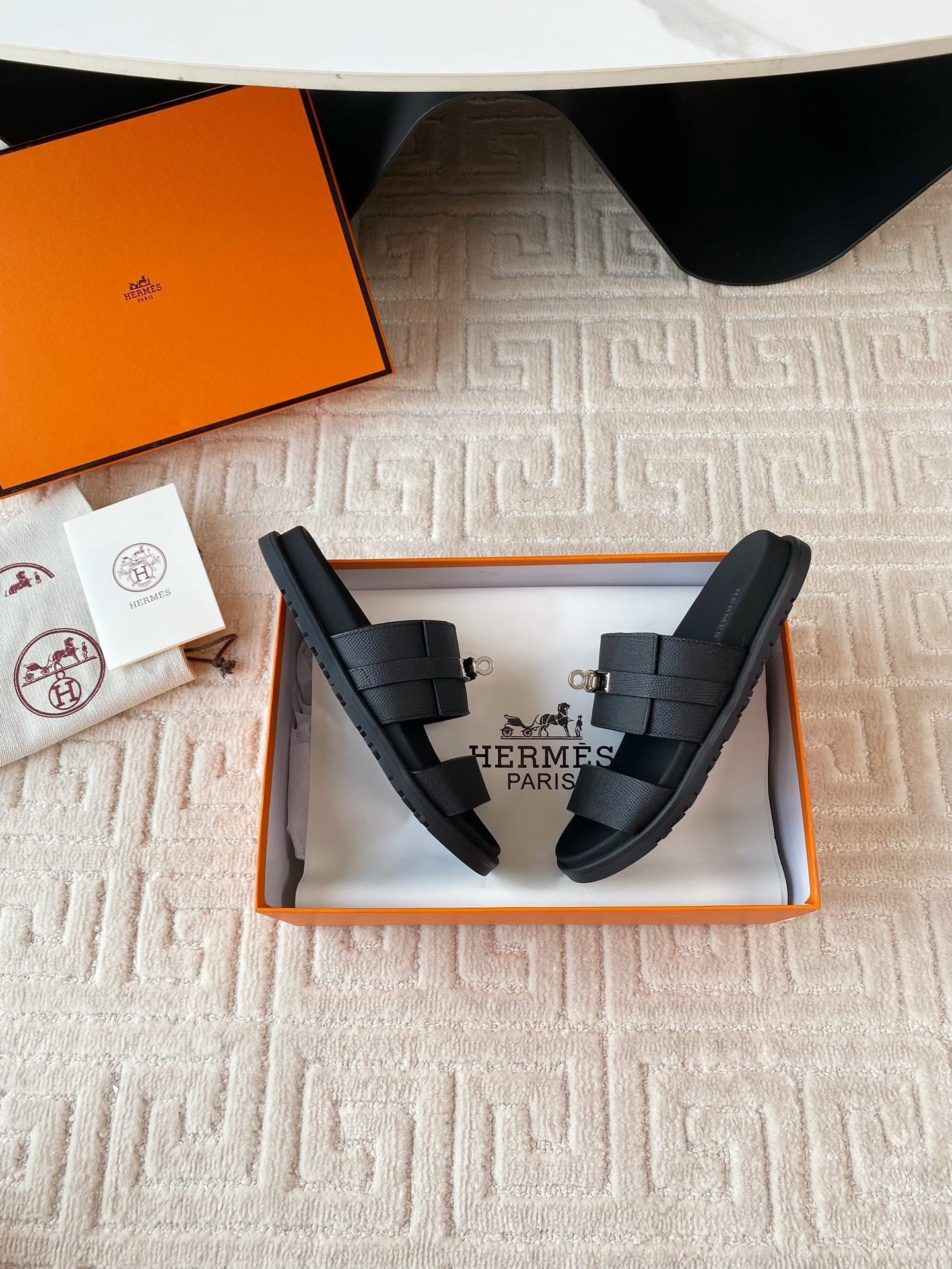 The Hermes Jackson sandal offers an elegant style with relaxed appeal. The design presents the two straps, highlighting the Epsom calfskin. Completed by a Hermes signature on the Kelly buckle and tonal notched sole, the sandal will pair easily with Bermuda shorts or jeans.
