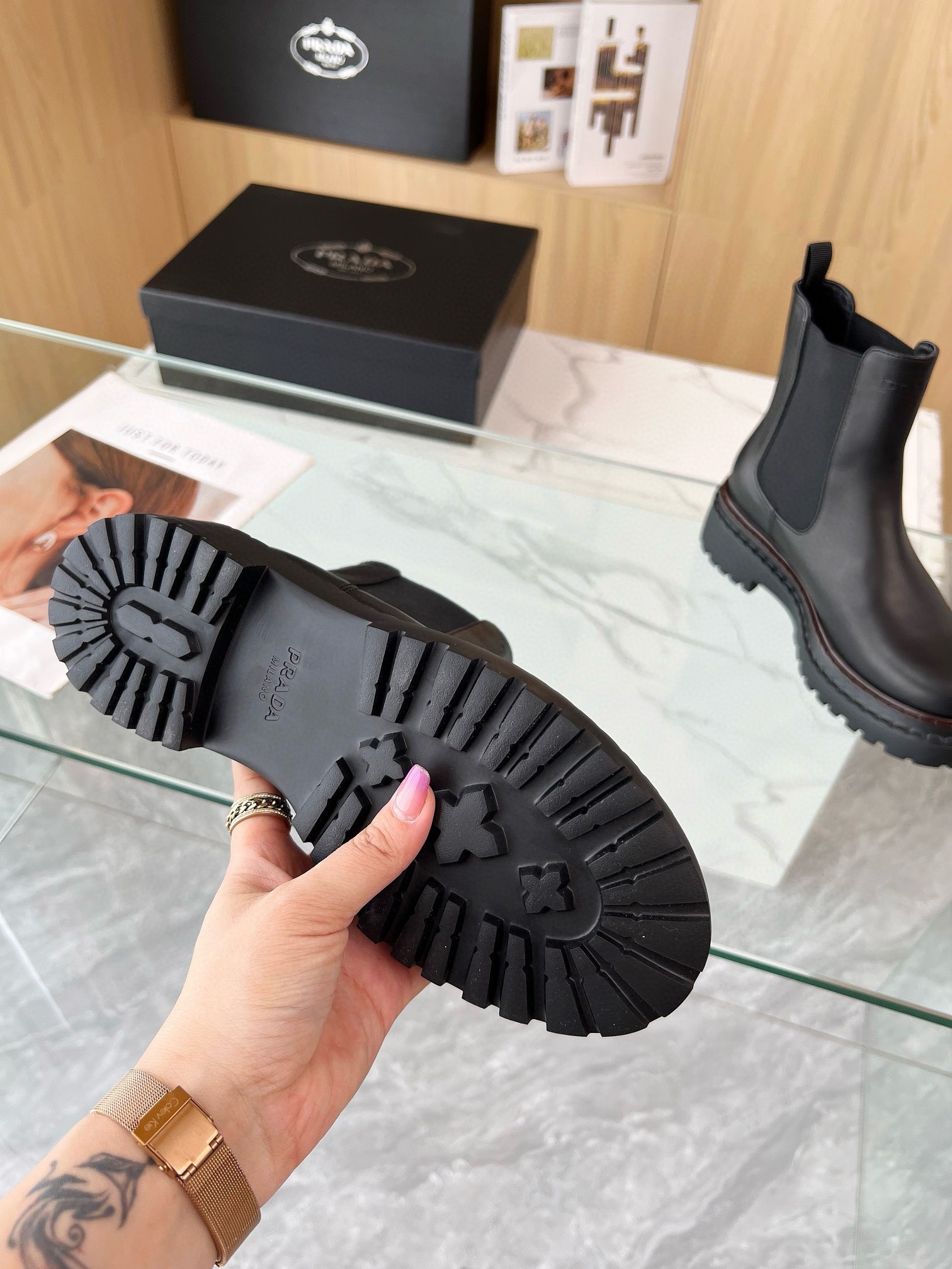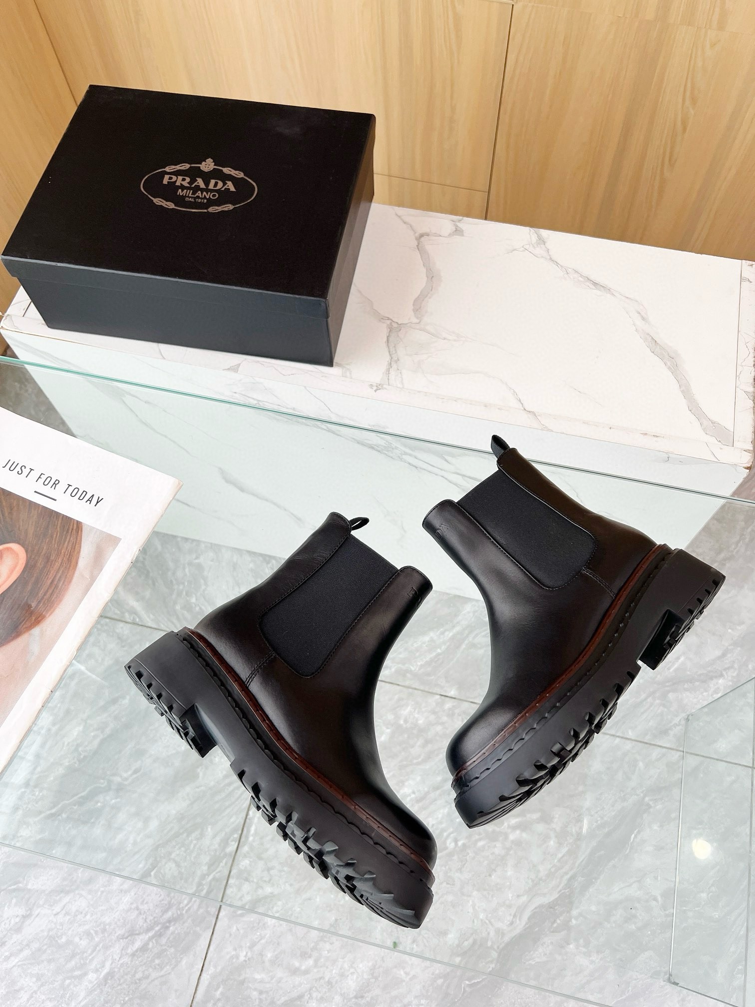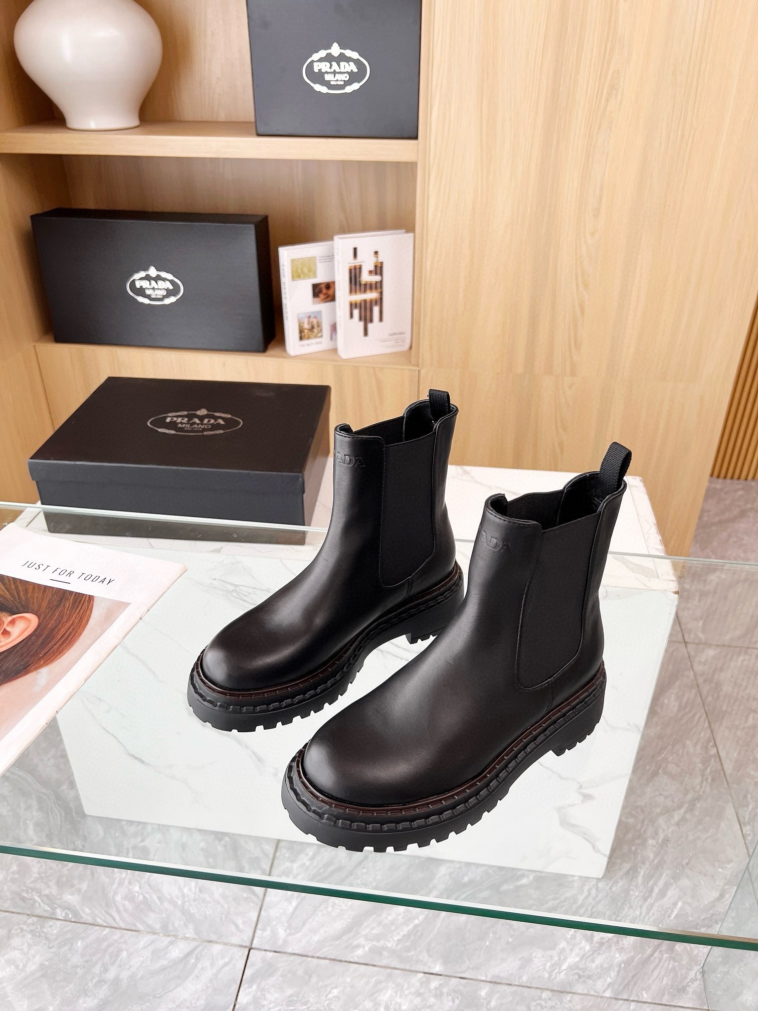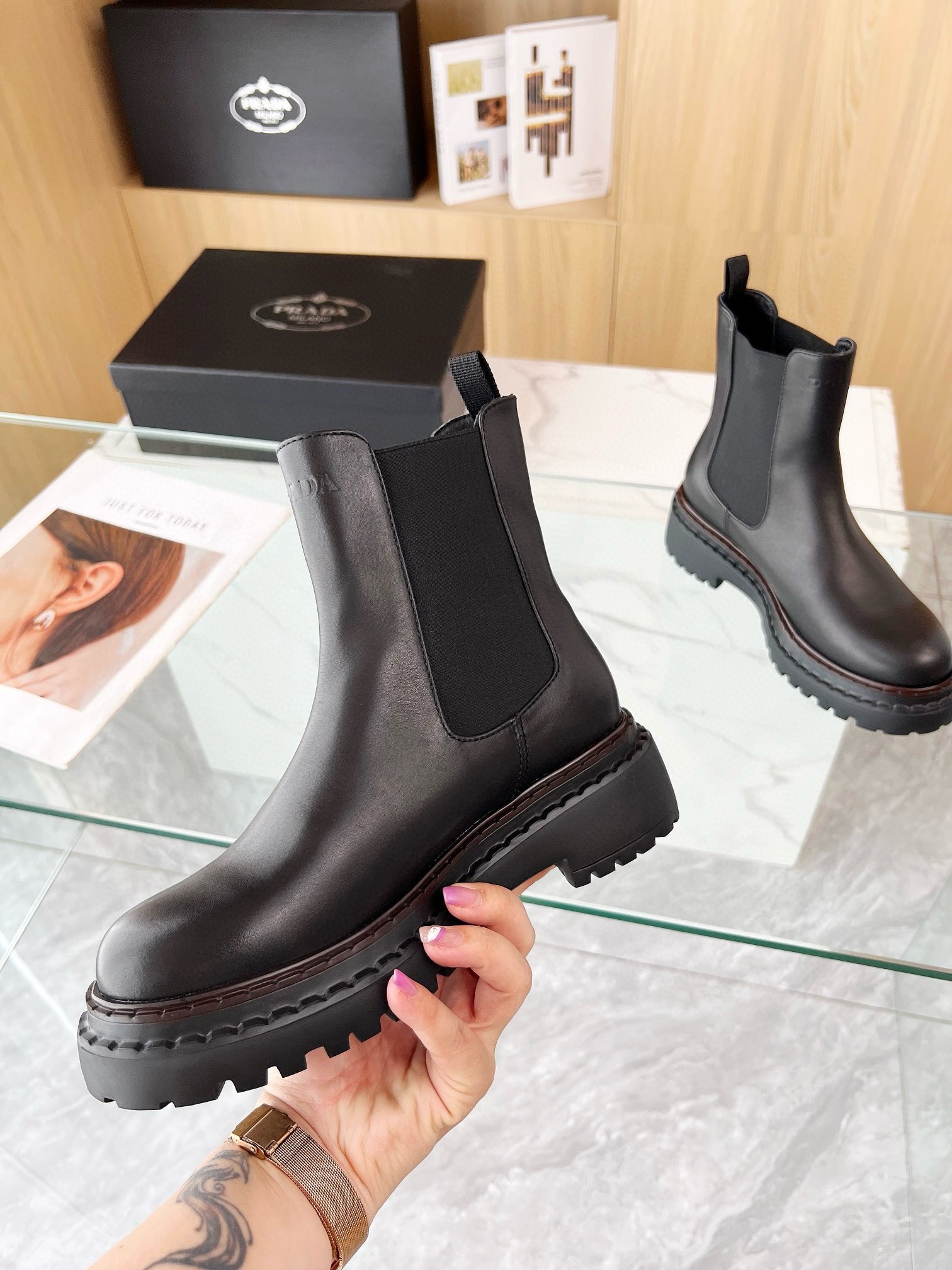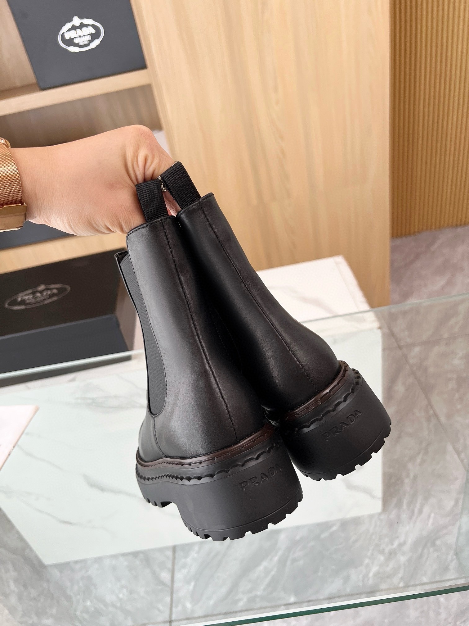 Prada Chelsea Boots in Black Leather